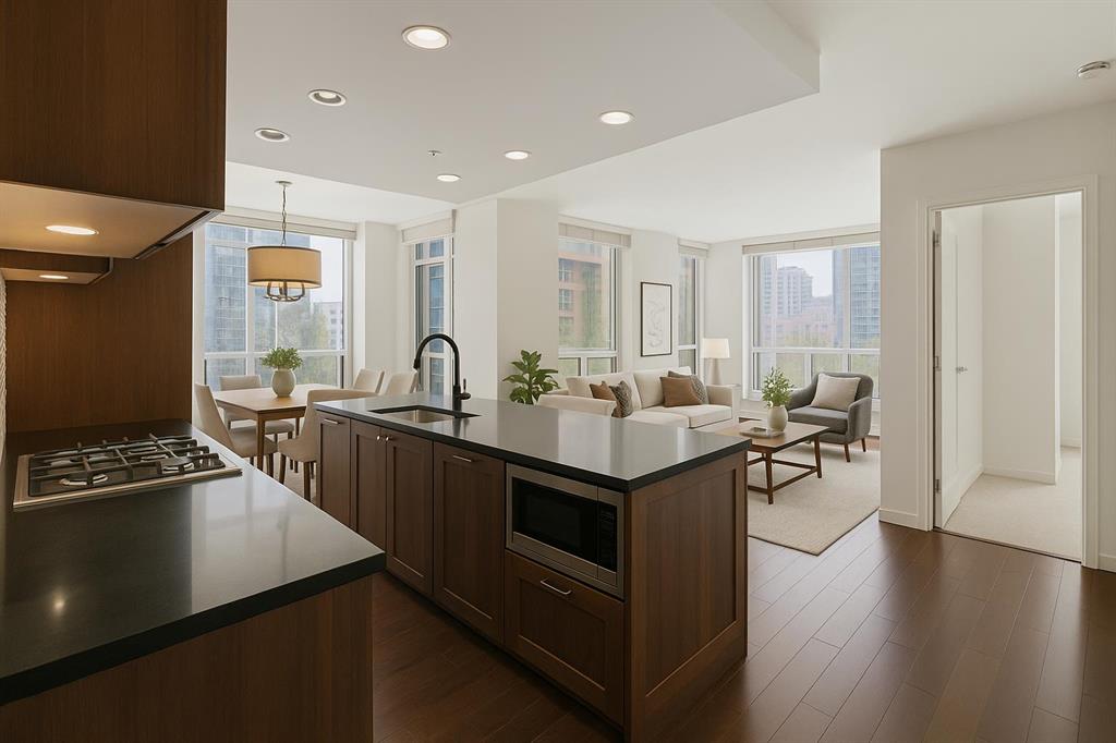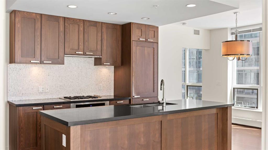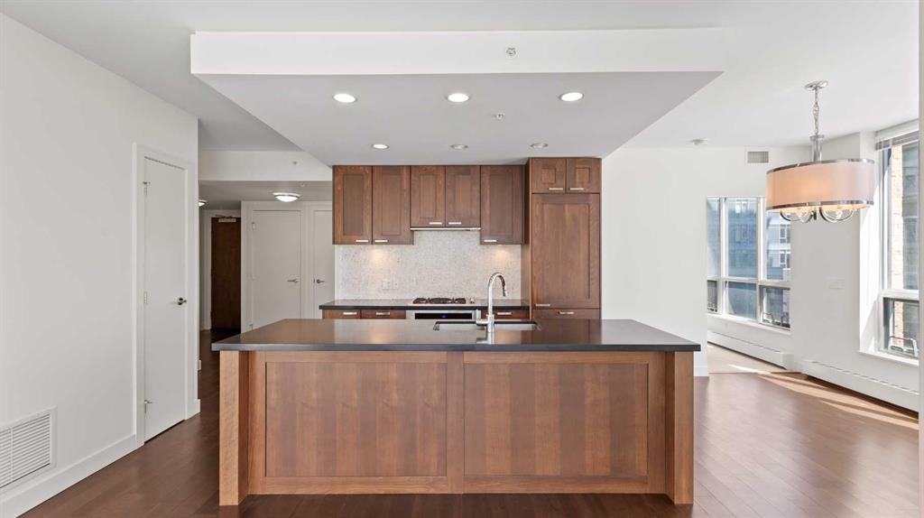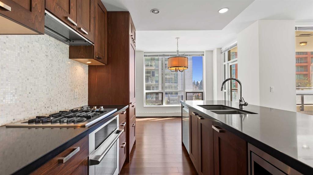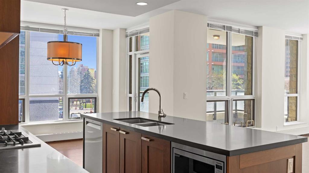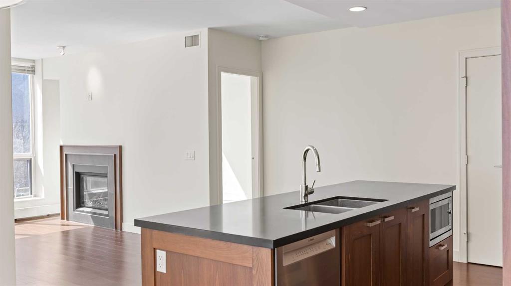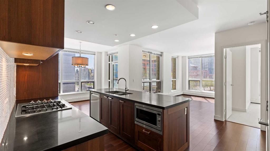 ***Freshly Painted*** Are you an urban professional who walks to work? With a Walk Score of 96, the condos at WATERFRONT are tailored for your lifestyle. This bright, south-west-facing CORNER UNIT in the sought-after 'A' Tower (East) features 2 bedrooms and 2 bathrooms, and is move-in-ready. Modern, upscale finishes include stainless steel appliances with a gas cooktop, integrated fridge, New dishwasher, quartz countertops, a pantry, wide-plank hardwood flooring, soft-close custom cabinetry, a gas fireplace, Grohe plumbing fixtures, and 9-foot ceilings. Enjoy outdoor living on the large, covered balcony equipped with a gas BBQ hookup. Also included are an oversized underground parking stall (P3) and a storage locker on the 3rd floor. WATERFRONT offers exceptional amenities: 24/7 concierge and security, guest suite, owners’ lounge with kitchen and pool table, screening room, fully equipped fitness and yoga studio, hot tub, car wash bay (P4), and secure bike storage. Convenient retail services—including a coffee shop, wine store, and hair salon—are located right on the main level. Plus, you're just minutes from Bow River Pathways and Prince’s Island Park. Explore the Virtual Video Tour on YouTube by searching MLS® # A2272721. The lowest-priced condo in this complex, call to book a private viewing today.