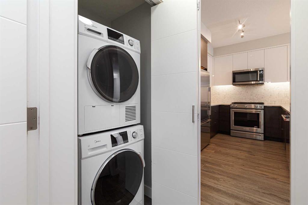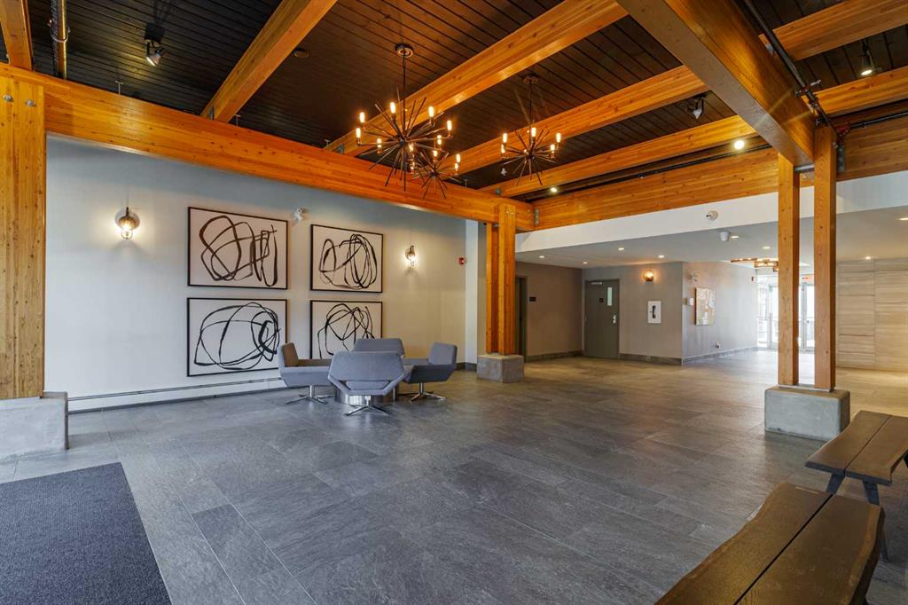 OPEN HOUSE SAT & SUN, (NOV 29 & 30) 11:00 AM – 1:00 PM Welcome home to #1119 95 Burma Star Road SW! This contemporary main floor unit located in popular Currie Barracks, is just a five minute walk to Mount Royal University, and minutes away from nearby parks, restaurants and pubs. The upscale complex features a gorgeous front lobby with open beam ceilings, trendy art work and a large sitting area. The stylish unit is open and bright, and has an elegant modern kitchen open to the spacious living room that walks out onto your private covered patio with natural gas barbecue hook up. Contrasting high gloss white lacquered cabinet doors and the wood grain look cabinetry, bright marble back splash, quartz countertops, stainless steel appliances, and vinyl plank hardwood create an alluring aesthetic. The unit features a bedroom with a pleasingly spacious walk-through closet and ensuite, in-suite laundry, and air conditioning that ensures your comfort. The beautifully landscaped outdoor spaces, courtyard, titled underground parking stall, ample visitor parking, car wash bay, and bicycle storage complete this incredible opportunity. Located just a ten minute drive from downtown, Currie Barracks offers a two-fold lifestyle, including an easy drive or uber to the commercial core and the vibrant cultural and restaurant scene that inner city Calgary has to offer. It also offered the opportunity to enjoy the quiet, walkable neighbourhood, paths, parks, fenced dedicated dog park, and nearby pubs and restaurants. Don’t miss your chance to call this stunning condo your new home!
