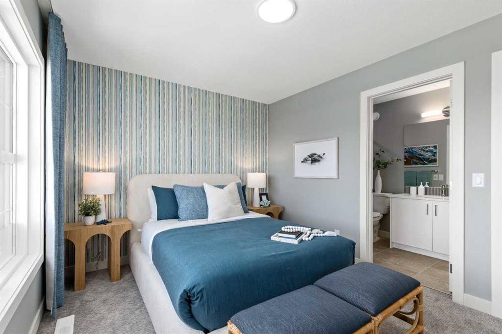 THIS IS A SHOWHOME AVAILABLE THROUGH LEASEBACK - the builder will temporarily rent the home back after possession and it will continue to be used as a showhome. Discover this beautifully upgraded Kingsley by Trico Homes, a stunning showhome located minutes from East Hills Shopping Centre. The main floor features a bright open layout with a flex room, a bedroom with full bath, a modern kitchen with a waterfall island, and a fully equipped spice kitchen. Upstairs offers four spacious bedrooms, three full baths, and a bonus room. The fully finished basement includes two large bedrooms, a full bath, and an oversized recreation area. This home provides exceptional value, professional maintenance, and a prime location close to shopping, parks, and transit—ideal for families seeking a well-designed property. ;Photos are representative.