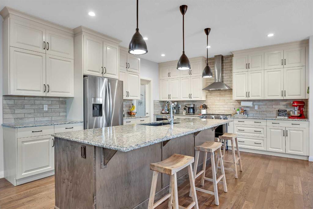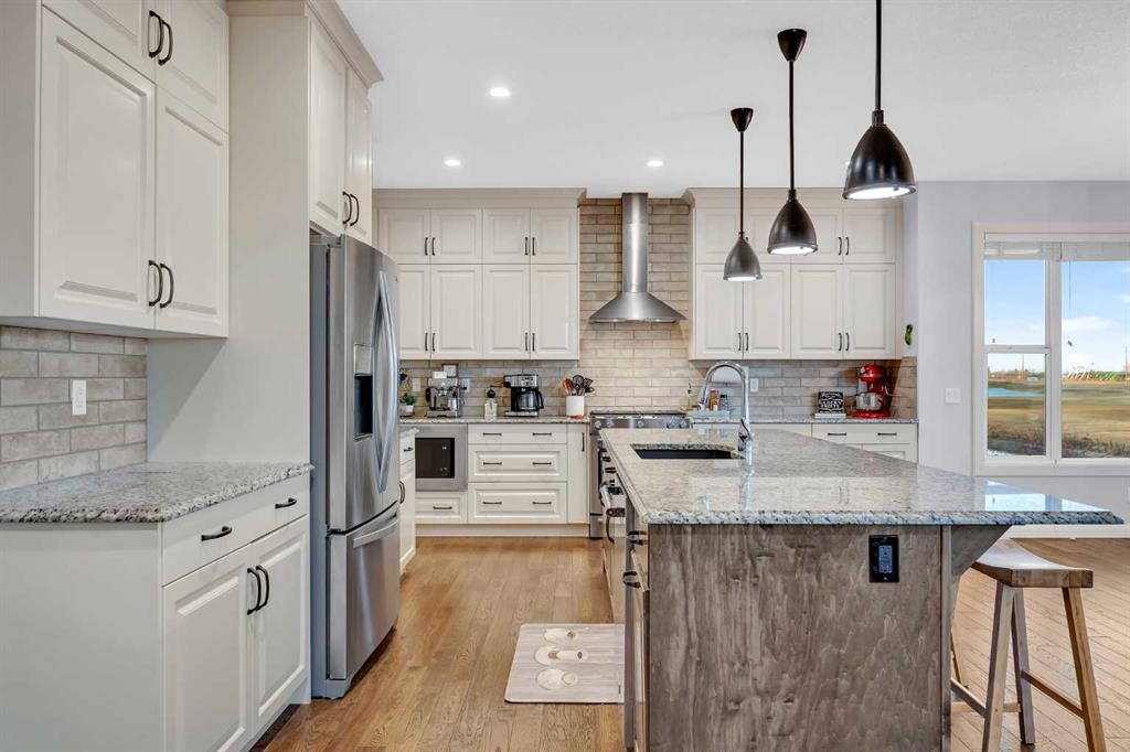 Stunning home offering over 3,900 sq. ft. of beautifully designed living space, backing onto the golf course with no neighbours behind and breathtaking sunrise and sunset views. This property combines luxury, functionality, and impressive craftsmanship throughout. The oversized 3-car garage is insulated and equipped with 220V electrical, perfect for hobbyists, EV charging, or workshop use. Exterior features include Hardie Board siding, permanent Govee lighting, and a large stamped-concrete patio. The east side offers RV parking, plus a double swinging gate for convenient backyard access for vehicles or equipment, with gate access available on both sides of the home. Inside, the bright and open layout features 9' ceilings, a 5-burner gas stove, and a kitchen designed for both cooking and entertaining—complete with granite countertops, floor-to-ceiling cabinetry, soft-close drawers and cupboards, and a pull-out spice rack. The mudroom is equipped with custom-built lockers, while the living room showcases a grand custom maple fireplace and built-in bookshelves. The upper bathrooms include granite countertops in the ensuite and quartz counters in the remaining bathrooms. Additional highlights include dual furnaces, and a brand-new hot water tank (2025). The fully finished walkout basement offers 9' ceilings, abundant natural light, and direct access to the backyard and patio. The home is also wired for indoor and outdoor speakers, enhancing both everyday living and entertaining. This exceptional property seamlessly blends comfort, luxury, and practical amenities—truly a rare find with outstanding views and privacy.