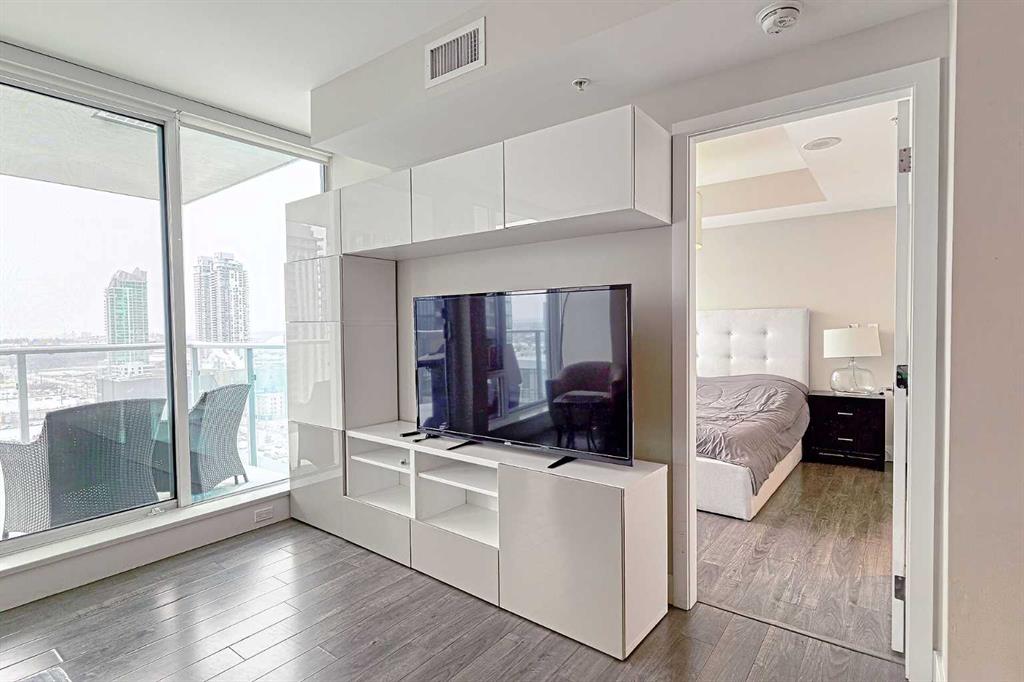Welcome to an amazing condo with OUTSTANDING VIEWS of downtown Calgary, including the gorgeous Calgary Tower, Calgary Public Library, Studio Bell and Saddledome. Your future home is located on the 19th floor of the sought after EVOLUTION building, which is walking distance to a myriad of of amenities in the East Village, and downtown. This luxury unit offers a beautiful kitchen with GAS STOVE, huge stone countertop, and plenty of cupboards. There is a dining area, a cozy living room with access to a good size balcony, a bedroom with a posh 4PC ensuite and a walk-in closet. Both living room and the bedroom have FLOOR to CEILING windows facing south. ***Enjoy the spectacular views***