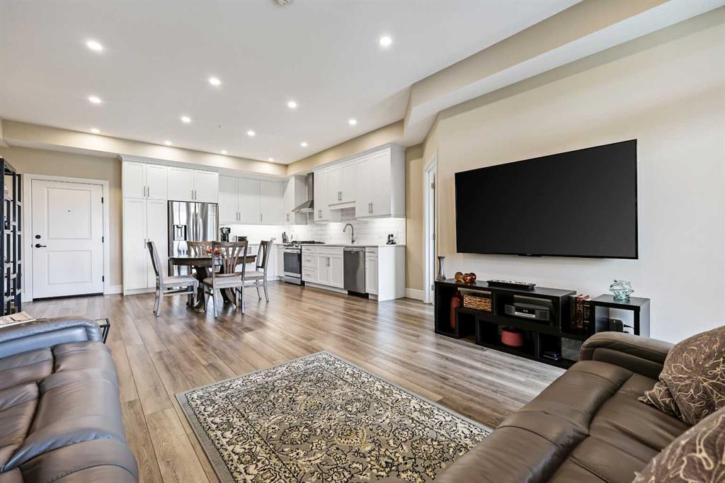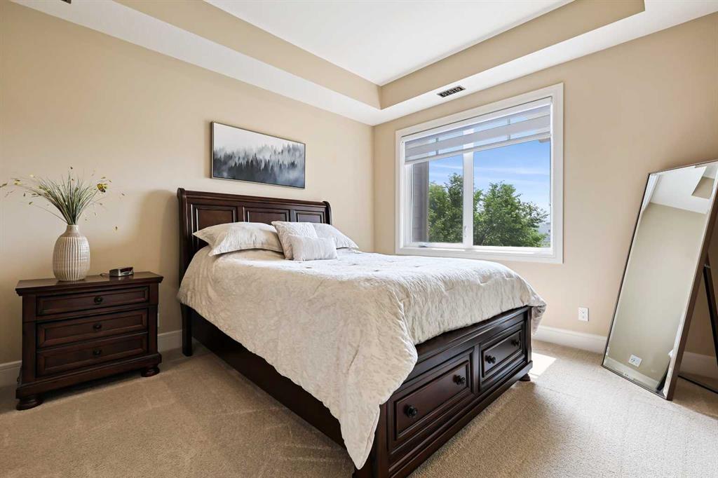Welcome to Sanderson Ridge, an adult community that cradles beautiful Fish Creek Park. No detail is overlooked, from the stunning craftsmanship of the exterior timber to the unsurpassed quality in the finishes of your suite. Sanderson Ridge is well-equipped for any hobby. Pool tables, games & poker rooms, fitness centre, bowling alleys, craft room, wine cellar & woodworking shop - complete with power tools - are waiting for you. There's a movie theatre, swimming pool, hot tub, steam room, coffee bar, library, fully equipped kitchen and "The Sanderson Room" available for events & 2 car-wash bays. Discover the ultimate in luxury and resort-style living, where every detail is designed for your comfort and joy! This beautiful unit features bright, sunlit views to the south, infusing the space with warmth and light. Step inside and you’ll be struck by the 9½ foot ceilings, cozy foyer, luxury vinyl plank floors, Santino Bianco porcelain tiles in bathrooms, recessed lighting throughout, a bright open floor plan and large windows that let the sunshine in. You will be delighted with the gourmet kitchen, featuring gorgeous quartz countertops, trendy backsplash, Blanco Precis silgranit under-mount double sink, stainless steel appliances including gas range, stylish hood fan, French door refrigerator with water and ice maker, built-in dishwasher, and microwave drawer. The spacious living area is perfect for hosting unforgettable gatherings. Step out onto the deck and bask in the warm sunshine – it's the ideal spot to enjoy your morning coffee or savor a glass of wine as the day unfolds! For added convenience, you'll find a BBQ hook-up ready for your outdoor grilling needs. The primary suite has a walk-thru closet fitted with custom closet organizers. Unwind in the spa-like ensuite featuring a double vanity and quartz countertops, after partaking in the many activities that Sanderson Ridge has to offer. Another bedroom, in-suite laundry complete with a washer & dryer, plus a striking main 4-piece bathroom, adds the perfect finishing touch to this impressive suite. You’ll appreciate the convenience of having a titled underground parking stall and a secure storage area conveniently located near the elevator. Note this unit is on the West side of the complex and was completed in 2022. Make sure to add this to your list to check out—you'll be glad you did.