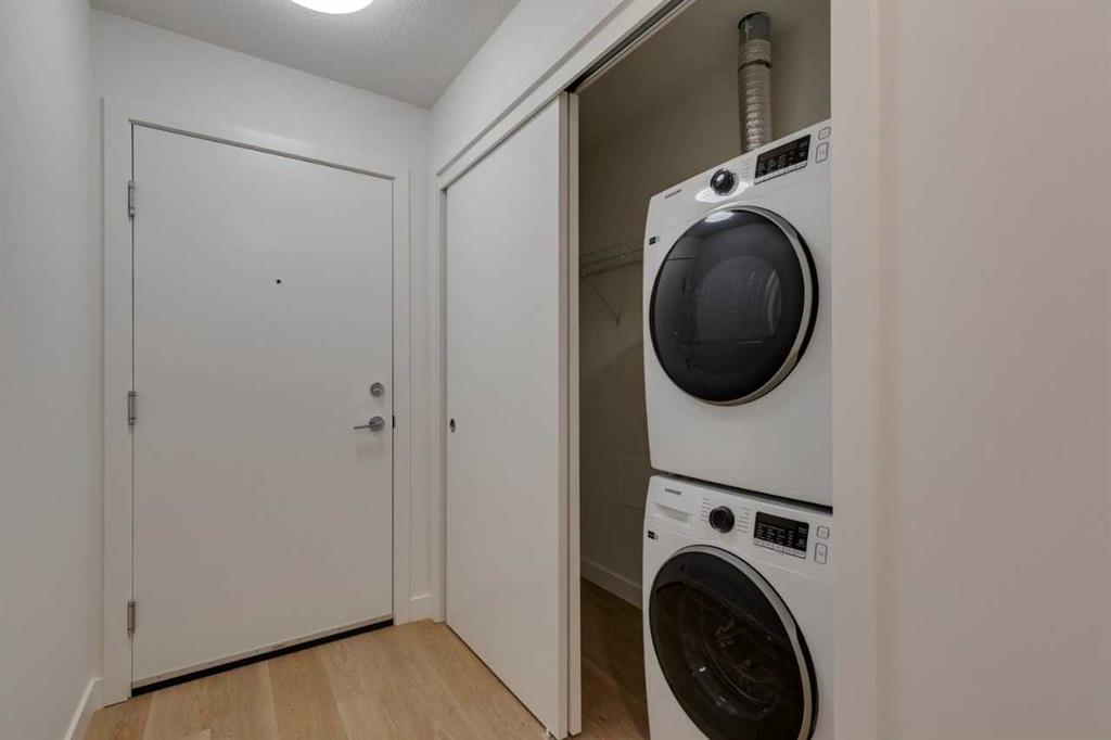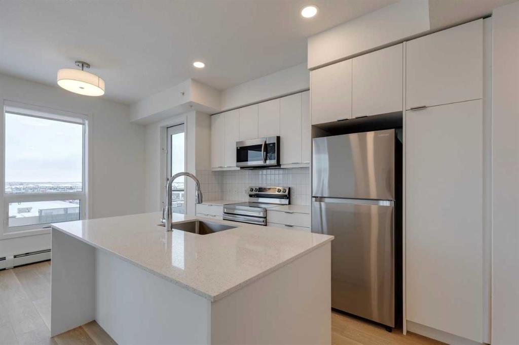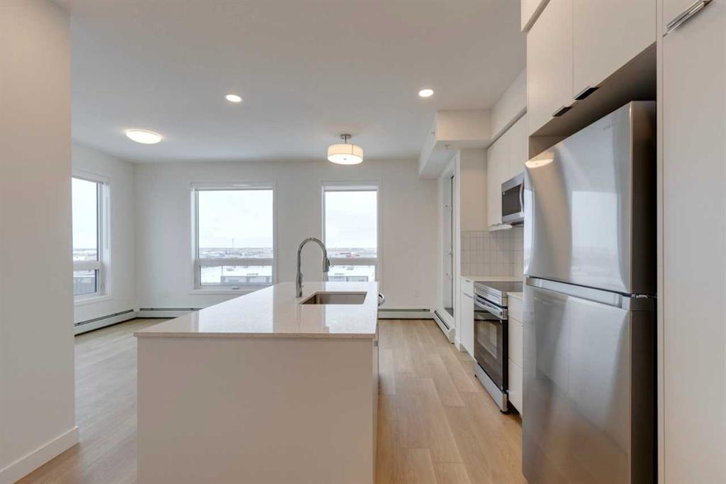 New Community in East Hills Crossing by Minto Communities. Great location offering a range of convenient amenities. Right across the street is East Hills Shopping Center and Costco. A short distance to Chestermere Lake to the East and only 8 km to downtown Calgary. Brand New Corner unit on the top floor! Great mountain views! Home offers 2 bedrooms plus den and 2 full baths. Open floor plan with quartz countertops throughout and LVP flooring throughout. Features in-suite laundry and a titled underground parking stall. Quick access to Stony Trail and downtown.