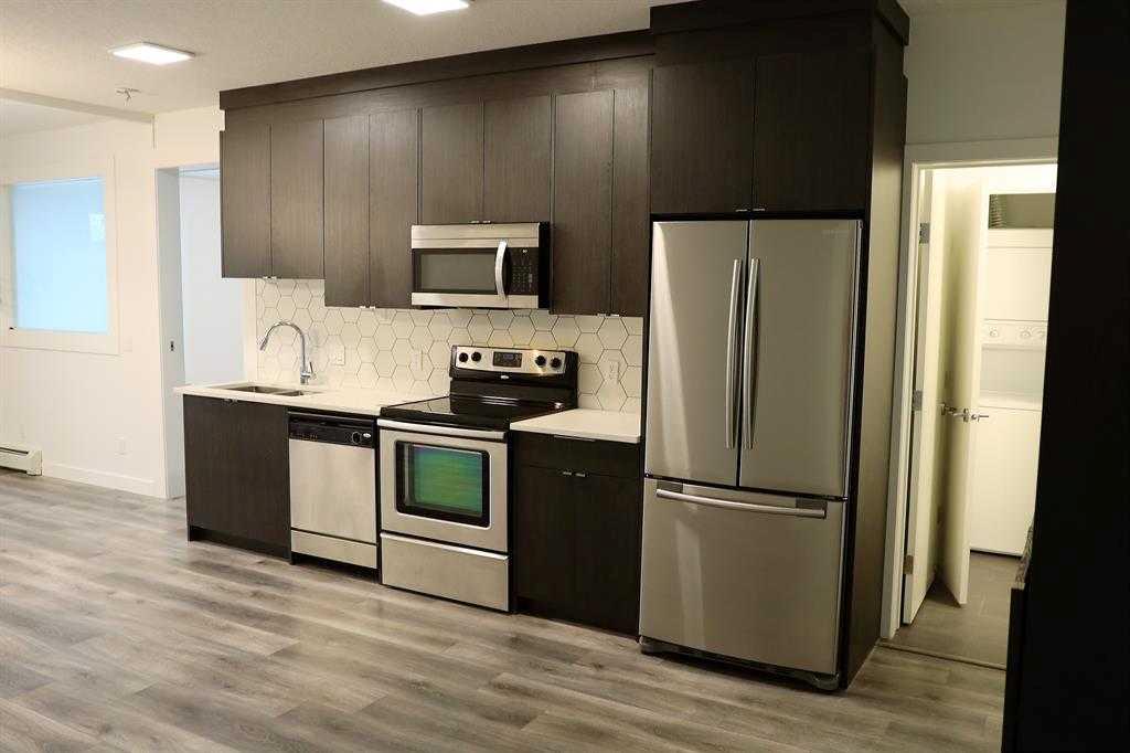 Welcome to Arcadia in Tuxedo, a prime condominium offering exceptional convenience and modern upgrades in one of Calgary’s most desirable inner-city communities. Very bright and large unit around 1030 Sq.Ft.. This extensively renovated unit (over $30,000 spent in improvements) features a contemporary design with glass doors, newer flooring, and central air conditioning throughout. One large bedroom with four piece bathroom attached, a good sized den which can be used as kids room/sleeping space, an office with lot of cabinets, The unit is ideal for a young family /professionals as the zoning approves for certain businesses to run from home.making it an ideal opportunity for professionals seeking a live/work space in the heart of Tuxedo. The unit offers a modern kitchen with stainless steel appliances, good size den/ office layouts, 1.5 bathrooms, in-suite laundry, and a private exterior entrance. Designed for functionality and style, this space is perfect for both residential and professional use. Parking is a standout feature: the owner holds two heated stalls in the building. One stall is included with the purchase price, while the remaining one is available for separate purchase. Located with direct access to Centre Street and 16 Avenue, this property is just minutes from Downtown Calgary and surrounded by shops, restaurants, and cafés. Photos were taken when the unit was vacant, showcasing the clean and versatile layout.