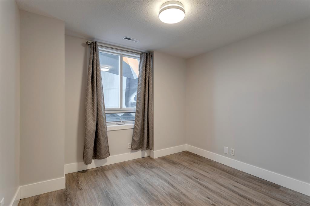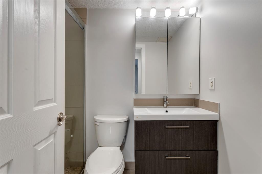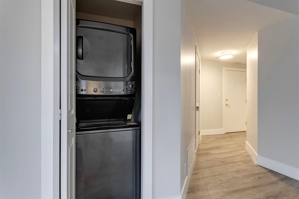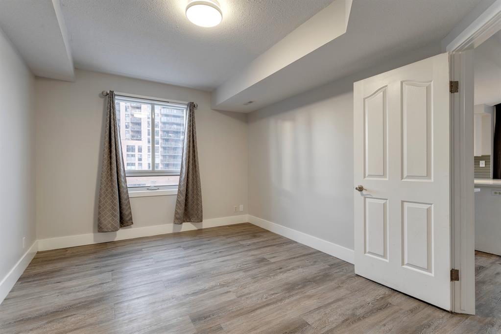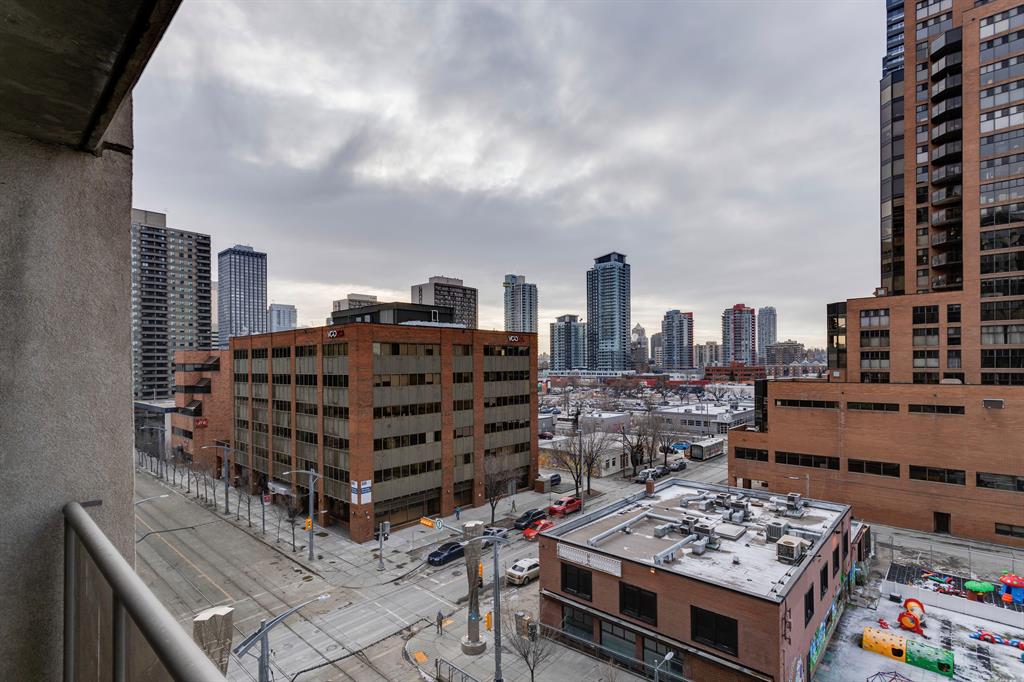 Available for immediate Possession! Freshly painted, substantially renovated 2 bedroom, 2 bathroom corner unit in Downtown West End. Very spacious, open concept with bright sunny west exposure & lovely river valley plus downtown views. Low maintenance laminate flooring throughout. Large peninsula kitchen with modern white cabinetry, quartz countertops, breakfast bar, stainless appliance package & a lovely window over the kitchen sink! Steps to the C-train free fare zone. This building offers security, concrete construction, underground parking plus fitness room. Walk to Kensington in 10 minutes, enjoy the Bow River pathway, restaurants and shops.