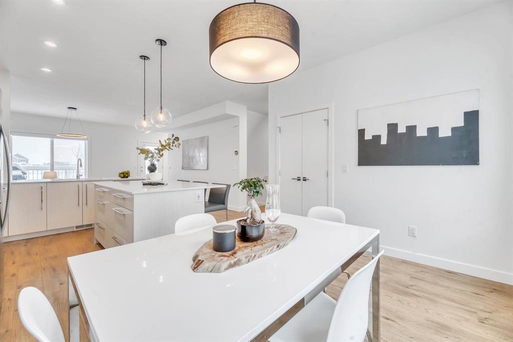 Welcome to this immaculate 3-bedroom, 2.5-bath townhome in the peaceful and scenic community of Creekstone in Pine Creek. Offering nearly 1,700 sq. ft. of usable space, a double-attached garage, and a highly functional layout, this beautifully styled home delivers comfort, versatility, and exceptional value. Perfectly positioned directly across from a green space, this home provides lovely views and the convenience of street parking right out front, in addition to the attached garage. The main floor features a bright and spacious multi-purpose room—ideal as a home office, gym, guest room, or fourth bedroom—giving you added flexibility to suit your lifestyle. Upstairs, you’ll find an impressively open and airy layout with a massive kitchen offering abundant counter space, pantry storage, stainless steel appliances, and extensive cabinetry. The large island is perfect for cooking, entertaining, and everyday living. The dining and living areas flow seamlessly together, enhanced by a neutral designer palette and beautiful natural light. The upper level hosts three well-sized bedrooms, including a comfortable primary suite with a walk-in closet and private ensuite. A full laundry area and an additional bathroom complete this level. This home is truly move-in ready and shows pride of ownership throughout. Located in a quiet, nature-rich neighborhood, you’re moments from Sirocco Golf Club, Spruce Meadows, walking paths, ponds, and beautiful open spaces. Commuting is effortless with quick access to Stoney Trail and Macleod Trail, connecting you easily to amenities, retail, and the rest of the city. A spacious, stylish, and exceptionally maintained home in a peaceful setting—this is one you won’t want to miss.