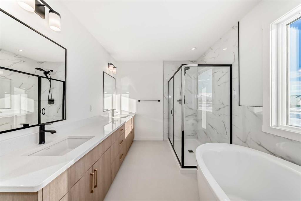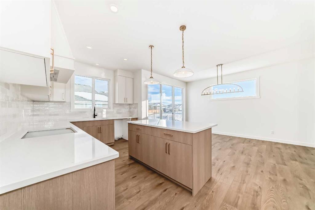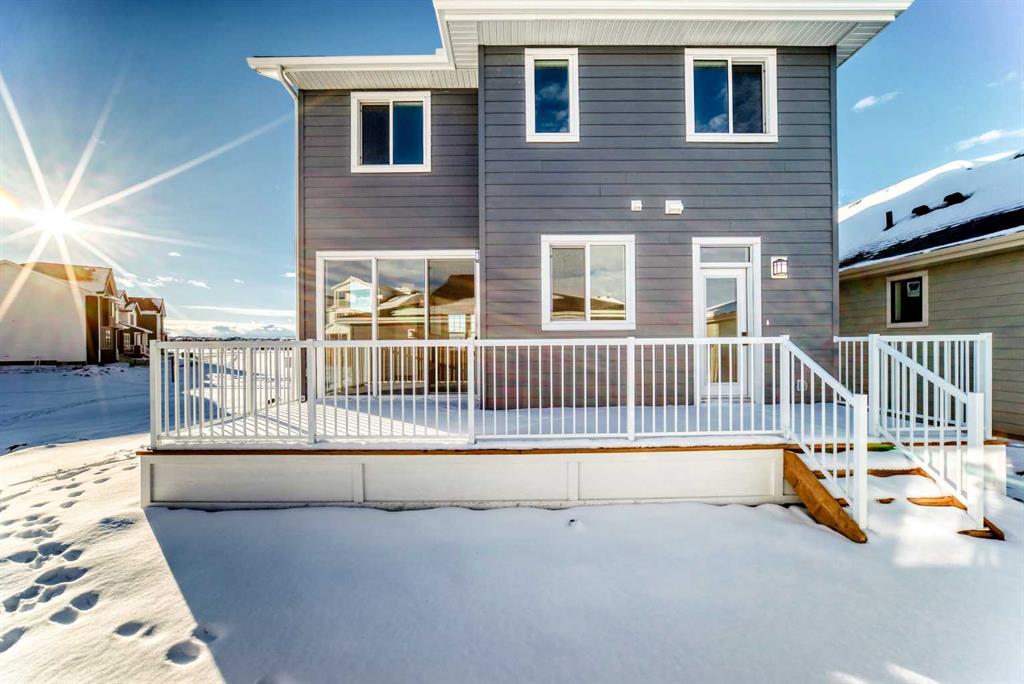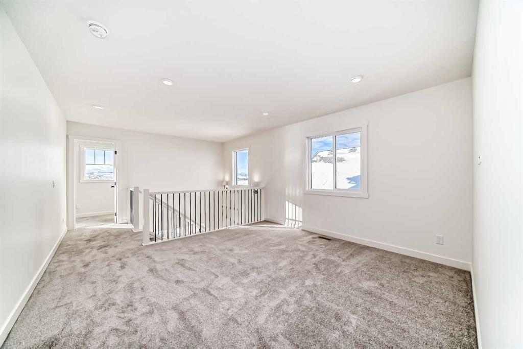 Move in today. This brand-new Sierra R by Daytona Homes delivers 2350 square feet of finished living space with a smart, functional layout that actually works for families. The main floor opens with a bright foyer and front den, ideal for a private office or quiet flex space. The kitchen is clean, modern, and efficient, finished with a central island, upgraded lighting package, and a walk-through pantry that keeps clutter out of sight. It flows directly into the dining nook and great room, where oversized windows and a gas fireplace create a warm, open main living zone buyers want. Upstairs, the layout hits every need. The primary suite is large and well-designed with a walk-in closet and a polished ensuite featuring a freestanding tub, walk-in shower, dual vanities, and contemporary finishes. Three additional bedrooms, a full bathroom, second-floor laundry, and a bonus room complete the upper floor, giving families the space separation they rely on day to day. The unfinished basement features a 9-foot foundation height and a practical layout ready for future development. The exterior shows strong curb appeal with a modern farmhouse elevation, smartboard detailing, stone accents, and a full double attached garage. Located in Southbow Landing, Cochrane’s fast-growing community, this home offers quick access to future parks, walkways, local amenities, and the Bow River. With today’s clean modern finishes, brand-new systems, and immediate occupancy, this is a turnkey opportunity in a community built for long-term value.