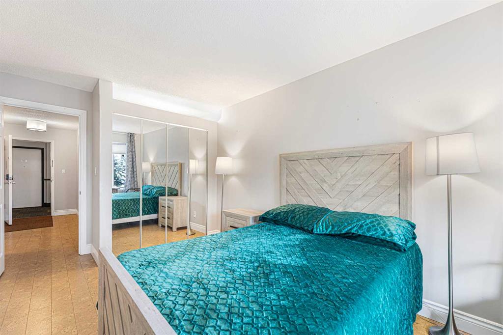 Welcome to the next chapter of your life. Located in the Landmark complex in the Aspen building, is where you will find this TOP FLOOR 2 BEDROOM condo with UNDERGROUND PARKING and STORAGE SPACE. Vaulted ceilings invite you to the living room where you will warm up those cold winter nights with a wood-burning fireplace. The functional and warm cork flooring make this an easy choice for any point in life. The renovated kitchen adds to the appeal of this beautiful home with stainless steel appliances, granite countertops and modern backsplash. The bathroom has also been updated to give you a spa-like feel with new lighting, cabinetry and tub. The two spacious bedrooms are ifunctional with bay windows overlooking the quiet and tranquil courtyard. The balcony is nicely covered for you to enjoy your coffee in the mornings looking out at your serene view. There is also a good sized storage room located inside the condo. With the LAUNDRY ROOM only a few doors away and the puzzle/reading room only a few steps further, buying this condo won't just change your address but also your lifestyle. You are only 200 yards from Bowmont Park where you can walk for hours in the large natural environment park that lies along the northern bank of the Bow River. Walking across the street the other way can take you to your doctor at Market Mall Professional building or the shops and restaurants at Market Mall. University District and the Foothills Hospital are also minutes away. Call your REALTOR today so that you can enjoy the upgraded lifestyle in Varsity very soon!