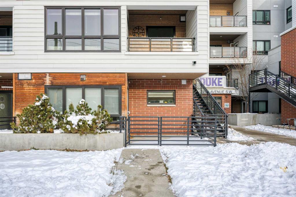 Live in the heart of Mission at Duke at Mission. This bright 1 bedroom, 1 bathroom condo offers 504 sq ft of efficient living space on the sunny, south-facing ground floor—perfect for those who love the inner-city lifestyle. The open-concept layout feels warm and inviting, with 9-ft ceilings throughout. The modern Kitchen features quartz countertops, a breakfast bar, and stainless steel appliances, opening to a comfortable Living room with large windows that flood the space with natural light and flow out to your patio. You’ll also find a well-sized primary bedroom, a full 4-piece bath, and convenient in-suite laundry. Practical perks include a titled underground parking stall and an assigned storage space. Set just behind 17 Ave, you’re surrounded by Calgary’s vibrant inner-city lifestyle. Saint Mary’s High School is just steps away, and you’re only steps to popular cafés, restaurants, pubs, boutique shops, fitness studios, and the Elbow River pathways. Enjoy easy access to downtown, Stampede Park, the Saddledome, and the MNP Community & Sport Centre—truly the best of urban living at your doorstep.