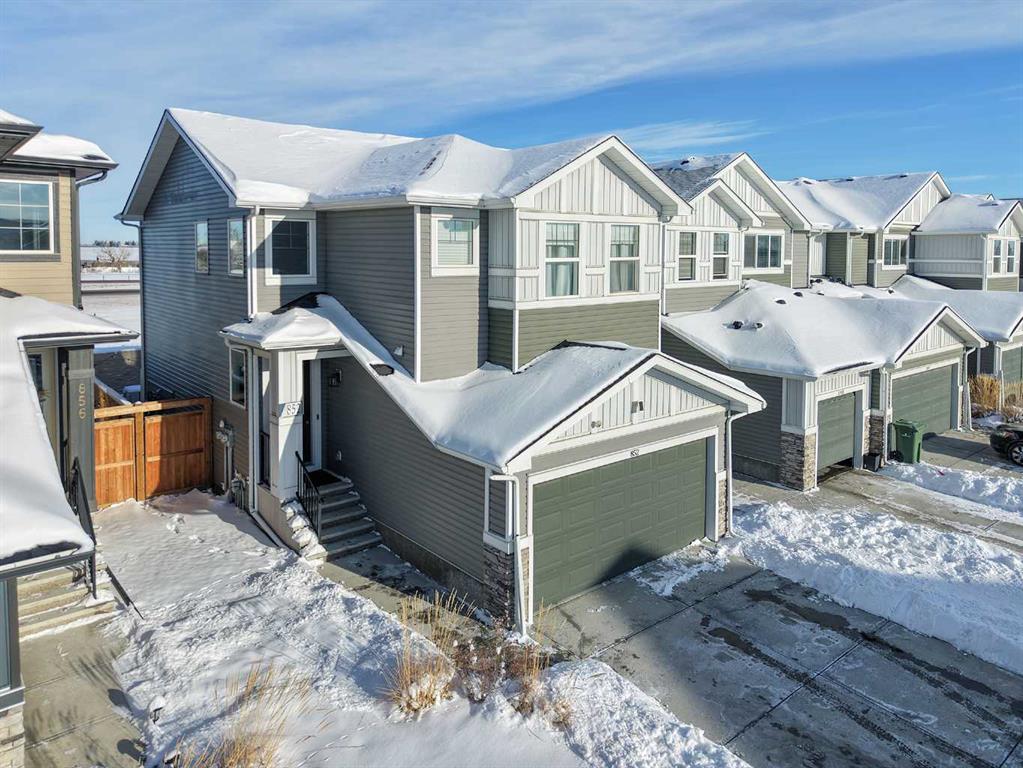 A warm, elegant townhome with absolutely NO CONDO FEES! Because of the front ATTACHED DOUBLE GARAGE and smart layout with 1600+ sqft, it feels more like a “real” home than a typical townhouse. Inside, you’ll notice calm blue-grey tones, light HARDWOOD flooring, and a bright, relaxed vibe that makes the whole space feel easy to live in. Plus, the TRIPLE-PANE WINDOWS keep things quiet and energy-friendly. The main floor has an open design with a VAULTED CEILING as you enter. The kitchen has QUARTZ counters, an ISLAND, a corner PANTRY, and plenty of room to cook. Just steps away, the living area features an electric FIREPLACE that gives the room a comfortable glow - perfect for movie nights or lazy Sundays. The dining area is sized perfectly for a large table to feast with friends. And the BACK DECK is another bonus for BBQs and summer soirees. Upstairs, a BONUS ROOM sits between the bedrooms - use it as a play space, hangout zone, or whatever fits your lifestyle. The PRIMARY bedroom includes a WALK-IN CLOSET and an ensuite with DOUBLE SINKS and a WALK-IN SHOWER. Two more bedrooms, a second full bathroom, and upstairs laundry make daily routines easy. The BASEMENT is unfinished, giving you the chance to design it your way - a rec room, a home gym, a fourth bedroom and bathroom, or even extra storage. And let’s not forget there’s also CENTRAL A/C for those warm summer days. Lakepointe is a family-friendly neighbourhood with easy access to schools, parks, pathways, shopping, and of course, CHESTERMERE LAKE. It’s the kind of place where you can walk the dog, hang out at the park, or enjoy a lakeside afternoon. If your wish list includes a home that feels super stylish and practically brand new, 852 Marina Drive is a fantastic fit!