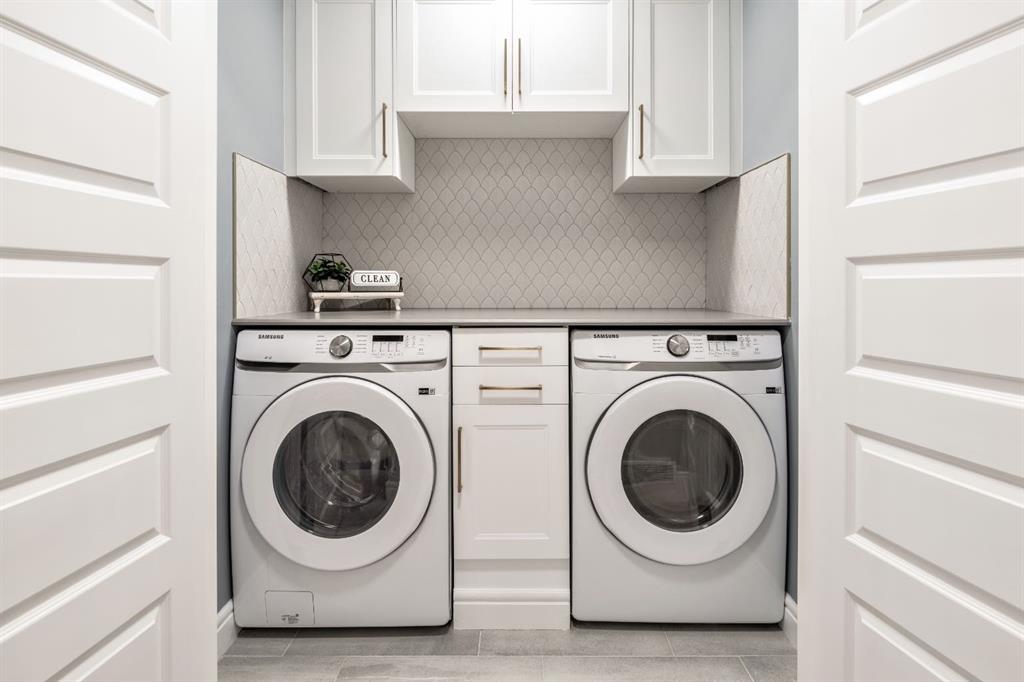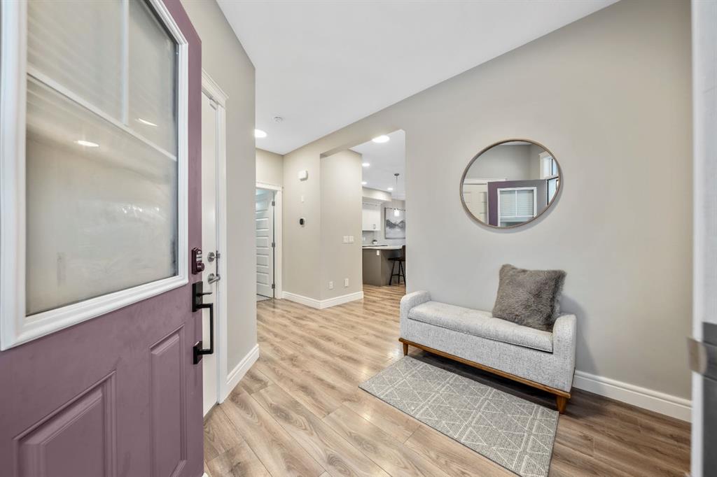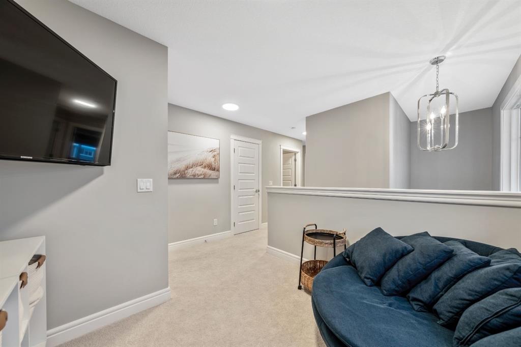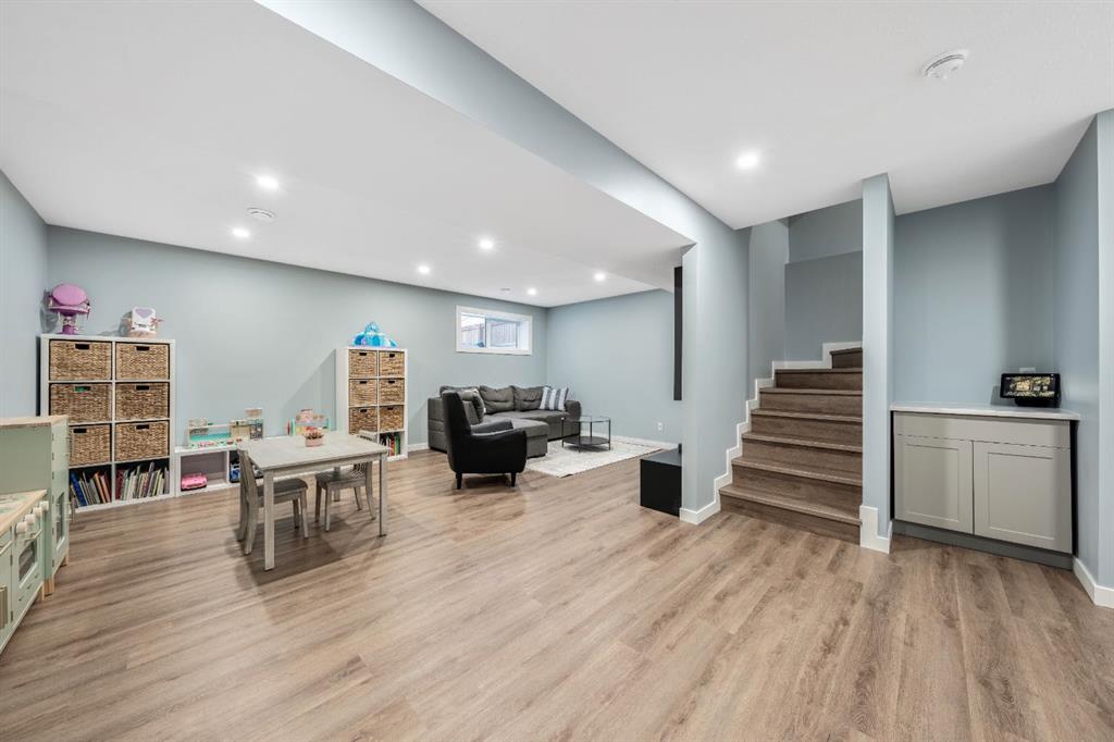 Welcome to this beautifully upgraded, FULLY FINISHED home offering modern finishes, thoughtful design, and exceptional comfort from top to bottom. Set on a fully fenced lot and complete with a HEATED DOUBLE GARAGE, this property is truly move-in ready with nothing left to do. Step inside to a bright, inviting main floor where style meets modern function. The open-concept layout features a stunning kitchen with upgraded appliances—including a smart fridge, induction stove, dishwasher, and microwave—plus a large island perfect for meal prep and gathering. The spacious living room offers a sleek electric fireplace with a custom pull-out mantel designed to discreetly house your media components. The generous dining area flows seamlessly to the private, fully fenced backyard with a storage shed and a gas line on the deck for those summer BBQ nights. Upstairs, the primary bedroom impresses with a luxurious 5-piece ensuite and a walk-in closet. Two additional well-appointed bedrooms share a beautifully finished 4-piece bathroom. The upper level also features a large laundry closet equipped with Samsung appliances, custom cabinets, and built-in shelving for added convenience. The professionally finished (permitted) basement expands your living space with a second electric fireplace, an included TV, and a full 4-piece bathroom with an extra-deep soaker tub—ideal for relaxing after a long day. The heated double attached garage is both comfortable and functional, complete with included wooden shelving for extra storage. Additional features and upgrades include: a tankless water heater, central air conditioning, central vacuum, Gemstone exterior lighting, two electric fireplaces, all window coverings (including blackout blinds), fully fenced yard, and an included storage shed. Located in Heartland, this home offers quick access to nearby amenities and an easy escape to Ghost Lake, Canmore, and the Rocky Mountains—perfect for weekend adventures and everyday convenience.