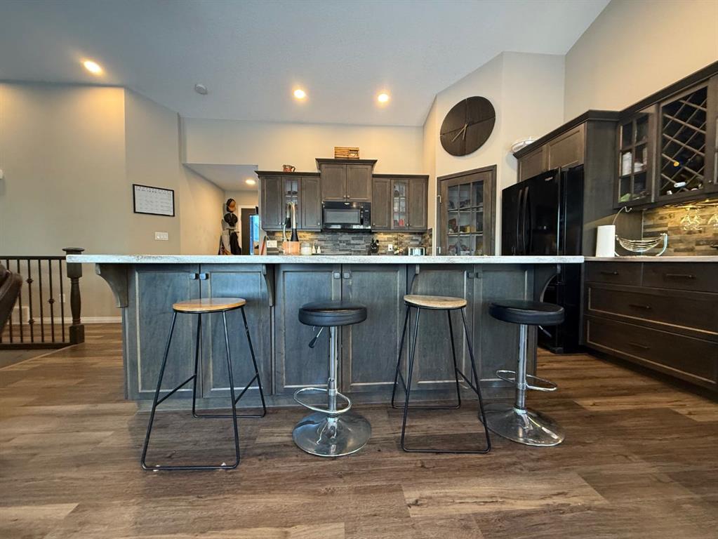 Discover peaceful country living on this beautifully set-up acreage with almost 7 acres ~ an ideal place to raise a family. Outdoors, you’ll find a 30' x 50' Quonset (1982) with a gravel floor providing ample storage, along with a 22' x 28' detached garage (1982). The home, built in 2018, offers 5 bedrooms,3 bathrooms, and an inviting open-concept layout. The main living area features vaulted ceilings, warm neutral tones, and a spacious kitchen complete with a stunning oversized island, rich cabinetry, and a corner pantry. Just off the dining area, a large deck overlooks the trees and a stunning view of fields and skies - a perfect spot for BBQ season or simply relaxing and taking in the ithe view.The primary bedroom is a true retreat with its generous walk-in closet and spa-inspired ensuite.This property is wonderfully private and serene, and it’s already set up for horses with a horse waterer in place. Acreage living at its finest—private, peaceful, and ready for its next family.