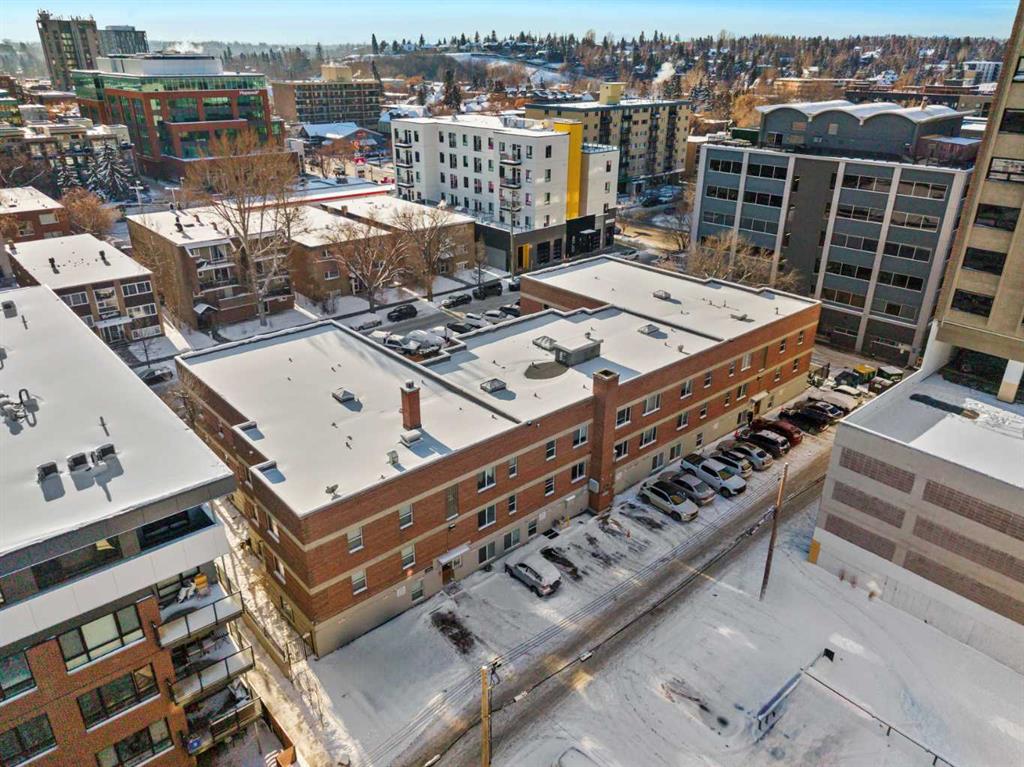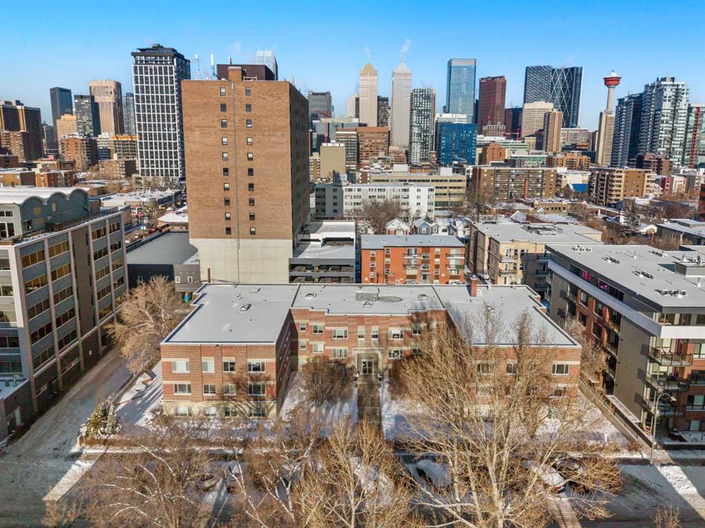 TOP FLOOR UNIT • 2 BEDROOM/DEN • CONDO FEES INCLUDE ALL UTILITIES, INCLUDING ELECTRICITY! • This charming top-floor, front-facing unit is located in the iconic Athlone, Mission’s first luxury apartment complex built in 1940. It beautifully blends vintage character with modern updates. Featured in the Calgary Historical Walking Tour guidebook, the building showcases preserved Art Modern details, such as blonde wood handrails, classic glass globe lighting, nickel radiators, and stunning archways. Inside, the functional layout features oak hardwood flooring throughout, a spacious, modern kitchen with ample cabinetry, laminate countertops, a center island with a large sink, and stainless steel appliances. The kitchen opens into a bright living room that overlooks the grand courtyard. The large bedroom is filled with natural light, while the updated four-piece bathroom boasts clean, classic subway tile and period charm. Additionally, there is a second bedroom or den with convenient barn door access. A dedicated storage room includes hook-ups for in-suite laundry, and the unit comes with assigned parking and bike storage. Located in the heart of vibrant Mission, you are just steps away from the Elbow River pathways, 4th Street shopping and restaurants, Repsol Centre, festivals, nightlife, and only minutes from downtown. The building is pet-friendly (with board approval) and well-managed, offering exceptional value in one of Calgary’s most walkable and desirable communities. Don’t miss this rare chance to own a piece of history—book your showing today and be sure to check out the 3D virtual tour.