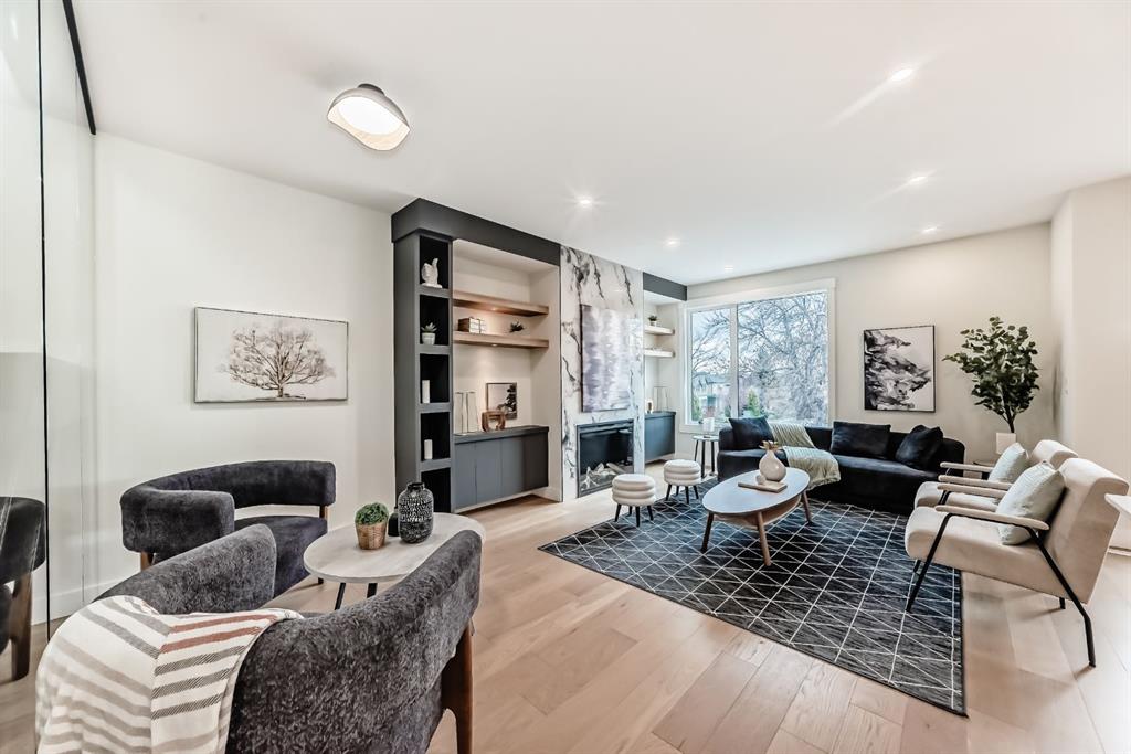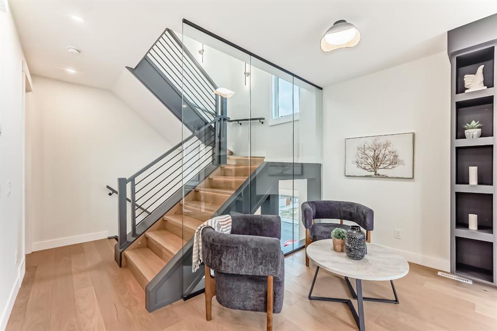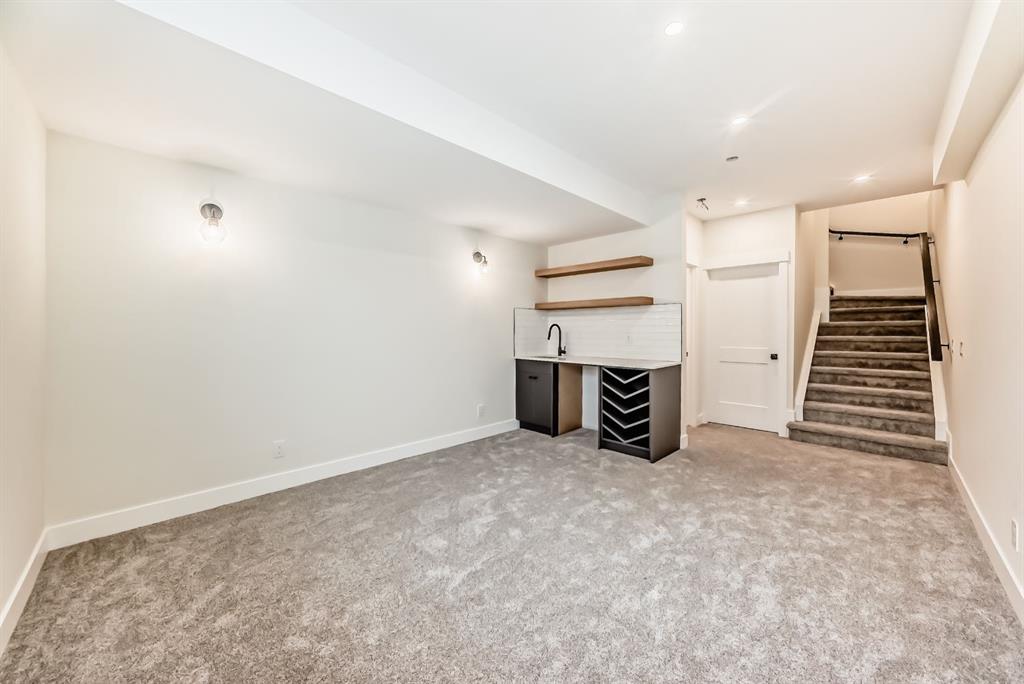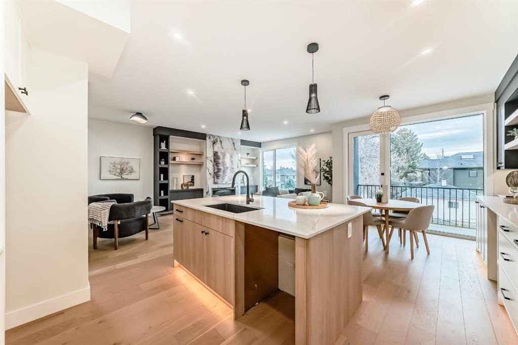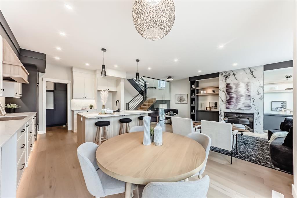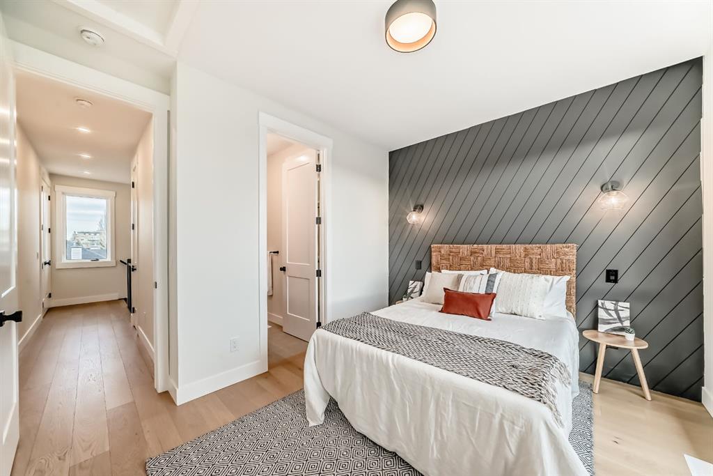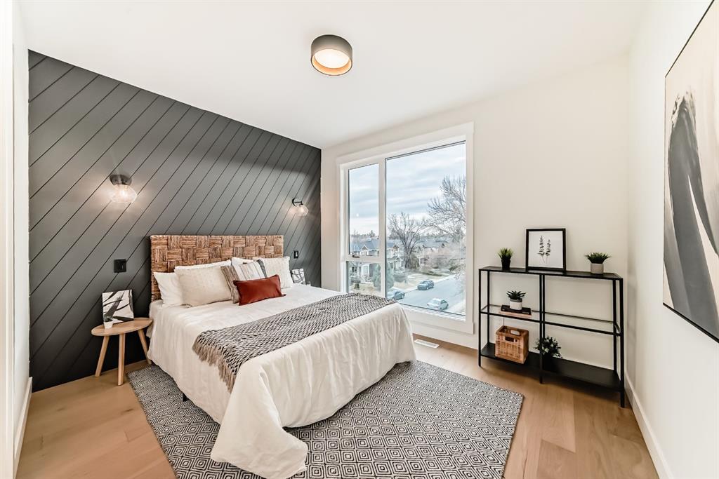 NOW SELLING – 3 STORY LUXURY TOWNHOMES | 4 UNITS AVAILABLE | in ALTADORE Proudly built by Cascade Developments Inc, these exceptional townhomes offer the perfect blend of style, function, and an unbeatable inner-city location on a quiet, tree-lined street. This corner townhouse spans over 2,300 sq. ft. of meticulously crafted living space and features 3 bedrooms above grade, a fully finished basement, a private balcony, and 4.5 bathrooms with premium contemporary finishes. The entry level welcomes you with an open-concept layout, engineered hardwood floors, custom wall panels, and an attached garage. The driveway showcases a stunning exposed aggregate finish, combining elegance with durability. This level also includes a bedroom or office with a large window, full ensuite, and closet, offering flexible living for guests or a home office. The staircase serves as a true centerpiece, featuring luxury glass panels, sleek modern handrails, and custom sensor LED lighting, adding a contemporary and sophisticated touch to the open-concept design. The main floor offers an expansive living area highlighted by a sleek electric fireplace. The chef-inspired kitchen features full-height custom cabinetry, quartz countertops and quartz backsplash, a gas range, built-in oven, a walk-in pantry, and a designer custom wood-slat hood fan. Buyers will also receive an appliance credit or may choose from available brand options. A convenient powder room completes this elevated living space. The top floor is designed for comfort, with two beautifully appointed bedrooms. Both bedrooms offer generous walk-in closets and spa-inspired ensuites with heated floors, creating a luxurious retreat. A dedicated laundry area with stackable washer/dryer with sink adds convenience to this thoughtfully designed level. The fully finished basement offers exceptional versatility with a large rec room, perfect for entertaining, along with a wet bar and a 3pc bathroom. Buyers also have the option to upgrade to a four-bedroom basement layout at no extra cost, providing additional living space and flexibility. Throughout the townhouse, high-end contemporary finishes create a refined and luxurious atmosphere. Outside, low-maintenance landscaping ensures practicality without compromising curb appeal. Don’t miss your opportunity to own a luxury townhouse in Altadore, one of Calgary’s most desirable communities. Rough-in for central AC and garage heater are included. Book your private showing today.