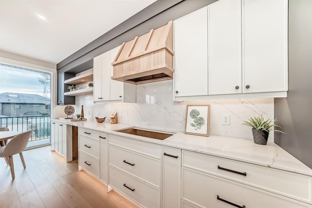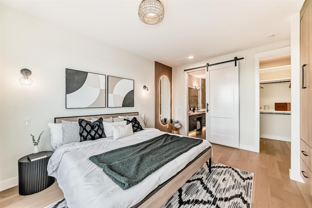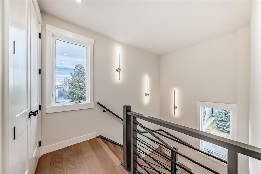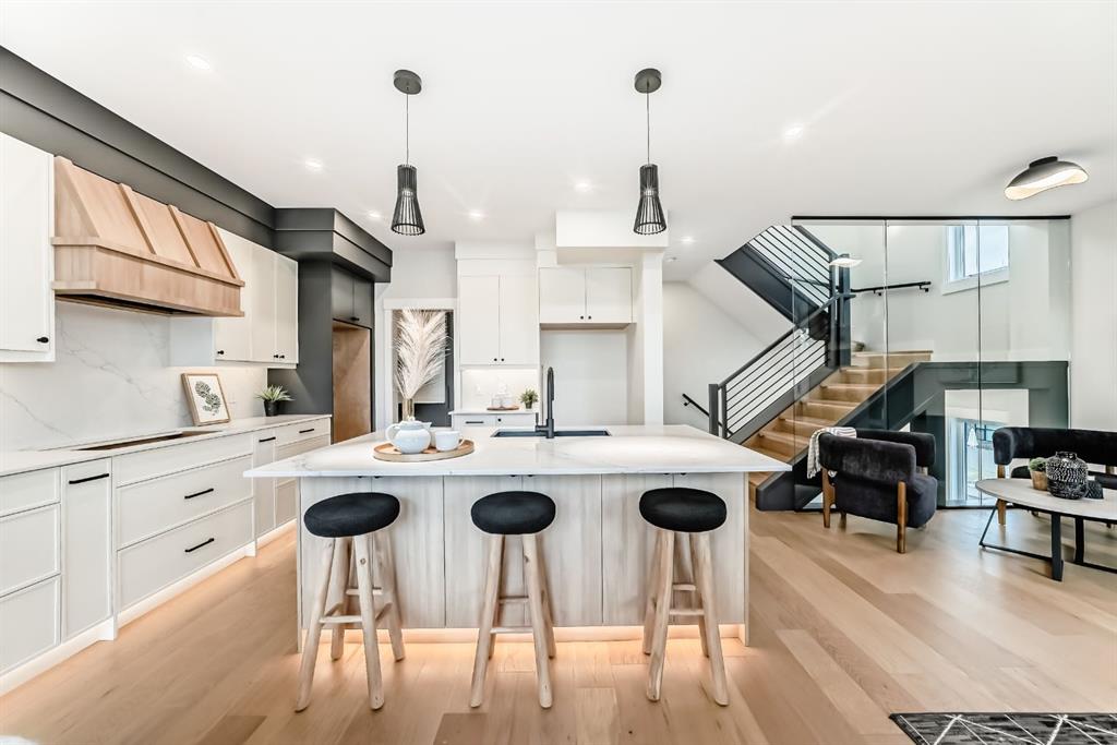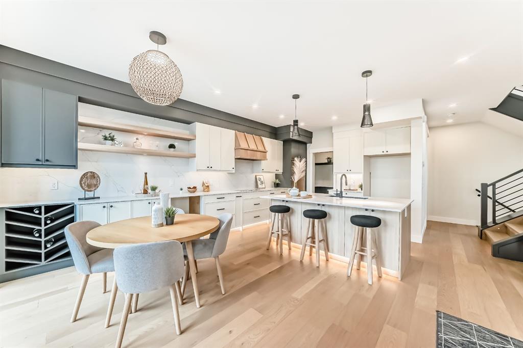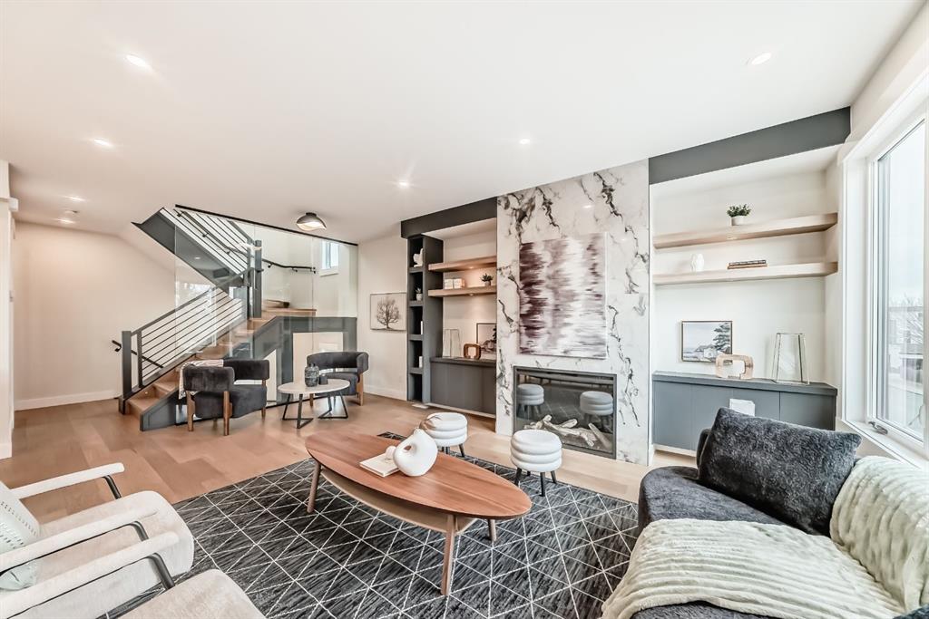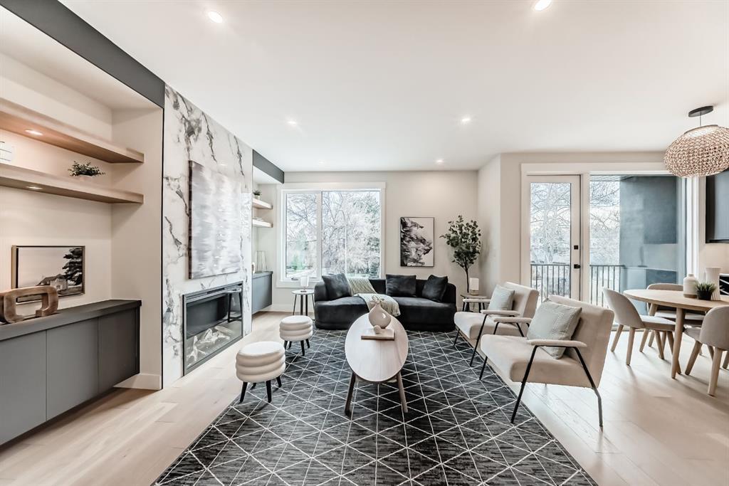 NOW SELLING – 3 STORY LUXURY TOWNHOMES | 4 UNITS AVAILABLE | in ALTADORE Proudly built by Cascade Developments Inc, these exceptional townhomes offer the perfect blend of style, function, and an unbeatable inner-city location on a quiet, tree-lined street. This corner townhouse spans over 2,300 sq. ft. of meticulously crafted living space and features 3 bedrooms above grade, a fully finished basement, a private balcony, and 4.5 bathrooms with premium contemporary finishes. The entry level welcomes you with an open-concept layout, engineered hardwood floors, custom wall panels, and an attached garage. The driveway showcases a stunning exposed aggregate finish, combining elegance with durability. This level also includes a bedroom or office with a large window, full ensuite, and closet, offering flexible living for guests or a home office. The staircase serves as a true centerpiece, featuring luxury glass panels, sleek modern handrails, and custom sensor LED lighting, adding a contemporary and sophisticated touch to the open-concept design. The main floor offers an expansive living area highlighted by a sleek electric fireplace. The chef-inspired kitchen features full-height custom cabinetry, quartz countertops and quartz backsplash, a gas range, built-in oven, a walk-in pantry, and a designer custom wood-slat hood fan. Buyers will also receive an appliance credit or may choose from available brand options. A convenient powder room completes this elevated living space. The top floor is designed for comfort, with two beautifully appointed bedrooms. Both bedrooms offer generous walk-in closets and spa-inspired ensuites with heated floors, creating a luxurious retreat. A dedicated laundry area with stackable washer/dryer with sink adds convenience to this thoughtfully designed level. The fully finished basement offers exceptional versatility with a large rec room, perfect for entertaining, along with a wet bar and a 3pc bathroom. Buyers also have the option to upgrade to a four-bedroom basement layout at no extra cost, providing additional living space and flexibility. Throughout the townhouse, high-end contemporary finishes create a refined and luxurious atmosphere. Outside, low-maintenance landscaping ensures practicality without compromising curb appeal. Don’t miss your opportunity to own a luxury townhouse in Altadore, one of Calgary’s most desirable communities. Rough-in for central AC and garage heater are included. Book your private showing today.