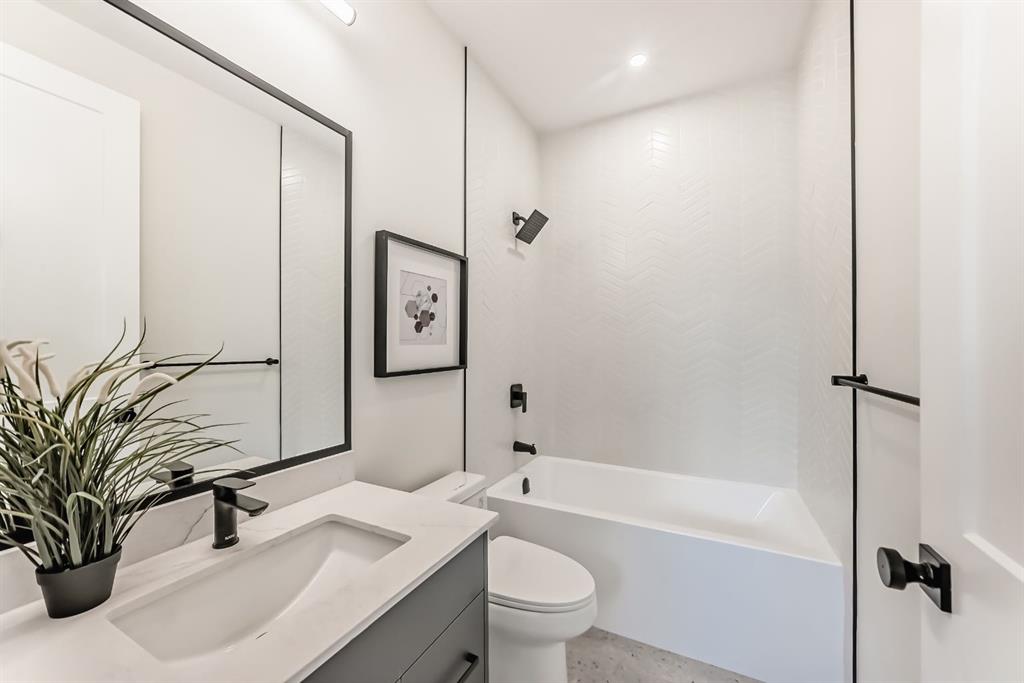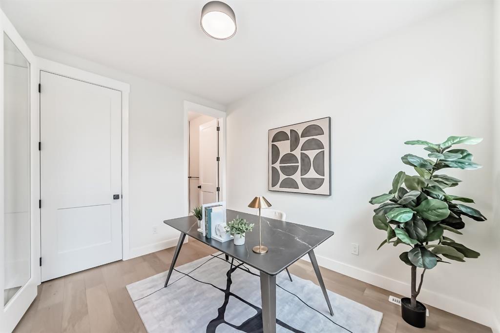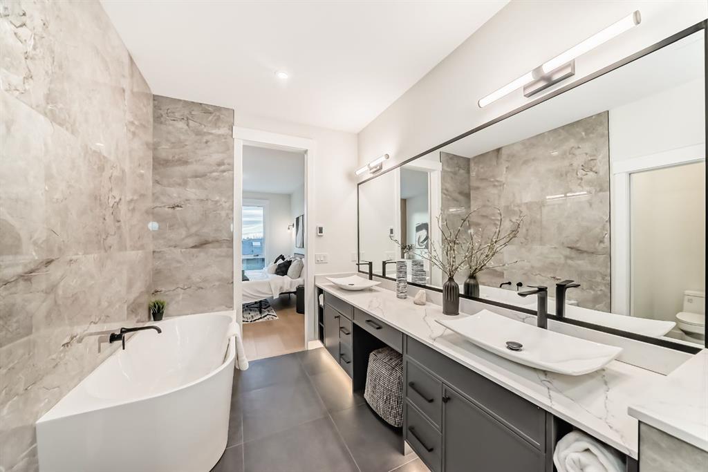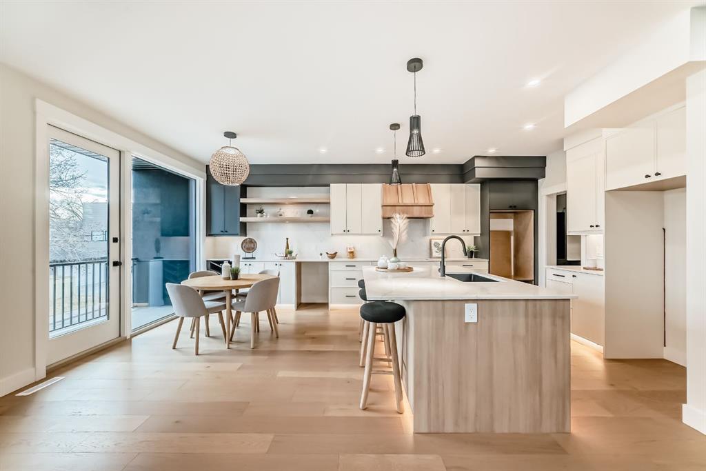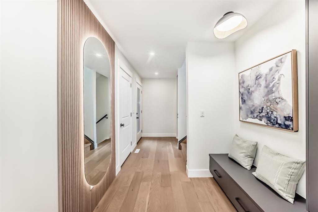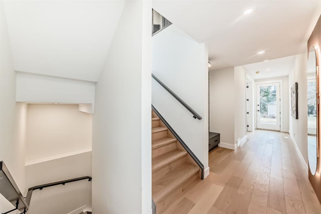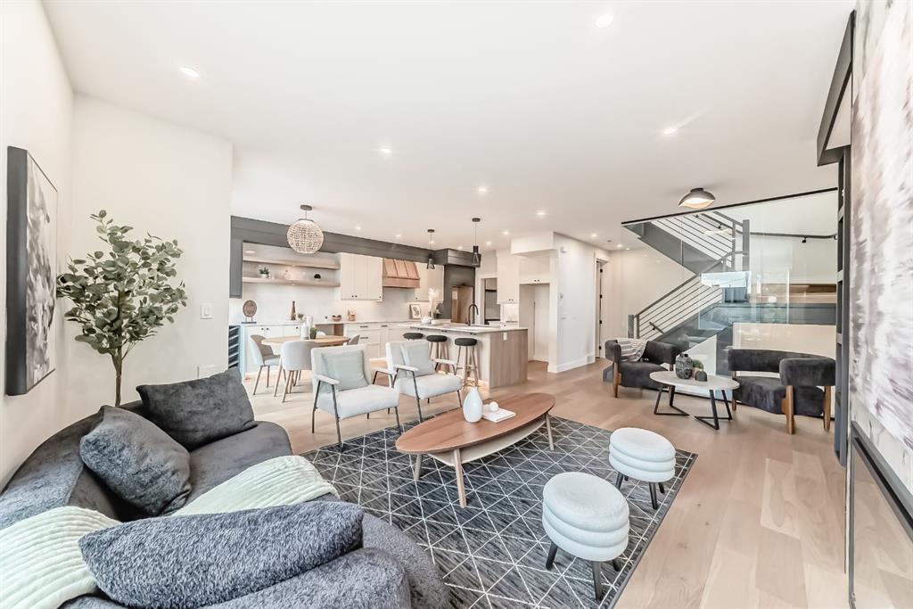 NOW SELLING – 3 STORY LUXURY TOWNHOMES | 4 UNITS AVAILABLE | in ALTADORE Proudly built by Cascade Developments Inc, these exceptional townhomes offer the perfect blend of style, function, and an unbeatable inner-city location on a quiet, tree-lined street. This corner townhouse spans over 2,300 sq. ft. of meticulously crafted living space and features 3 bedrooms above grade, a fully finished basement, a private balcony, and 4.5 bathrooms with premium contemporary finishes. The entry level welcomes you with an open-concept layout, engineered hardwood floors, custom wall panels, and an attached garage. The driveway showcases a stunning exposed aggregate finish, combining elegance with durability. This level also includes a bedroom or office with a large window, full ensuite, and closet, offering flexible living for guests or a home office. The staircase serves as a true centerpiece, featuring luxury glass panels, sleek modern handrails, and custom sensor LED lighting, adding a contemporary and sophisticated touch to the open-concept design. The main floor offers an expansive living area highlighted by a sleek electric fireplace. The chef-inspired kitchen features full-height custom cabinetry, quartz countertops and quartz backsplash, a gas range, built-in oven, a walk-in pantry, and a designer custom wood-slat hood fan. Buyers will also receive an appliance credit or may choose from available brand options. A convenient powder room completes this elevated living space. The top floor is designed for comfort, with two beautifully appointed bedrooms. Both bedrooms offer generous walk-in closets and spa-inspired ensuites with heated floors, creating a luxurious retreat. A dedicated laundry area with stackable washer/dryer with sink adds convenience to this thoughtfully designed level. The fully finished basement offers exceptional versatility with a large rec room, perfect for entertaining, along with a wet bar and a 3pc bathroom. Buyers also have the option to upgrade to a four-bedroom basement layout at no extra cost, providing additional living space and flexibility. Throughout the townhouse, high-end contemporary finishes create a refined and luxurious atmosphere. Outside, low-maintenance landscaping ensures practicality without compromising curb appeal. Don’t miss your opportunity to own a luxury townhouse in Altadore, one of Calgary’s most desirable communities. Rough-in for central AC and garage heater are included. Book your private showing today.
