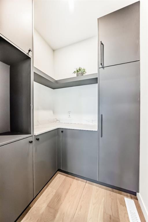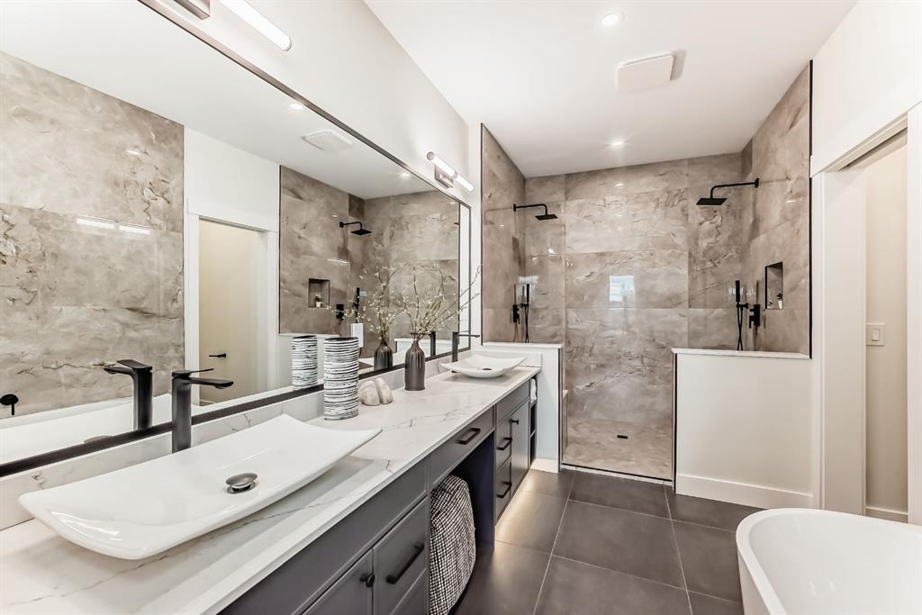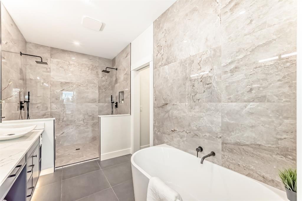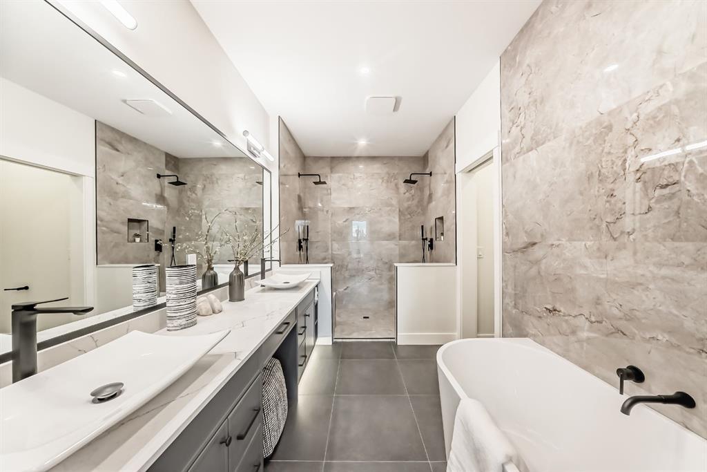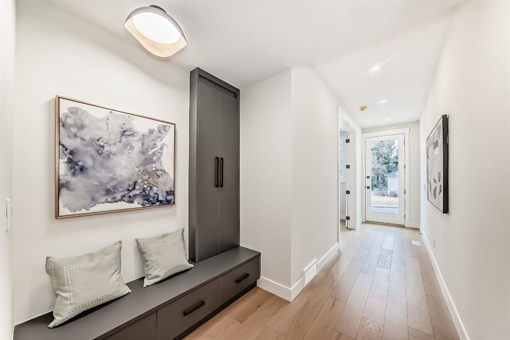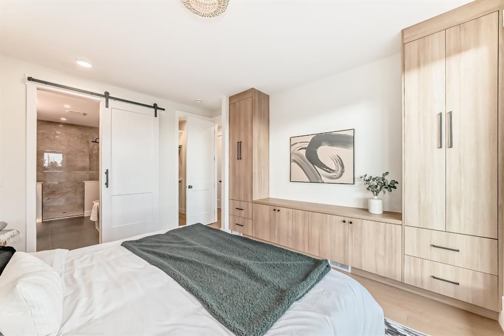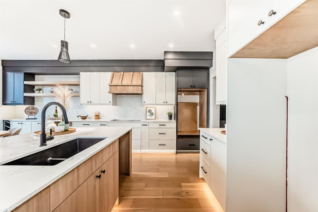 NOW SELLING – 3 STORY LUXURY TOWNHOMES | 4 UNITS AVAILABLE | in ALTADORE Proudly built by Cascade Developments Inc, these exceptional townhomes offer the perfect blend of style, function, and an unbeatable inner-city location on a quiet, tree-lined street. This corner townhouse spans over 2,300 sq. ft. of meticulously crafted living space and features 3 bedrooms above grade, a fully finished basement, a private balcony, and 4.5 bathrooms with premium contemporary finishes. The entry level welcomes you with an open-concept layout, engineered hardwood floors, custom wall panels, and an attached garage. The driveway showcases a stunning exposed aggregate finish, combining elegance with durability. This level also includes a bedroom or office with a large window, full ensuite, and closet, offering flexible living for guests or a home office. The staircase serves as a true centerpiece, featuring luxury glass panels, sleek modern handrails, and custom sensor LED lighting, adding a contemporary and sophisticated touch to the open-concept design. The main floor offers an expansive living area highlighted by a sleek electric fireplace. The chef-inspired kitchen features full-height custom cabinetry, quartz countertops and quartz backsplash, a gas range, built-in oven, a walk-in pantry, and a designer custom wood-slat hood fan. Buyers will also receive an appliance credit or may choose from available brand options. A convenient powder room completes this elevated living space. The top floor is designed for comfort, with two beautifully appointed bedrooms. Both bedrooms offer generous walk-in closets and spa-inspired ensuites with heated floors, creating a luxurious retreat. A dedicated laundry area with stackable washer/dryer with sink adds convenience to this thoughtfully designed level. The fully finished basement offers exceptional versatility with a large rec room, perfect for entertaining, along with a wet bar and a 3pc bathroom. Buyers also have the option to upgrade to a four-bedroom basement layout at no extra cost, providing additional living space and flexibility. Throughout the townhouse, high-end contemporary finishes create a refined and luxurious atmosphere. Outside, low-maintenance landscaping ensures practicality without compromising curb appeal. Don’t miss your opportunity to own a luxury townhouse in Altadore, one of Calgary’s most desirable communities. Rough-in for central AC and garage heater are included. Book your private showing today.