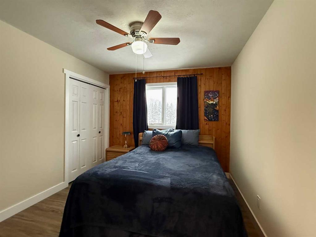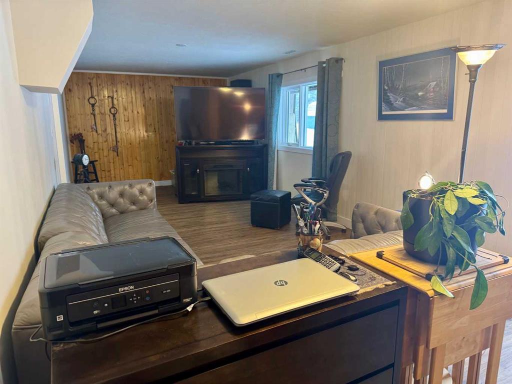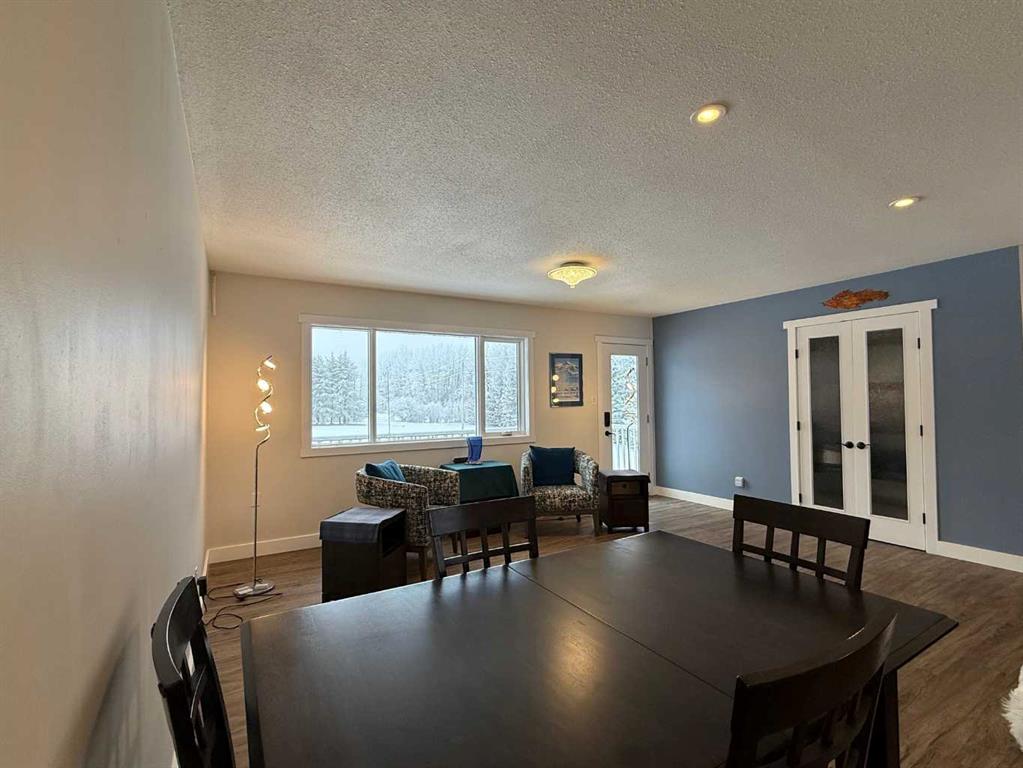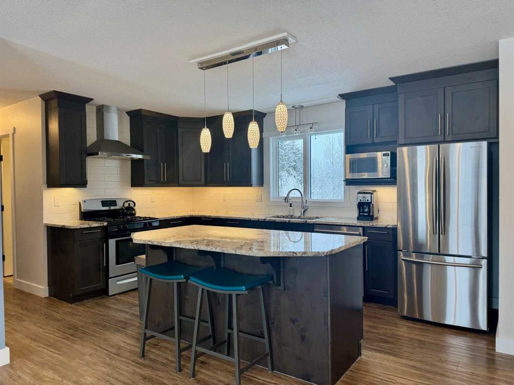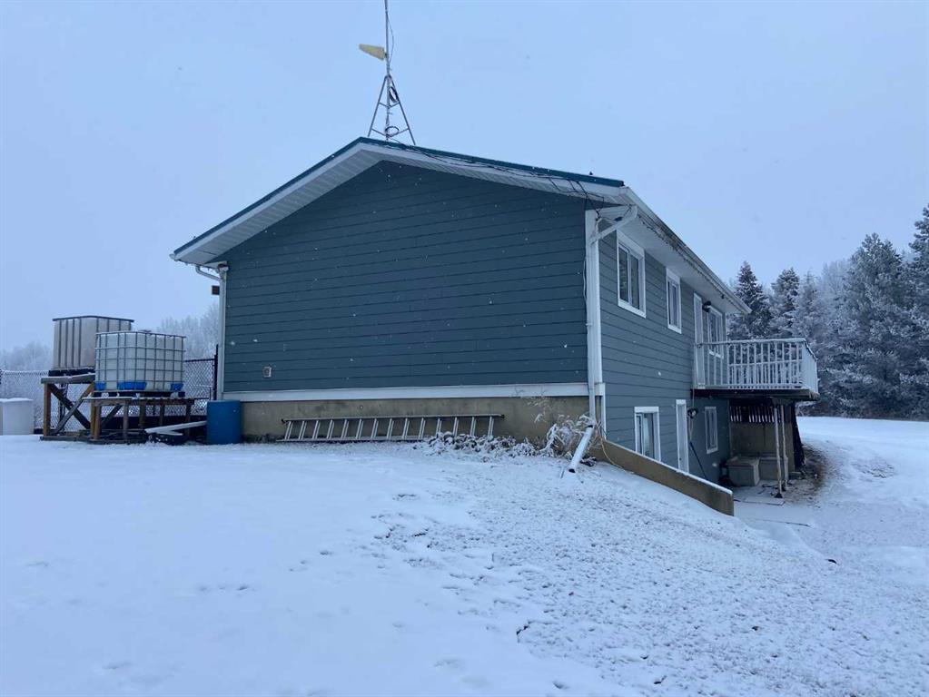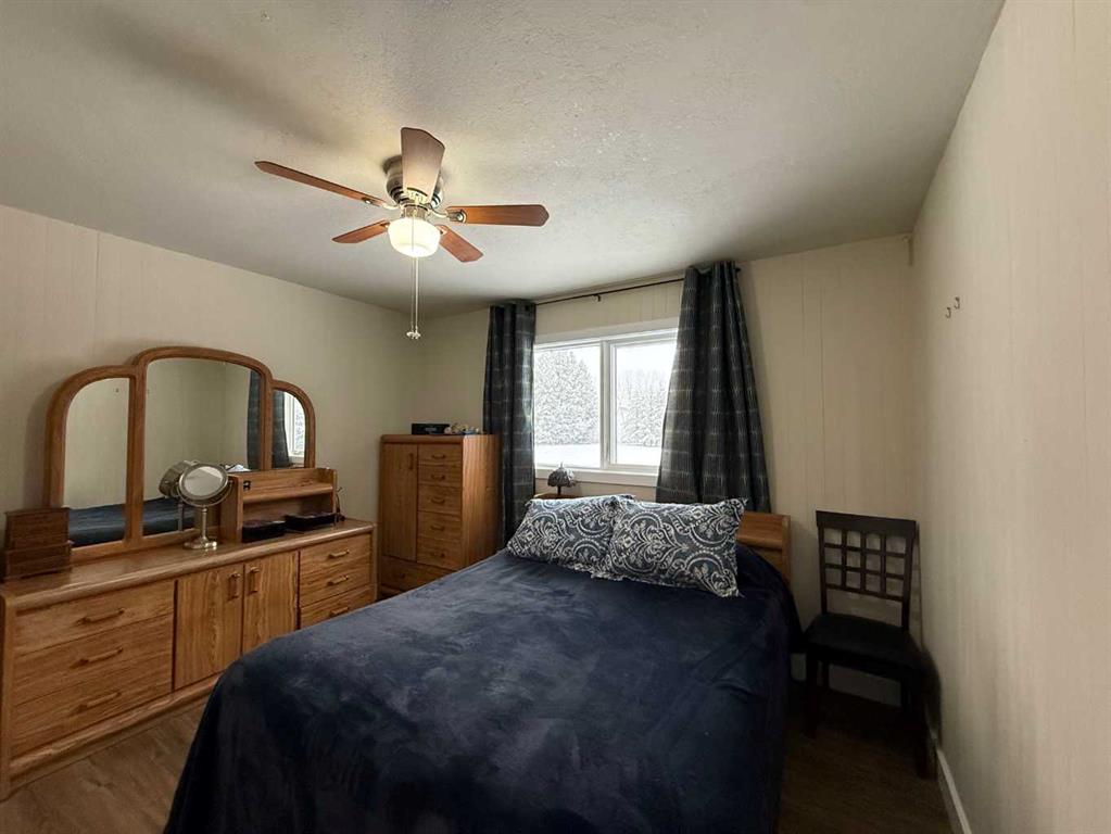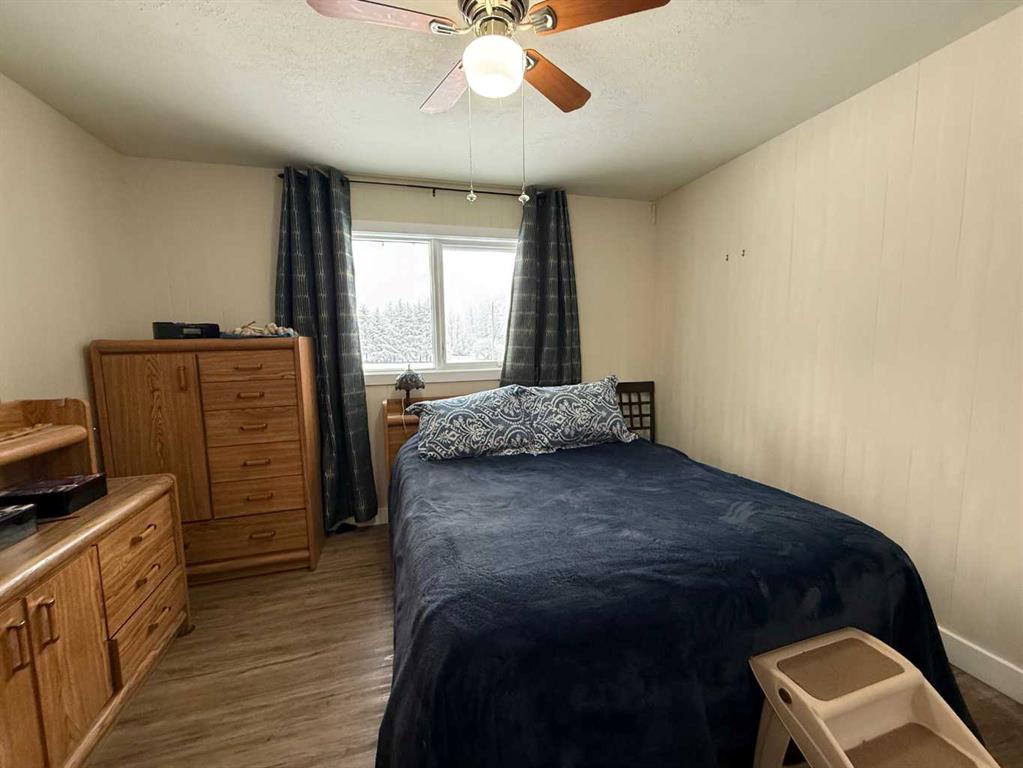 Beautifully maintained home on 4.7 acres with a fully finished walk-out basement. Renovated main level features an open layout, updated kitchen with custom soft-close cabinets, granite counters, modern lighting, and luxury vinyl plank flooring. Three bedrooms and a full bathroom on the main floor. The walk-out basement adds a family room, fourth bedroom, second bathroom, and extensive custom storage as well as a cold storage room. This home is move-in ready. Low-maintenance exterior with metal roof, cement board siding, and hardwired LED color-changing lights. Furnace and on-demand hot water replaced in 2019. Detached 26' x 24' garage with power and concrete floor. Fenced backyard with raised garden beds, plus a cleared area overlooking a creek—ideal for a future fire pit. Quad directly from the property into crown land. Two wells on site; main bath wired for bidet/heated seat. Move-in ready acreage with modern updates and excellent outdoor access.