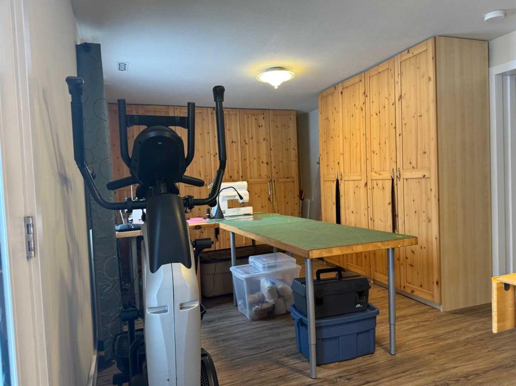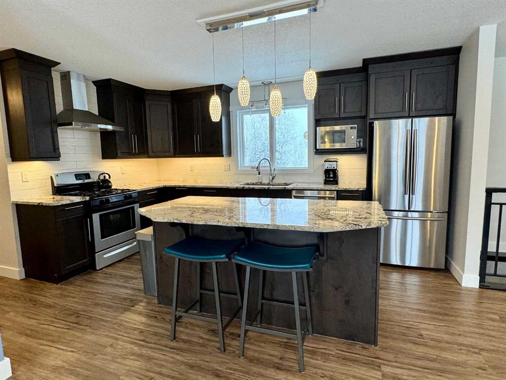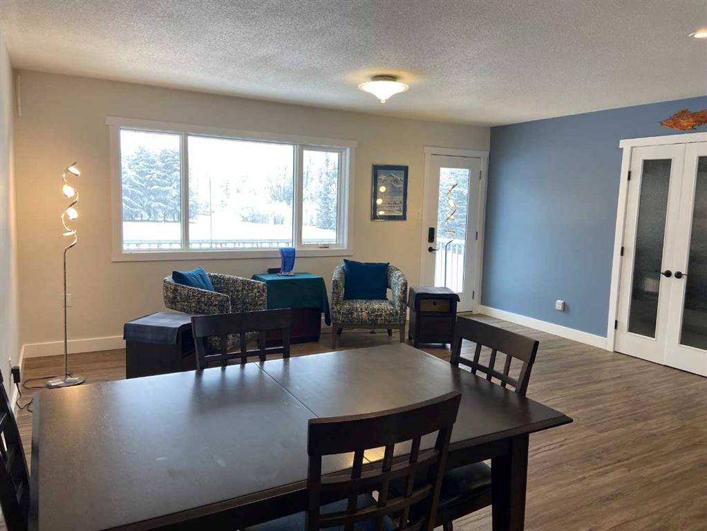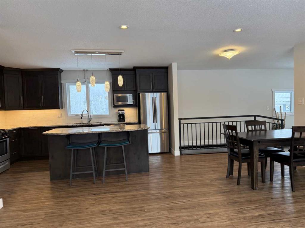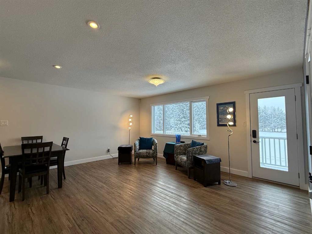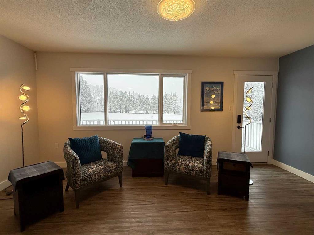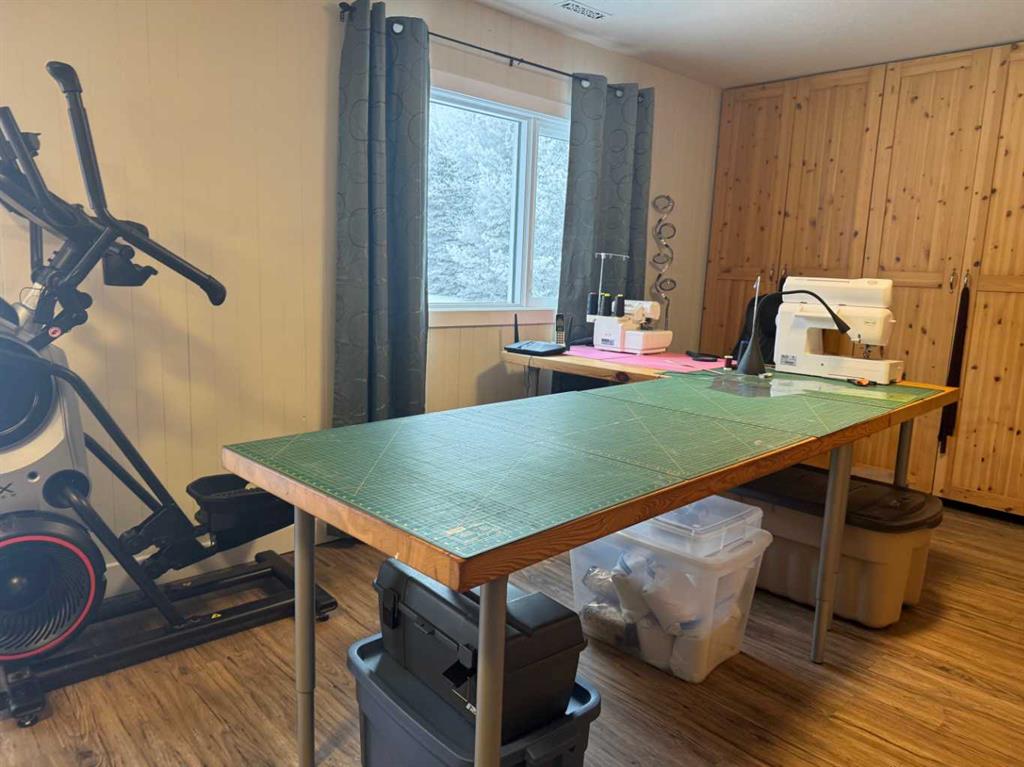 Beautifully maintained home on 4.7 acres with a fully finished walk-out basement. Renovated main level features an open layout, updated kitchen with custom soft-close cabinets, granite counters, modern lighting, and luxury vinyl plank flooring. Three bedrooms and a full bathroom on the main floor. The walk-out basement adds a family room, fourth bedroom, second bathroom, and extensive custom storage as well as a cold storage room. This home is move-in ready. Low-maintenance exterior with metal roof, cement board siding, and hardwired LED color-changing lights. Furnace and on-demand hot water replaced in 2019. Detached 26' x 24' garage with power and concrete floor. Fenced backyard with raised garden beds, plus a cleared area overlooking a creek—ideal for a future fire pit. Quad directly from the property into crown land. Two wells on site; main bath wired for bidet/heated seat. Move-in ready acreage with modern updates and excellent outdoor access.