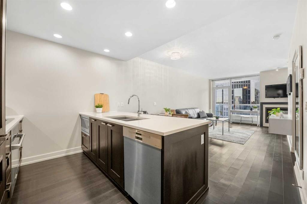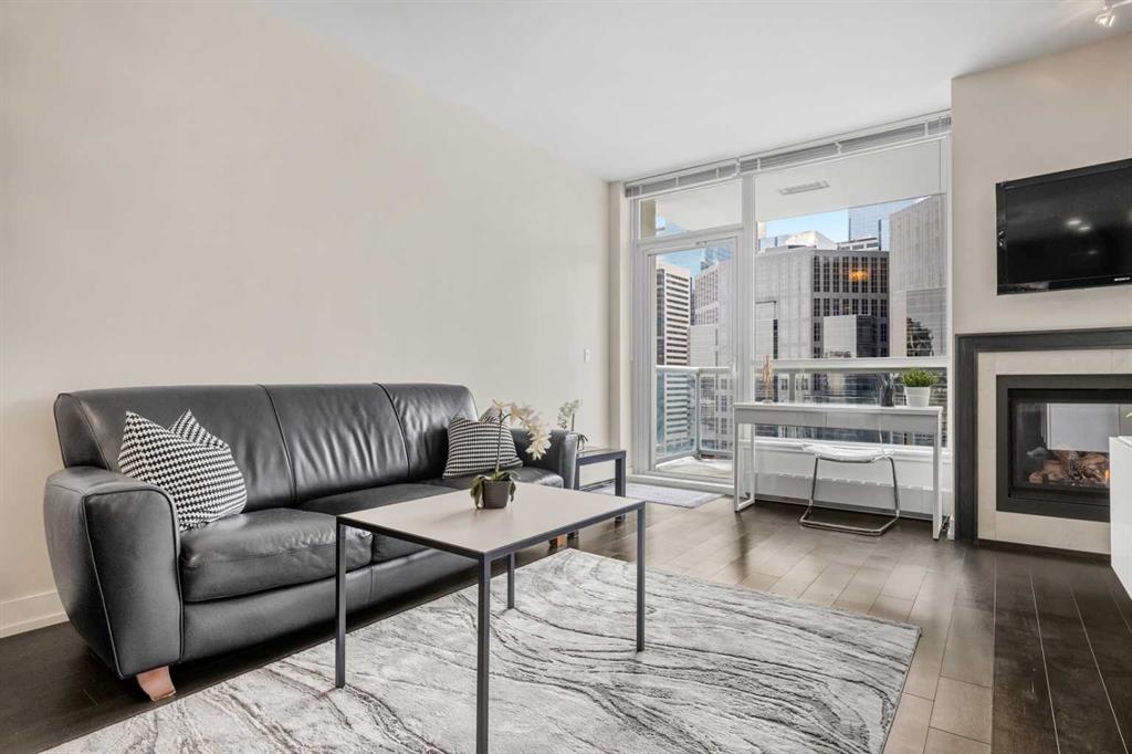 Welcome to Waterfront Condos, Calgary’s premier luxury address where riverfront serenity meets urban sophistication—just steps from PRINCESS ISLAND PARK. This FULLY FURNISHED 1-bedroom + den residence blends upscale living with unbeatable convenience, making it ideal as a prestigious downtown home or a high-performing RENTAL investment. Enjoy mesmerizing Bow River views, glittering skyline scenery, and unmatched walkability to the city’s finest restaurants, cafés, entertainment, office towers, and cultural destinations. Inside, the open-concept design is anchored by quiet concrete construction and elevated by refined, modern finishes. The gourmet kitchen impresses with a Sub-Zero fridge with dual freezer, Electrolux gas cooktop, new dishwasher, built-in microwave, and sleek granite counters—perfect for cooking or entertaining. Floor-to-ceiling windows bathe the living space in natural light and open onto a generous 140 sq. ft. balcony, creating a private outdoor retreat for morning coffee or evening cocktails. The versatile den serves as an ideal work-from-home office, enhanced by the warmth and ambience of a gas fireplace. The spacious primary bedroom features a walk-through closet and a spa-inspired ensuite complete with a deep soaker tub, offering a calming escape at the end of the day. Residents of Waterfront enjoy access to over 6,000 sq. ft. of state-of-the-art amenities, including a fully equipped fitness centre, yoga studio, hot tub and sauna, private cinema, owner’s lounge, concierge, and secure heated underground parking. A large 5' x 10' storage locker and dedicated parking stall add exceptional convenience. Perfectly positioned along the river pathways and steps from Prince’s Island Park, Stephen Avenue’s boutique dining, grocery stores, and the C-Train, this location offers everything you love about Calgary living—right at your doorstep. Discover the perfect combination of luxury, lifestyle, and investment potential at Waterfront