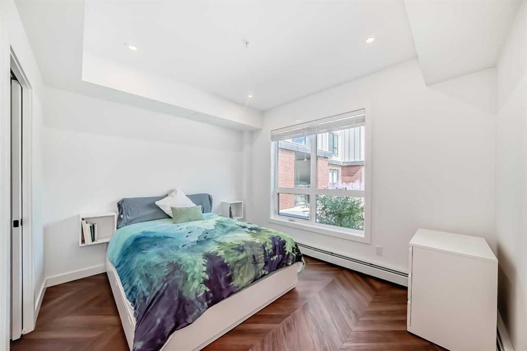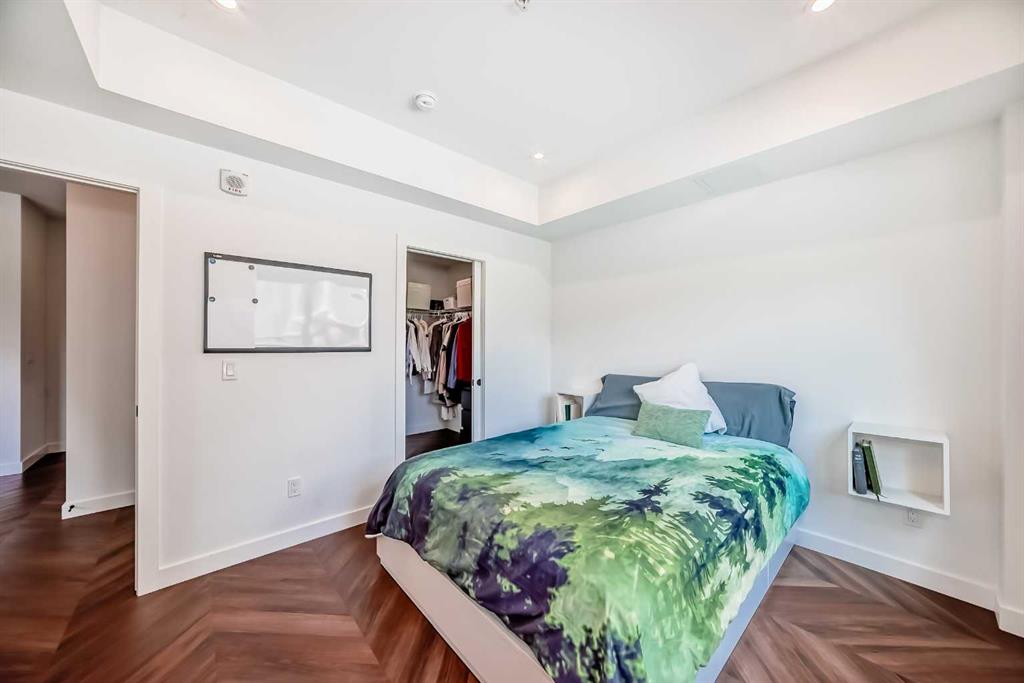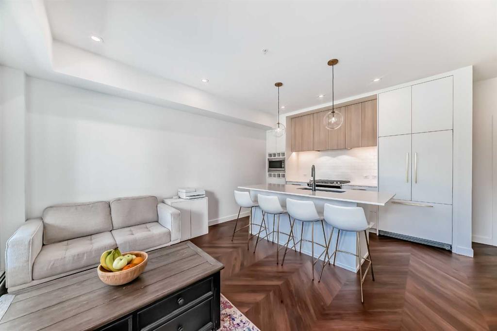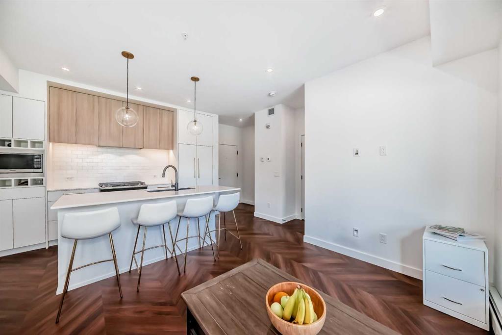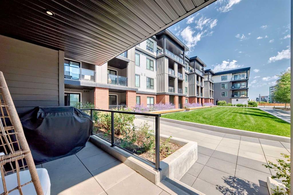 Welcome to the "Esquire" in Calgary’s vibrant University District, just steps from U of C, Market Mall, Foothills Hospital, and C-Train access. This stylish "like new" one-bedroom condo offers both modern finishes and unbeatable convenience, perfect for students, professionals, or downsizers alike. Inside, you’ll find a bright open layout with a pearl-white palette, Quartz counters, soft-close cabinetry, luxury vinyl plank flooring, and in-suite laundry. The kitchen is thoughtfully designed with a roomy island, upgraded appliances including a gas stove, garburator, Silgranit sink, and elegant fixtures. The primary bedroom includes a walk-in closet, while the living room opens directly onto your private patio—complete with a gas BBQ hookup. Being on the main floor makes it ideal for pet owners, offering both comfort and easy outdoor access. As an end unit, you’ll enjoy extra privacy and a quiet setting, enhancing the home’s peaceful feel. The Esquire also includes a wealth of amenities: heated underground parking, storage locker, bike storage, fitness center, pet spa, and even a bike workshop. This is a fantastic opportunity to live in one of Calgary’s most sought-after, walkable communities with shopping, dining, parks, and pathways right at your doorstep.