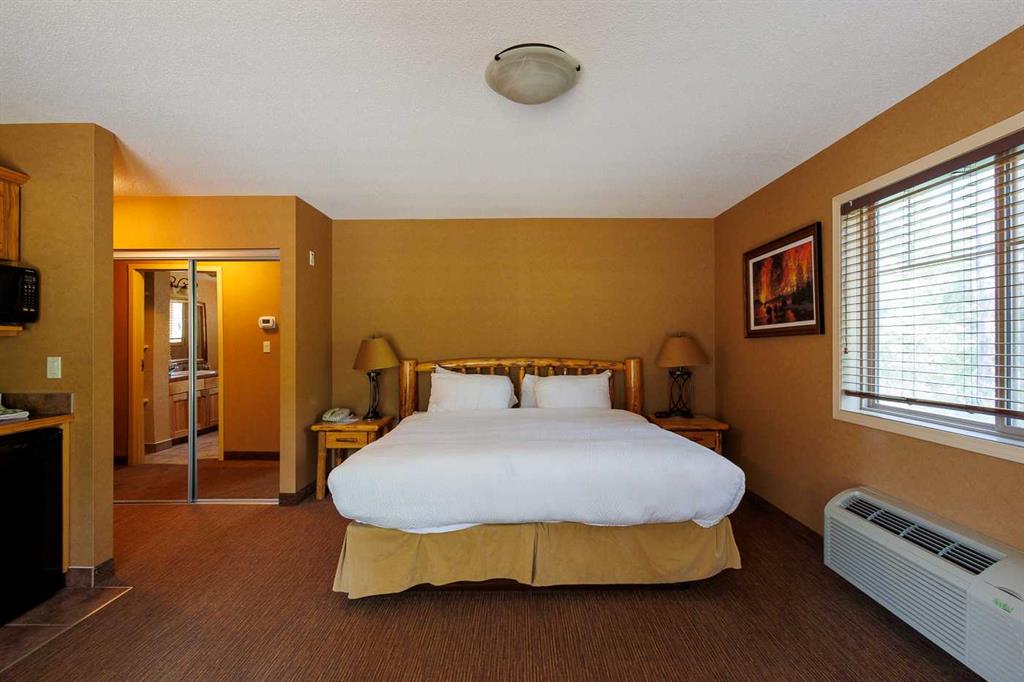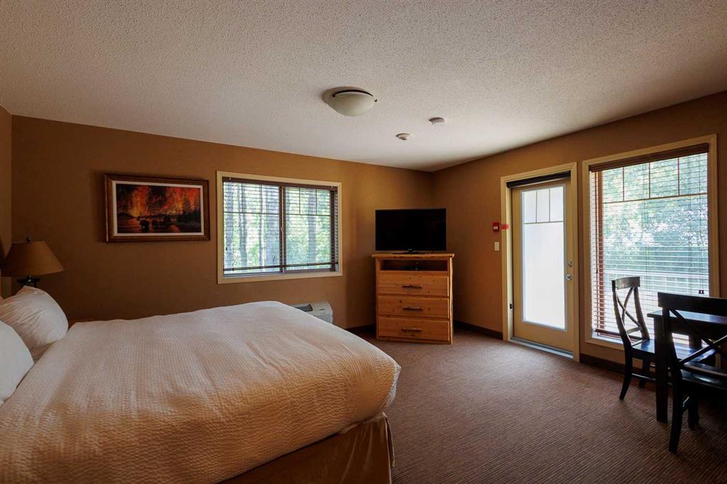 MOTIVATED SELLERS!!! Nestled quietly in the beautiful Cypress Hills, Elkwater is a year-round recreational garden of delights. Only a 40-minute drive from Medicine Hat, this flourishing resort oasis offers an abundance of vacation activities: boating, water skiing, fishing, biking, golf and hiking in the summer; skating, downhill and x-country skiing in the winter. This impressive 1,122 sq.ft. 2 bedroom / 2 bath condo is located in Elkwater Lake Lodge, which offers a delightful restaurant, pool, hot tub, fire pit and room service. The main unit boasts the popular open floor plan, which is awash in natural light flooding in from the numerous windows. A fully stocked kitchen offers an abundance of cupboards, an upgraded double sink and high-end faucet, and the 2-seat island and countertops have been re-done in granite. A separate dining area abuts a spacious living room, which comfortably sits 6 people and features a river stone gas fireplace. A generous wraparound deck (with gas hookup) is accessed via the living room and affords a quiet, relaxing retreat to "chill out" and take in the wooded views. A large bedroom and a 4-piece bathroom with a soaker tub completes the main unit. The adjoining studio suite, which also has a separate entrance, offers a spacious bedroom (kingsize bed) with access to a private deck, along with a coffee bar, mini-fridge, microwave and sink, and a 3-piece bath. This ideally located condo is only a short walk to the downtown marina, sandy beach, lake, restaurant and popular cafe. Priced ridiculously below assessed value, this is a solid investment opportunity for a single family or even as a group venture. Furthermore, this Phase 1 condo is part of a revenue generating rental pool. Owner is allowed 120 days usage throughout the year with the remaining time available in the rental pool. THE OWNER RECOUPS 60% OF ANY RENTAL REVENUE, WHICH BASICALLY PAYS THE MONTHLY CONDO FEES AND ELECTRIC BILL. It comes with all the appliances and is fully furnished. This "must see" property is an all-season getaway at a very affordable price!