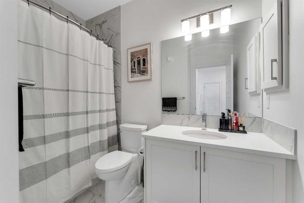 Welcome to this beautifully upgraded 2-storey home, built in 2024, nestled in the scenic and sought-after community of Precedence — offering breathtaking mountain views and exceptional design throughout. Step inside to discover an expansive foyer that opens into a thoughtfully designed, open-concept main floor featuring 9’ ceilings, engineered hardwood flooring, and brand-new tile. A main floor bedroom and full bathroom provide added convenience, perfect for guests, parents, or multigenerational living. The chef-inspired kitchen is a true showstopper, complete with quartz countertops, a large island with breakfast bar, gas range with range hood, built-in microwave, and a walk-through pantry offering ample storage and ease of access. Adjacent to the kitchen is a bright and spacious living room highlighted by a sleek electric fireplace and stunning mountain views. The dining area is perfectly positioned beside the living room, with patio doors leading out to the rear deck, ideal for entertaining or simply enjoying the natural surroundings. Upstairs, you'll find a cozy bonus room, a full 4-piece bathroom, and three generously sized bedrooms, including the impressive primary suite. This serene retreat features large windows showcasing panoramic views, a luxurious 5-piece ensuite with double sinks, a standalone soaking tub, a tiled glass-enclosed shower, and a walk-in closet with custom built-in shelving. The unfinished walk-out basement offers limitless potential for future development tailored to your needs. Enjoy access to picturesque walking trails, a nearby dog park along the Bow River, and you're just minutes from the Spray Lakes Recreation Centre, making it an ideal location for active families of all ages. Surrounded by nature and amenities, this home blends luxury, comfort, and functionality in one perfect package.