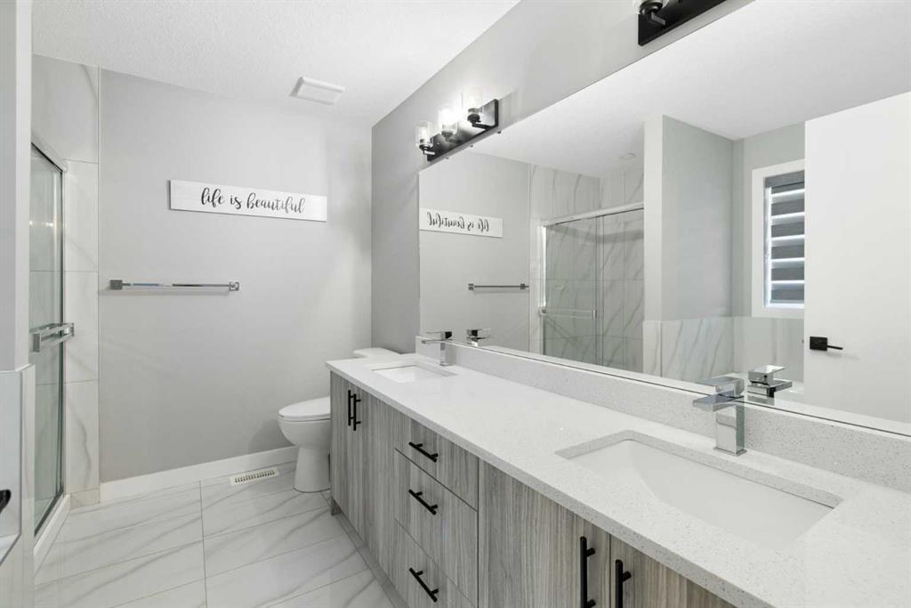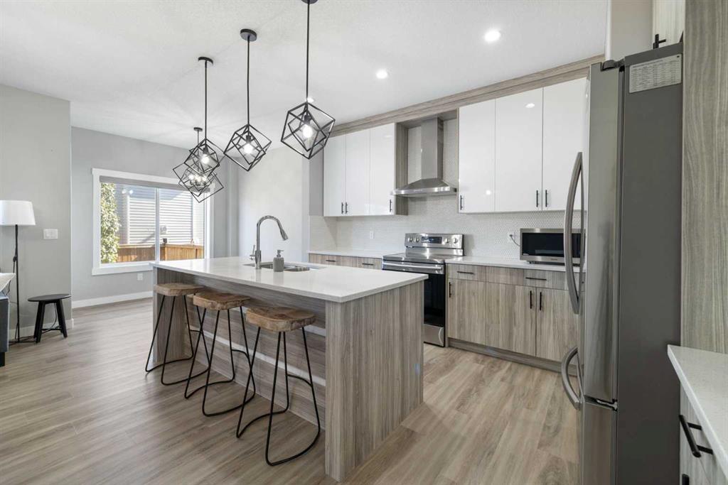 Experience elevated living in this stunning, well maintained former show home by Sunview Custom Homes. Located just steps from George Freeman K-9 School, this home combines modern design, exceptional craftsmanship, and everyday functionality. From the moment you enter, you’re welcomed by high ceilings, bright natural light, and modern high end finishes that set the tone for the entire home. The open-concept main floor features a chef-inspired kitchen with two-toned European cabinetry, white quartz countertops, high-end stainless steel appliances, and a large central island that’s perfect for entertaining or family gatherings. The adjoining living and dining spaces are accented by a cozy gas fireplace, 9’ ceilings, and oversized windows with premium coverings. Step outside to enjoy the back deck, ideal for year-round BBQs and relaxing evenings. A walk-through pantry, powder room, also with quartz countertops, and luxury vinyl plank flooring complete the stylish and functional main level. Upstairs offers three spacious bedrooms, including a primary suite with a walk-in closet, 5-piece ensuite with jetted tub. A bright bonus room adds the perfect space for family movie nights or quiet reading, while upstairs laundry keeps things convenient. The basement is ready for your ideas already framed for two additional bedrooms or office space and featuring 9’ ceilings and a separate entrance, offering potential for future development (secondary suite subject to municipal approval and permitting). This home blends luxury, comfort, and practicality - truly the perfect place for you to LOVE WHERE YOU LIVE! Please note: Pre-sale home inspection done, report available on request.