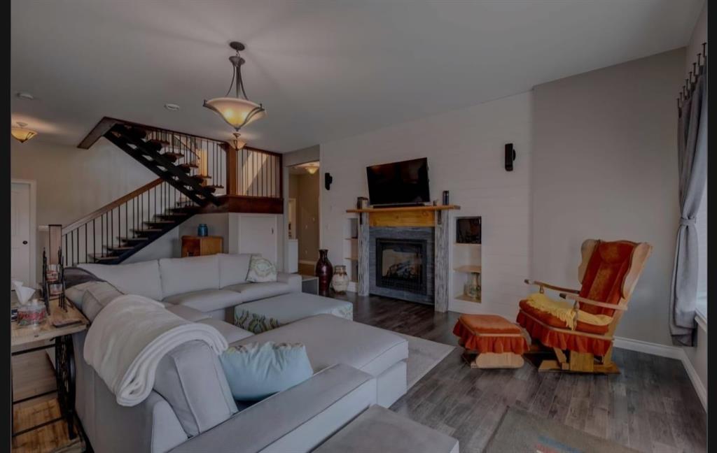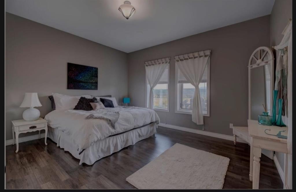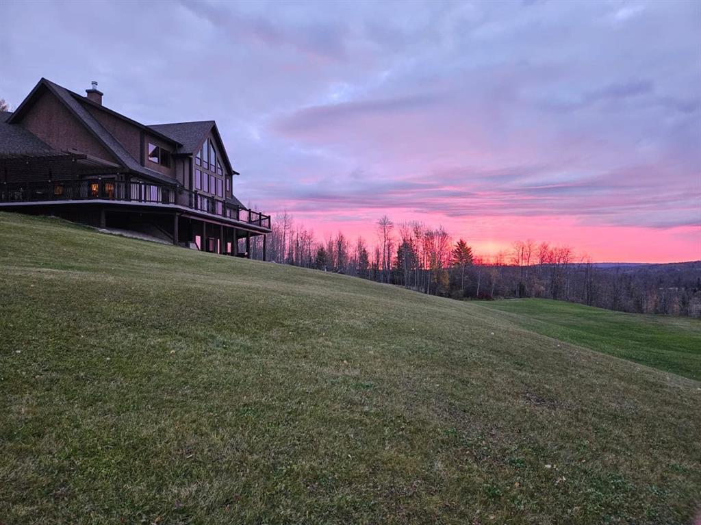 Absolutely breathtaking executive style home with outstanding panoramic peaceful country views only 5 minutes from town. This gorgeous meticulously custom built home is situated on a stunning fully landscaped acreage. Over 6000 sq feet of fully finished living space and an attached triple car heated garage with 8' overhead doors. As you walk in the center piece staircase and fireplace will take your breath away and are second to none. Pick any of the triple pane tinted anti glare windows (all replaced in 2022) and the views are amazing. The home is fully developed on all levels and has a walkout basement .The main level features a chefs dream kitchen with double ovens with additional warming oven, 2 islands with bar seating, custom crafted alder cabinets, superior appliances ( wolf,subzero & Dacor) . Laundry, 2 bedrooms and 2 bathrooms are also on this level. Massive vaulted ceilings are seen throughout this open concept home. The upper level features the massive primary suite also boasting vaulted ceilings a private fireplace with a luxurious spa like 5 piece ensuite complete with in floor heating, dual sinks, deep jetted tub, double walk in shower, marble tile and the walk in closet is a complete dream with many custom built ins and seating. Upper level features also include a massive recreational room perfect for a gym/home office/ or games room. There is also a relaxation area with a cozy fireplace. The basement has another kitchen, bedroom, laundry and 3 piece bathroom making this perfect for guests or a nanny suite. Huge common area compliments a fully custom built wet bar with an extra cold room for storage. Walkout to an additional covered concrete patio boasting a hot tub with breathtaking views. So to recap here we have 4 bedrooms, 4 bathrooms, 2 kitchens, 2 laundry, 5 fireplaces, air conditioning, infloor heating, alarm systems, numerous appliances, an unbelievable view on a beautifully set acreage close to town on pavement with town water in a masterfully crafted executive home. This home has so many upgraded features it is a must to see to truly appreciate all this property has to offer.