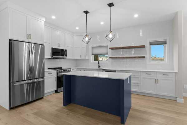 NO CONDO FEES. Located in the vibrant community of Sylvan Lake, this centrally located 2023-1864 square foot built townhouse offers the perfect blend of modern style, space, and convenience. This high-end home features 5 bedrooms in total—3 on the second level, including a spacious primary bedroom with a luxury 4-piece ensuite, plus an additional 4-piece bathroom. The second level also includes a conveniently located laundry right alongside the bedrooms. Beautiful neutral paint tones, an abundance of large windows, and durable vinyl plank flooring create a bright, inviting atmosphere throughout the home. The open-concept main level showcases a bright white kitchen with a walk-in pantry, large island, and adjoining living room, along with a mudroom and a 2-piece bath. Off the kitchen, enjoy access to a back deck overlooking the fully fenced yard. The fully developed basement offers 2 additional bedrooms, a large family room, and another 4-piece bathroom. Just minutes from shopping, schools, the NexSource Centre, the community centre, and only three blocks from beautiful Sylvan Lake, this home delivers exceptional comfort in a great location.