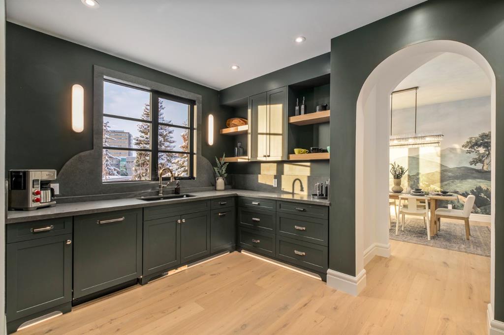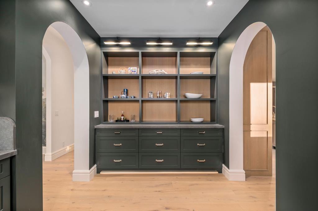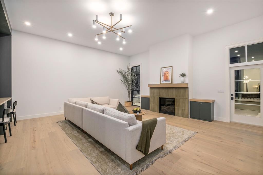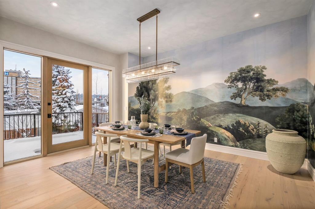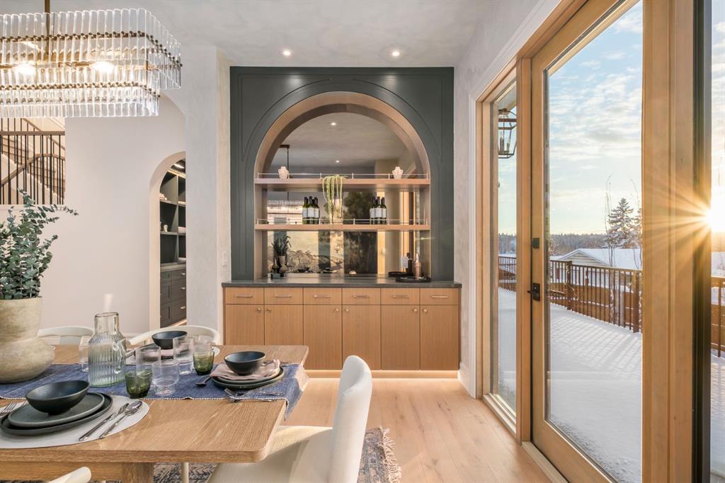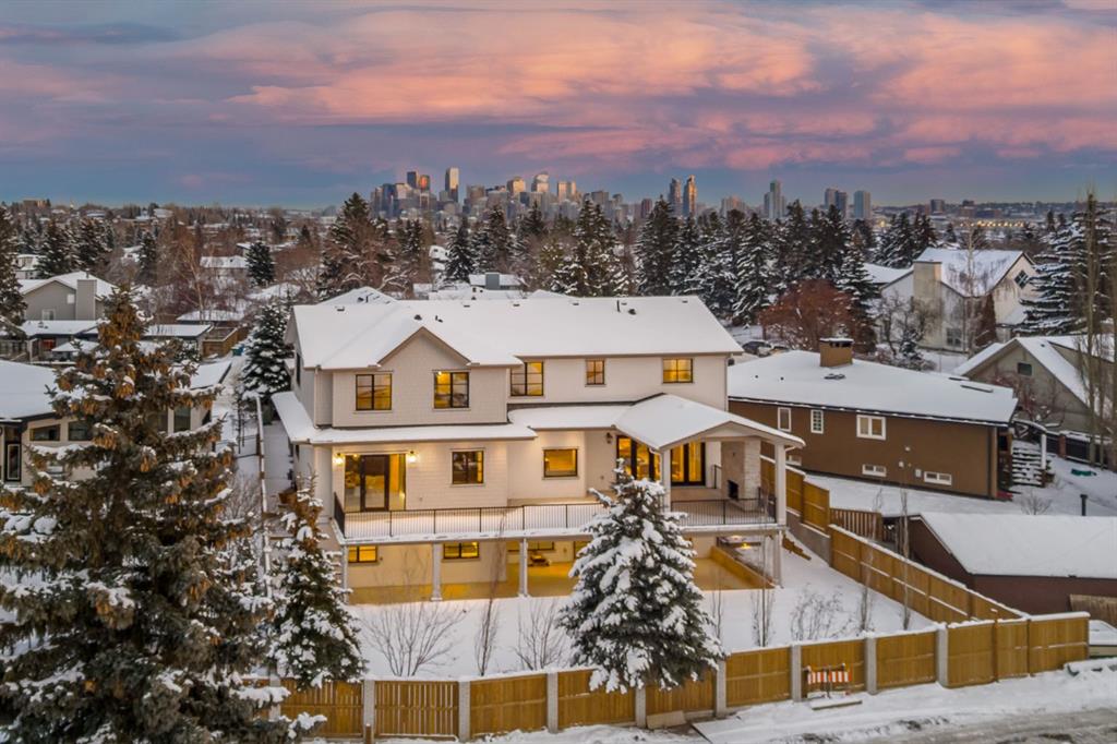 Welcome to this exceptional custom residence on prestigious Toronto Crescent in highly sought-after St. Andrews Heights. Perfectly positioned on an expansive 9,000 sq. ft. lot, this meticulously designed home offers over 6,000 sq. ft. of developed luxury living, crafted by Maxime Chin Designs with uncompromising detail and style. This remarkable property features an 80’ wide backyard, walkout basement, 63’ full-width balcony, attached triple garage, 5 bedrooms, 5.5 bathrooms, 4 gas fireplaces, bonus room with balcony, butler’s pantry, dedicated office, home gym, Sub-Zero/Wolf appliance package, designer lighting, and so much more. Enter through the grand foyer and be welcomed by soaring 10’ ceilings and expansive sight-lines. To the side, the inviting living room showcases beautiful built-ins and an oversized gas fireplace. LUX accordion doors open seamlessly to the massive covered balcony—complete with an outdoor fireplace—creating an exceptional indoor/outdoor living experience. The stunning kitchen features custom oak cabinetry, exquisite quartz surfaces, a 48” Wolf gas range, Sub-Zero refrigerator, and a spacious butler’s pantry with sink, dishwasher, and convenient shelving. The formal dining room is wrapped in bespoke wallpaper that extends to the limewash ceiling and includes a stunning bar area with direct access to the balcony. A private office, stylish powder room, and a well-appointed mudroom with built-in lockers complete the main floor. The luxurious primary suite features a beautiful arched window offering a glimpse of the downtown Calgary skyline. The spa-inspired 5-piece ensuite includes a freestanding reeded tub, large walk-in steam shower, marble backsplash & dual vanity. Also a spacious walk-in closet outfitted with custom built cabinetry rounds out the suite. The builder has left the primary room as a blank canvas and will work with the new homeowners to create a custom oasis. Three additional bedrooms (two with ensuites), a full main bath, and a laundry room with two sets of washers and dryers offer convenience and comfort. A spectacular bonus room crowns the upper level with 12’ ceilings, a gas fireplace, private balcony, built-in bar, and a dedicated homework station. The basement level is bright and open thanks to the large windows due to the walkout design, the lower level features a spacious rec room with gas fireplace, full bar, gym, 5th bedroom, and a serene 4-piece bath. Outside you will find the extraordinary 80’ wide backyard providing exceptional usable space, complete with a ground-level, covered patio and endless opportunities for outdoor enjoyment. This home must be seen in person to truly appreciate the craftsmanship, thoughtful design, and rare combination of luxury and location.