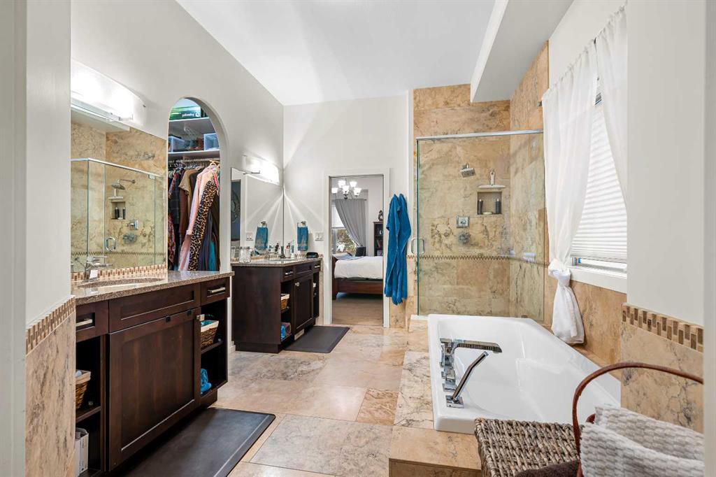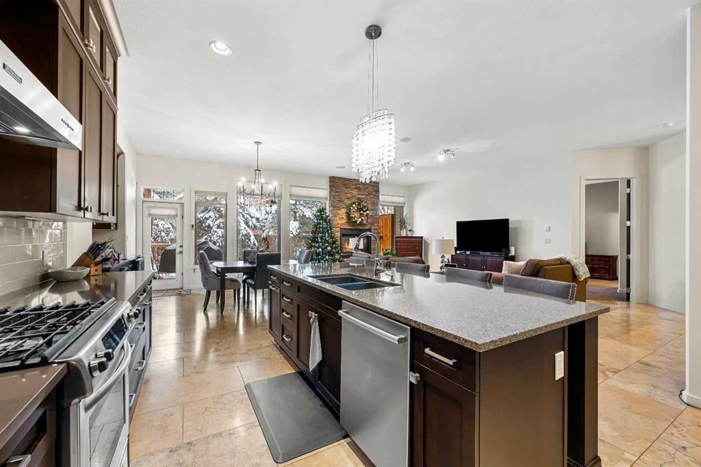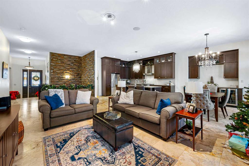 This is the one you have been waiting for.... A home so nice and so immaculate that you will immediately fall in love!! This 1853 square foot bungalow is a showstopper- So many features and so much space for you and your family to stretch your legs and live comfortably, and in luxury, in this executive bungalow with triple attached garage. The features in this home are long and impressive, starting with your initial view upon walking through the front door, with sight lines to an impressive main floor fireplace with rock accents. You will love the huge space in the entry and the 10' ceilings on the main floor... very impressive!! Add to this, decorative cultured stone (slate) feature wall in the open stairway leading to the basement, Custom kitchen cabinets (quartz counter tops) that extend to the ceiling with dove tail drawers and wet bar area that compliments and ties in the dining room area, providing a perfect area for entertaining. You will love the travertine tile flooring throughout the kitchen/dining/living area and entry of the home as well as the upgraded carpet in the bedrooms and basement- so much quality you don't normally see in every home. Additional features include: main floor laundry/mud room off the rear garage entrance, dual sinks in a very large Primary bedroom bathroom with perimeter walls framed with travertine tile matching the shower and flooring, the chef in your family will enjoy the gas stove, you will love the look of the wrought iron railing which leads to the basement, the 9' ceilings in the basement, the 11' by 28' covered deck which overlooks the meticulously and professionally landscaped back yard.... This home is so inviting and welcoming and you will love it the moment you walk through the front door.