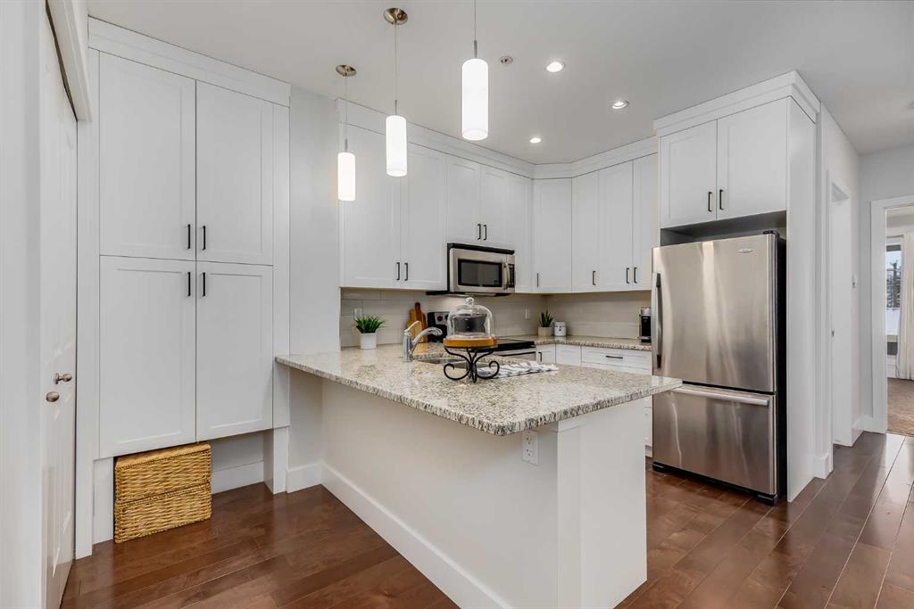 Located on the third floor, this one bedroom, one bathroom condo delivers a warm, inviting layout in a prime Montgomery location. The interior has been freshly painted and features rich hardwood flooring, nine-foot ceilings, and large windows that bring in plenty of natural light. The renovated kitchen is a highlight, featuring full-height white cabinetry, granite countertops, stainless steel appliances, and generous storage and counterspace. It flows effortlessly into a dining area and a bright living room that opens onto a covered balcony with a BBQ gas line. The spacious bedroom offers a relaxing sanctuary, and the four-piece bathroom includes a convenient tub and shower combination. A full-sized stacked washer and dryer sit conveniently within the unit, along with a separate storage room. In-floor heating adds comfort. A titled, heated underground parking stall provides secure, year-round convenience, and the building includes a bike storage room. The building is pet friendly, and monthly condo fees cover heat, water and sewer. Montgomery is one of Calgary’s most historic and well-connected communities, known for its character, walkability, and access to amenities. This home is steps from local favourites including NOtaBLE, along with a wide selection of shops, services, and the Calgary Farmer’s Market West. Outdoor recreation is close at hand with the Bow River pathways, Shouldice Park, Edworthy Park, playgrounds, and the Shouldice Aquatic Centre all minutes away. Families will appreciate the walkability to Terrace Road Elementary School, while commuters benefit from quick access to 16th Avenue, major routes, and public transit. The location is ideal for anyone who values convenience, with Winsport, the Foothills and Alberta Children’s Hospitals, the University of Calgary, SAIT, Market Mall, and the University District all only minutes away. Downtown is a short ten minute drive, making daily travel easy. Whether you’re looking for recreation, dining, or services, everything is close by. Take advantage of your opportunity to see this incredible property in person, book your showing today! Be sure to check out the floor plans and 3D tour for a closer look before your visit.