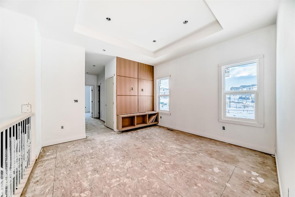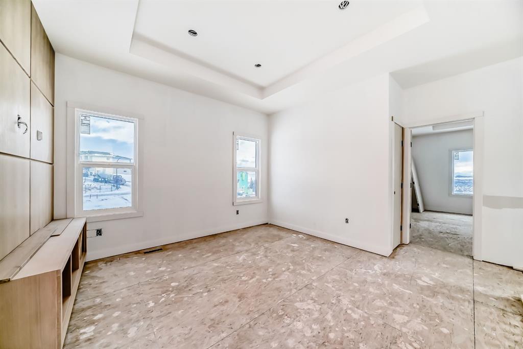 Step into the bright and welcoming entryway of 116 Heritage Manor, with the main floor showcasing a spacious open concept kitchen featuring quartz countertops, a large island, upgraded appliances, and custom cabinetry, all under 9’ ceilings. The dining, and living area feature an electric fireplace with a beautiful feature wall. Large windows flood the space with natural light, and a door off the dining area leads to the rear deck, don’t forget to take in those incredible mountain views. A stylish mudroom with built in storage off the garage and a convenient 2 piece bathroom complete this main level. Upstairs, you’ll find a gorgeous bonus room with tray ceilings, a spacious primary suite with stunning ensuite offering a dual vanity, tiled shower, and walk-in closet—plus more of those mountain views. The laundry room is conveniently located on this upper level, family bathroom and two additional bedrooms sitting at the front of the home, enjoying mountain views from the front of the home as well. The WALKOUT basement is a blank canvas for you to finish or enjoy as is, with bathroom rough in conveniently tucked away and access to your backyard. Don’t miss your chance to make this remarkable property your new home! Easily head West to the mountains and East to Calgary, this home is located close to schools and education facilities, and a wide variety of amenities. Just a short drive and you can enjoy the many restaurants, green spaces and river walking paths. This home combines modern updates with classic charm in a coveted neighborhood. Don’t miss your chance to make this remarkable property your new home, book your showing today!
