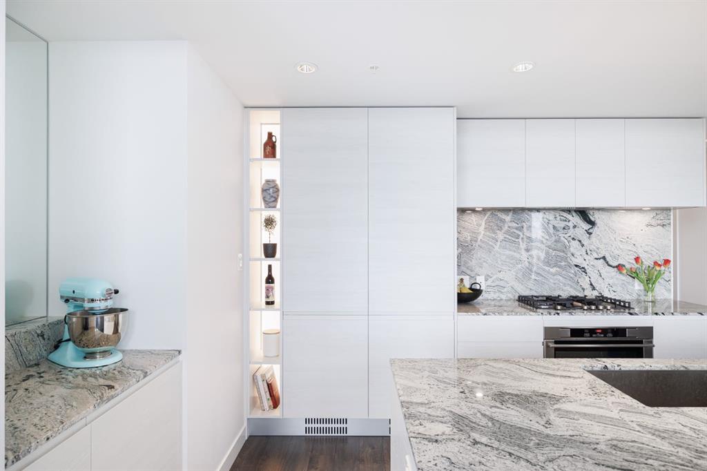 Step into this stunning 16th-floor corner end unit, boasting ONE TITLED UNDERGROUND PARKING STALL and breathtaking panoramic views! This condo offers unobstructed vistas of the city skyline, the majestic mountains, and Memorial Park. Natural light floods the space through expansive floor-to-ceiling windows, enhanced by soaring 9-foot ceilings. A showcase of modern elegance, the home features upscale finishes including granite countertops, a spacious center island, air conditioning, and high-end integrated appliances. The open-concept layout seamlessly connects the living and kitchen areas into a sleek, functional space perfect for working, dining, or relaxing. The primary bedroom is a private retreat with views overlooking Memorial Park and direct access to a walk-through closet and a luxurious 5-piece ensuite. Pamper yourself with a double vanity topped with marble counters, a glass-enclosed shower, and a deep soaking tub. The bright home office is flooded with natural light, while the second bedroom captures sweeping views of the distant Rockies. Extend your living space outdoors on the balcony—perfect for summer barbecues or simply soaking up the sun. Additional features include one heated underground parking stall, an assigned storage locker, and access to a car wash station in the secure parkade. Park Point isn’t just a place to live—it’s a lifestyle. Enjoy premium amenities including a beautifully appointed owner's lounge with kitchen and fireplace, a guest suite, 24-hour concierge, on-site security, and secure bike storage with a wash station. Outdoor spaces include a Zen terrace and garden, BBQ area, and a cozy fire pit. Wellness-focused residents will appreciate the fully equipped gym, yoga studio, sauna, and steam room. Located just steps from the Elbow River pathways, tennis and pickleball courts, and the lively restaurants and boutiques of 17th Avenue. You’re also minutes from the Calgary Public Library and the +15 skywalk system—offering year-round connectivity and urban convenience.