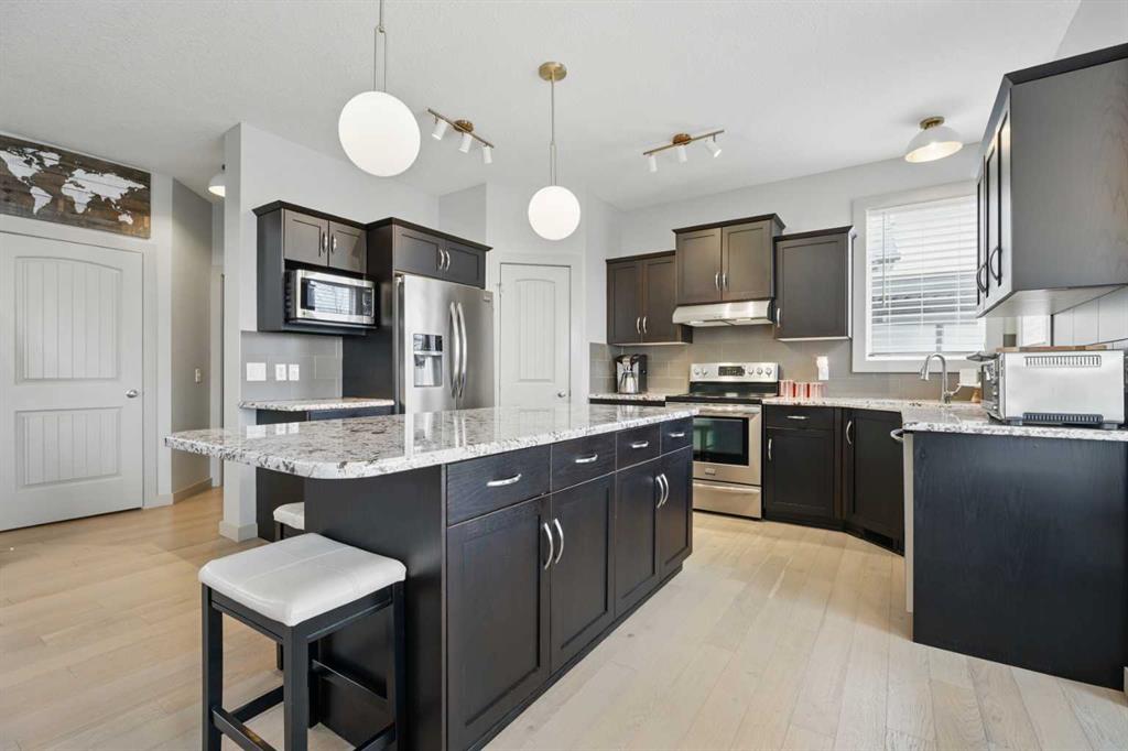 Located on a quiet cul-de-sac in the Crystal Shores community, this 2-storey family home with a walkout basement pairs a functional layout with elevated finishes and mountain views. The open concept main floor features a thoughtfully designed kitchen with granite countertops, rich dark cabinetry, a centre island with breakfast seating, and a corner pantry, all open to the dining nook and living room, where a gas fireplace serves as the focal point and keeps the entire main floor feeling warm and cozy. Off the dining nook, a large covered deck captures the mountain views and overlooks the south-facing backyard. Upstairs discover a bonus room that offers an additional lounge area ideal for older kids, as well as a full bath and 3 spacious bedrooms, including a primary suite with an ensuite that boasts a soaker tub and separate shower. All bedrooms are finished with custom closet organizers for streamlined storage. The walkout basement hosts an incredible footprint, with an expansive rec room that leads directly to the lower patio with an incredible hot tub and, beyond, the sunny south backyard, creating a strong indoor–outdoor connection. You will find a 4th bedroom and spacious utility/storage area to complete this floor. Additional highlights include central air conditioning, and a new furnace installed in 2024. Residents of Crystal Shores enjoy nearby Crystal Shores lake amenities, Crystal Ridge Golf Club, pathways, schools, and day-to-day services that contribute to the area’s desirable, relaxed lifestyle.