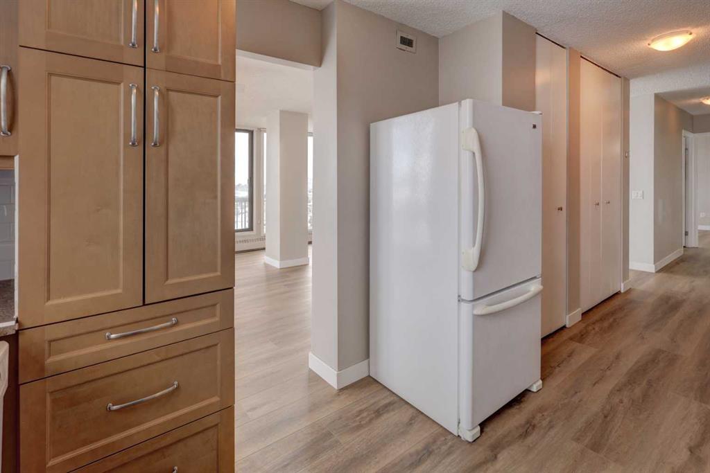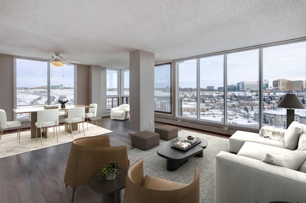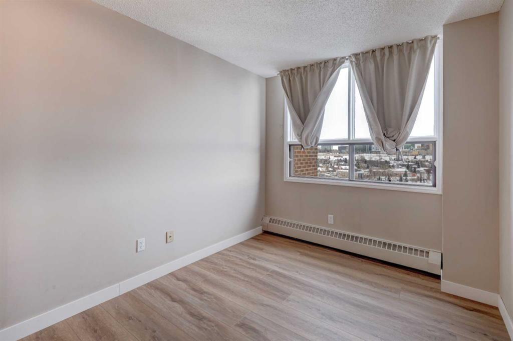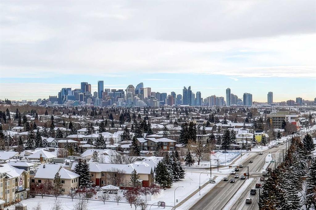 HOME SWEET HOME! Indulge in maintenance free ADULT CONDO LIVING in this updated 15th floor unit situated in the sought-after NW community of Point McKay offering BRAND NEW LUXURY VINYL PLANK FLOORING THROUGHOUT. This desirable, quiet building offers an exquisite unit with 2 bedrooms, 1.5 bathrooms and 1,013 SQFT of beautifully maintained living space with BREATHTAKING PANORAMIC VIEWS of Downtown Calgary, the Skyline and valley views. Heading inside you will fall in love with the spacious, open concept floor plan with wall to wall windows to bask in your pristine views throughout the condo. Features include a massive living room that is flooded in natural sunlight, formal dining area perfect for hosting guests, a spacious foyer and the chef’s kitchen fully equipped with white appliances, ample cabinet and counter space and a pantry. Also featured in the unit is a generous sized bedroom, full 3 piece bathroom and the massive, master retreat with a walk-in closet and large 2 piece ensuite bathroom. Updates include new cork flooring and upgrades in the kitchen. Completing the unit is a balcony to have a coffee while enjoying your dream views, in-suite laundry, an underground parking stall and assigned storage locker perfect for all your needs. The popular Riverside Towers includes exclusive amenities such as a media room, library, 24/7 concierge, onsite security, car wash, visitor parking, preferred pricing option with the Riverside Club and Spa. This location is perfect for home buyers, investors and downsizers looking to be steps from the tranquil Bow River and its numerous pathways and close to Foothills Hospital, Children’s Hospital, University of Calgary, University District and quick escape to Highway 1 and the mountains. Don’t miss out on this opportunity, book your private viewing today!