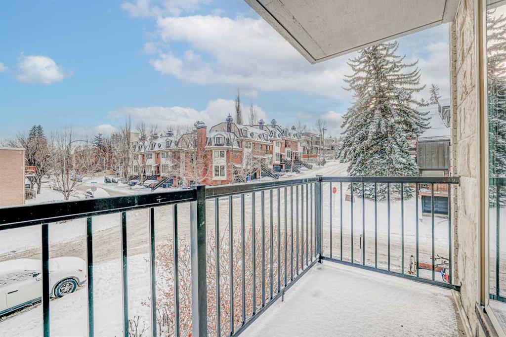 ****OPENHOUSE Sunday December 07,2025 2-4PM**** Beautifully updated and move-in ready, this stylish home in the James A Wolfe building pairs modern design with an exceptional Lower Mount Royal location. A $75,000 renovation a few years ago created a warm, contemporary interior where wide-plank flooring, designer lighting and a neutral colour palette establish a cohesive atmosphere. An open floor plan enhances daily living and entertaining, anchored by a chef’s kitchen appointed with granite countertops, upgraded Whirlpool appliances, full-height cabinetry and a generous centre island that encourages gathering and easy conversation. The adjacent living room offers space to relax, while a large patio slider opens to a covered balcony that extends the living area outdoors for summer barbeques, morning coffees and weekends unwinding with impressive downtown views. A spacious bedroom enjoys natural light and quiet comfort, matched by a stylish 4pc bathroom featuring modern finishes. Upgraded in-suite laundry with a Bosch washer and dryer adds additional convenience. Concrete building construction contributes to a peaceful environment along with the advantage of bike storage and the unit includes what may be the best extra-large end corner parking stall in the complex, offering ease and flexibility for larger vehicles. Reasonable condo fees support well-managed building operations. The setting places you steps from the energy of 17th Ave where boutique shops, cozy cafes, restaurants and pubs create a vibrant streetscape. Walk or bike to downtown, explore nearby pathways along the Bow River or reach MRU in minutes by car. This is an opportunity to enjoy a refined, urban lifestyle in one of Calgary’s most sought-after inner-city neighbourhoods!