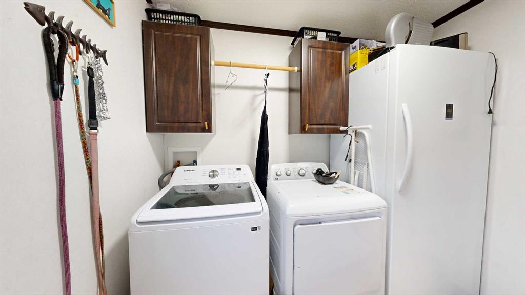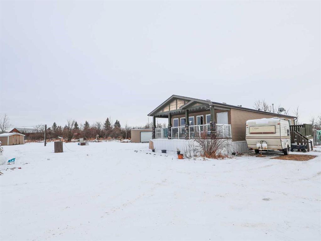 This charming home, located in the peaceful village of Gadsby, sits on a 0.64-acre lot that provides plenty of privacy and outdoor space to enjoy. The home offers a bright, spacious, and well-designed living environment suited for families, retirees, or anyone seeking a slower pace of life. There is a generous sized deck leading up to the main entrance, with space for all your deck furniture. Inside, the living room immediately impresses with a vaulted ceiling and windows across the front wall, creating an open and welcoming atmosphere filled with natural light. Adjacent to this is the dining area with direct access to another deck, making indoor–outdoor living effortless. The modern kitchen is both stylish and highly functional, featuring rich dark wood cabinetry, stainless steel appliances, a corner pantry, and a tiered peninsula with seating—perfect for casual meals or morning coffee. Pendant lighting above the counter adds warmth and visual appeal. The primary bedroom includes two closets and a spacious ensuite with double sinks and a round corner tub/shower. Two additional bedrooms offer flexibility for family, guests, or a home office, while the main bathroom with tub/shower serves the household comfortably. The side entrance doubles as a laundry room and has access to a third deck. Upgrades to the home include shingles and siding (2019), hot water heater (2021), washer, dryer, and dishwasher (2022), furnace and fridge (2023), and updated lighting. The yard is partially fenced and includes two storage sheds, a greenhouse, and raised planter boxes, making it ideal for gardening, hobbies, or simply relaxing in a quiet country setting. This layout maximizes space while blending practicality with inviting design, making this a wonderful opportunity to enjoy quiet country living in a friendly rural community.
