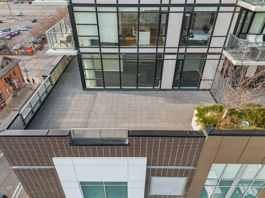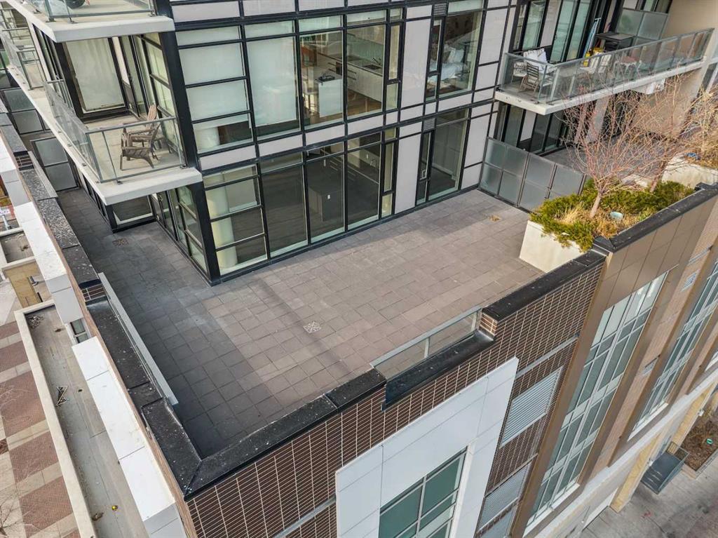 Truly unique “BACKYARD IN THE SKY” This sun-drenched corner 2-bedroom home sits on the exclusive terrace level, offering sweeping south and east views and an extraordinary 853 sq. ft. private outdoor space—perfect for entertaining, gardening, or relaxing above the city. NEWLY RENOVATED, the home features modern high-end upgrades throughout, including brand-new flooring, premium kitchen cabinetry, contemporary tile backsplashes, quartz countertops, and sleek integrated appliances. The 9.5’ extra-tall ceilings exclusive to the terrace level create an airy sense of space, while the well-proportioned open-concept living area showcases two walls of floor-to-ceiling windows framing sunsets over the mountains, city skyline twinkles, and even front-row views of Stampede fireworks. Both bedrooms are generously sized, complemented by two full bathrooms, titled parking, and an included storage unit. Residents enjoy exceptional building amenities: a state-of-the-art fitness centre, workshop, social lounge with garden terrace, and 24-hour security & concierge. Ideally situated in Calgary’s vibrant Beltline, you’re steps from Downtown, the Stampede grounds, Central Library, the Riverwalk, and the LRT. Everything you need is at your doorstep — a beloved brunch/coffee spot in the building, a brand-new dog park and Tesla Supercharger across the street, and a supermarket just one block away. With an unmatched outdoor space, premium upgrades, and a location in one of Calgary’s fastest-growing communities, this home represents an exceptional lifestyle and value opportunity.