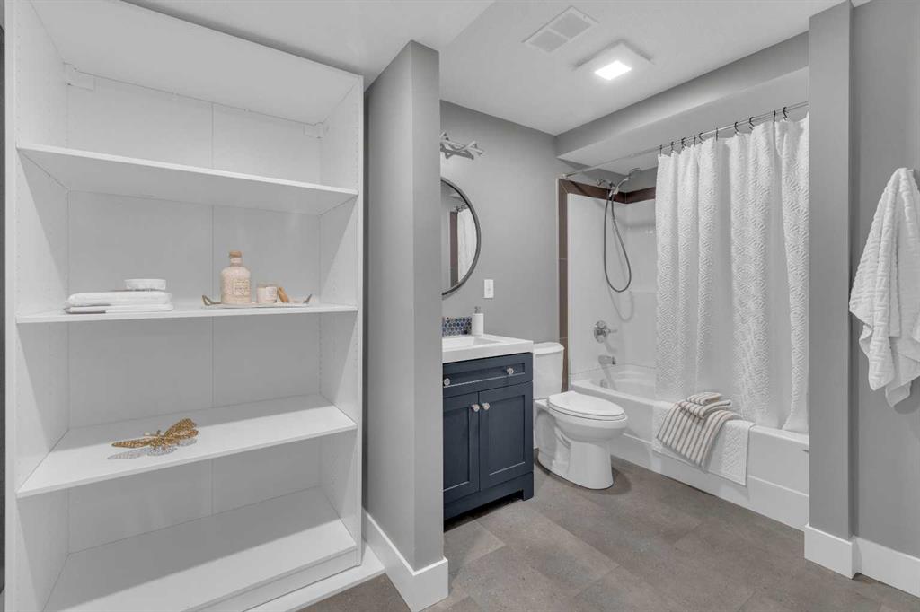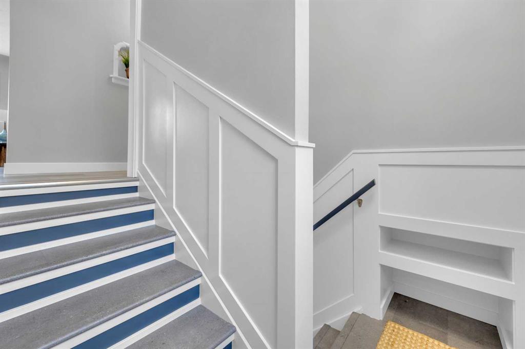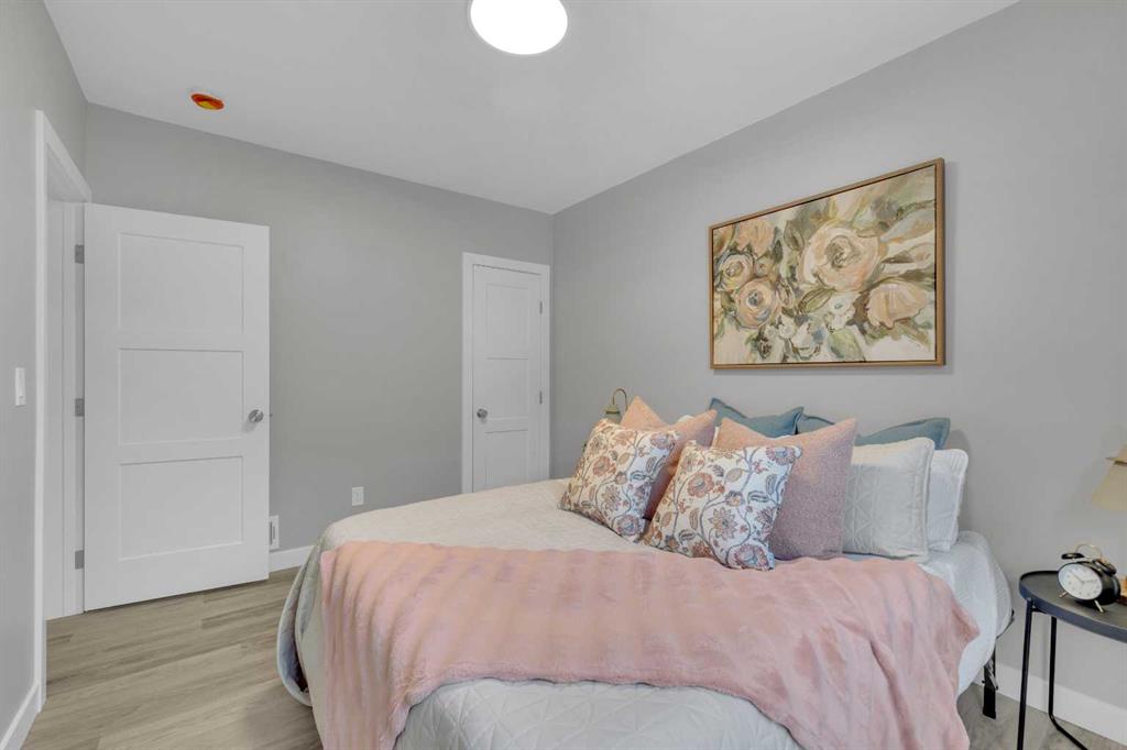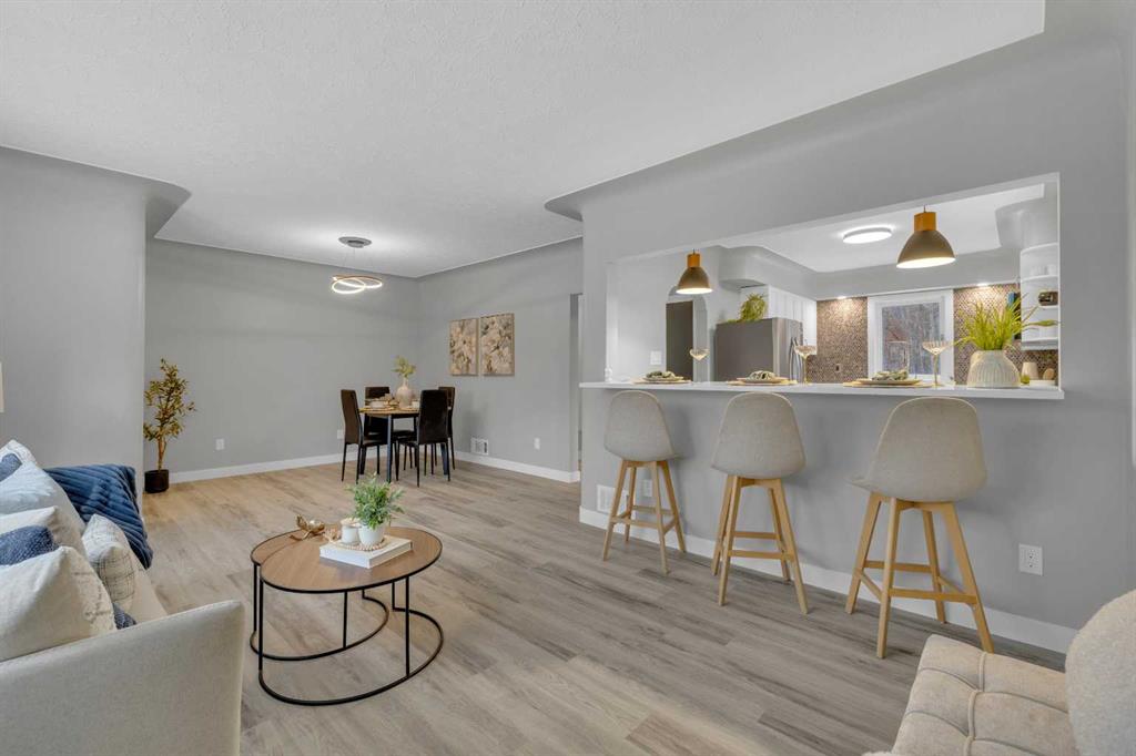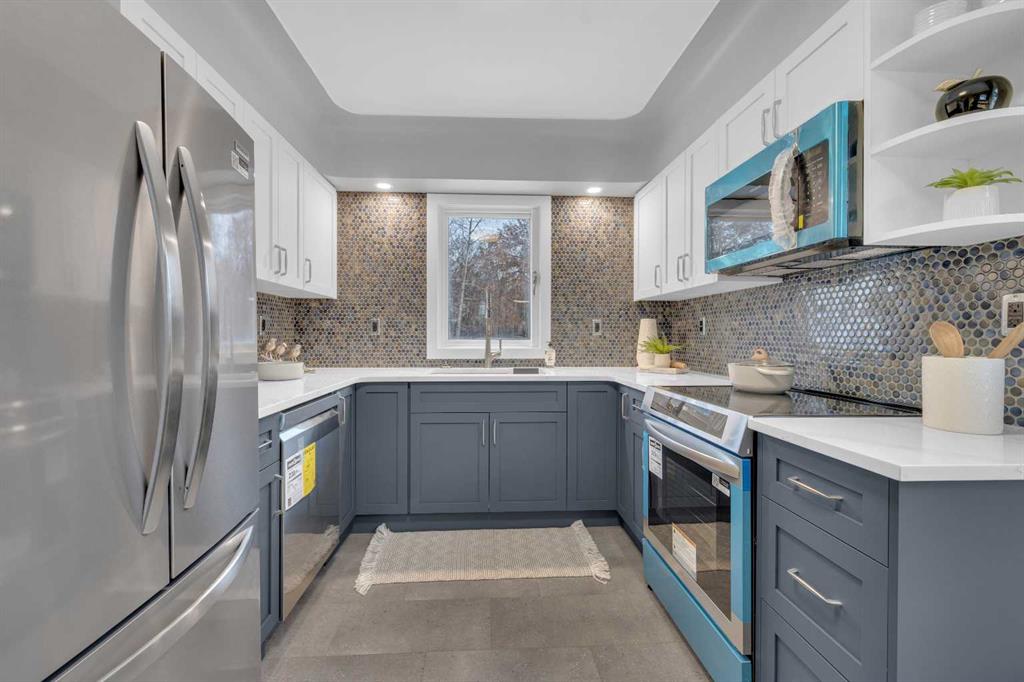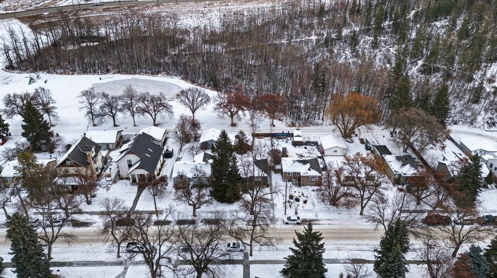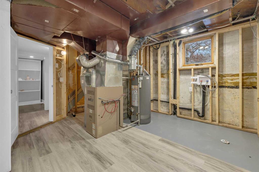 Beautifully updated from top to bottom, this reimagined Woodlea bungalow blends modern style with timeless charm in one of Red Deer’s most sought-after neighbourhoods. Located on a quiet, tree-lined street and backing directly onto Woodlea Park, this home offers unbeatable lifestyle, privacy, and green space access. The main floor features new vinyl plank flooring and a brand-new kitchen with quartz countertops, sleek cabinetry, upgraded lighting, and brand new appliances. The kitchen has been opened into the living space and features a large quartz eating bar while maintaining the 1950s curved corners and ceilings; maintaining its charm and heritage. Large windows fill the space with natural light, complementing two spacious bedrooms and a fully updated bathroom. The lower level has been gutted back to studs and renovated with new insulation, drywall, new egress windows, a stylish wet bar with large fridge, generous family room with 1500 watt electric fireplace with LIFX app controlled colorful lighting, custom mantle/fireplace wall. The basement includes an optional office/bedroom, full bathroom, and massive floored laundry/utility space that is clean and ready for you. This basement space has been redesigned with entertaining in mind. Comfortable, bright, and functional—this level nearly doubles your living space. Major systems have been completely modernized, including a full electrical rewire & panel (2025) and newer hot water tank for long-term peace of mind. Roof was done in 2013.
