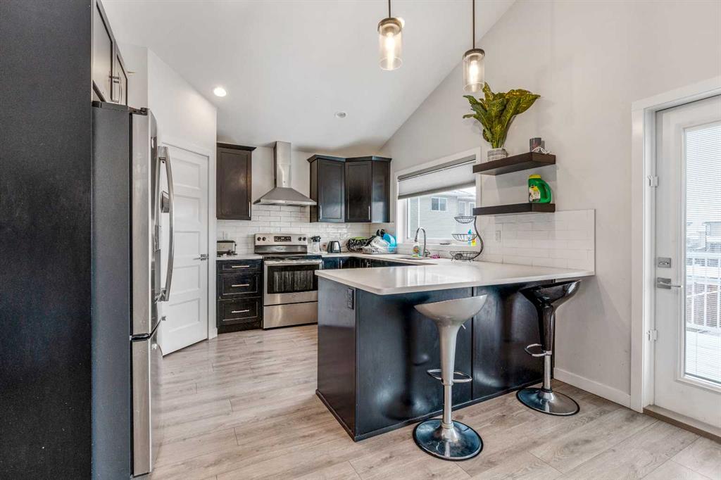 From the moment you arrive, this home instantly feels inviting. The neighborhood is family-oriented, walkable, and filled with the kind of energy people look for when they’re ready to settle in and stay awhile. Step into the backyard and you’ll see how easy life becomes here. The landscaping is fully finished, the fencing is already up, and a deck off the kitchen leads to a ground-level patio — perfect for outdoor dinners, a quiet cup of coffee, or watching the kids safely play. No muddy boots, no wet pawprints… this yard is ready to go from day one. When you walk inside, the huge front entryway makes a strong first impression. There’s space for everyone to come in at once, with tile flooring and a generous closet to stash coats, boots, gloves, and toques — exactly what a Lethbridge home needs. From there, the main floor opens up into a bright, airy living space with tall vaulted ceilings and natural light pouring in. It feels open, spacious, and instantly comfortable. The dining area is large enough to host big family gatherings or dinners with friends, with room to expand when life calls for it. And for the cooks of the household, the kitchen is something special: Rich, slate-coloured cabinetry, bright quartz countertops, timeless white subway tile, and more storage than you’ll find in most new builds. Stainless steel appliances, a window over the sink overlooking the yard, a dedicated pantry, and a breakfast bar area for busy mornings — it’s a kitchen designed for real families and real routines. The main floor also includes a 4-piece bathroom and the second bedroom — ideal for a nursery, guest room, or office on the main level. Upstairs, tucked privately away, is the primary retreat. South-facing windows draw in beautiful light, and the walk-in closet and large ensuite continue the theme of rich dark cabinetry with bright quartz counters. It’s a peaceful, separate space just for you. Downstairs is where your family will really live. Thanks to full-size windows and a walk-out design, the basement feels like an extension of the main level — bright, spacious, and comfortable. The family room, centered around an electric fireplace, is the perfect place to unwind at the end of a long day. Two more good-sized bedrooms sit on this level, each with big windows and plenty of flexibility — great for older kids who want their own space, hobby rooms, or home offices. A final 4-piece bathroom completes the lower level. 207 Moonlight Cove W is move-in ready, beautifully finished, and designed for the way families actually live. If you’re looking for a home that balances comfort, space, and practicality in one of Lethbridge’s favorite neighborhoods, this one checks every box. Come see it in person.