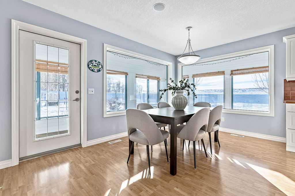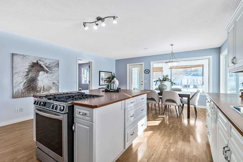 **OPEN HOUSE - Saturday 6th - 11:00-2:00***Welcome to your tranquil retreat in Diamond Valley, where small acreage living meets the breathtaking beauty of Kananaskis Country. This impressive 1.75-acre property is a rare find, offering a perfect blend of comfort, style, and an enviable lifestyle for families seeking their dream home. The 2,146 sq ft, 1.5-storey residence is designed for relaxation and entertaining, featuring stunning mountain views that inspire daily living. The inviting atmosphere starts in the family room that boasts a charming brick accent wall, adding character and warmth to the space. The heart of the home is the expansive country kitchen, featuring a gas range and seamlessly connecting to the large dining room, making it perfect for family gatherings and entertaining friends. Additional living space is further enhanced by a beautiful wrap-around three season sunroom, ideal for enjoying morning coffee while soaking in natural light and picturesque surroundings. The thoughtful layout includes a main floor primary suite, complete with a 5-piece ensuite and a spacious walk-in closet. A large laundry room is conveniently located on the main floor. Upstairs, you'll find two identical bedrooms, affectionately known as the Sunrise and Sunset rooms. Each offers ample space that can easily serve as a recreational area or home office. Originally designed with geothermal heating, the home has been updated to a forced air furnace, ensuring efficiency and comfort throughout the seasons. For eco-conscious buyers, the possibility to revert to the geothermal system remains. Aluminum roller shades on the windows provide both security and energy efficiency year-round. For hobbyists and outdoor enthusiasts, the property includes an oversized 26’x28’ attached garage and RV parking, offering ample storage for vehicles and recreational toys. The expansive yard provides plenty of space for gardening, children to play, and pets to roam freely, all within the town limits of Diamond Valley. This idyllic setting ensures you are just moments away from essential amenities such as a hospital, shopping, and schools, perfectly blending country living with urban convenience. Discover the lifestyle that awaits you in this exceptional property! Be Sure to CLICK on the MULTIMEDIA button for view the aerial video.