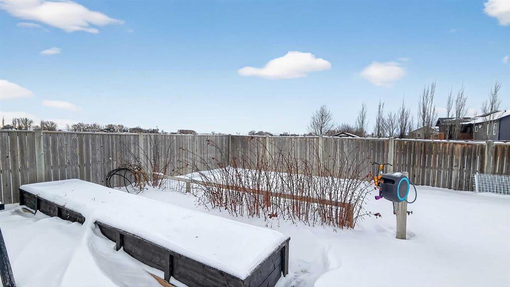 Discover this charming 4-bedroom, 2.5-bathroom home, boasting 1,126 sqft, located in the picturesque town of Barnwell. With easy access to the highway and just a short drive to Taber, this residence offers the perfect blend of convenience and tranquility in a family-friendly community ideal for raising children. This lovely home is set on a spacious lot, providing serene views with no rear neighbors. Step inside to an inviting foyer and ascend to the main level, where you'll find a cozy living room bathed in natural light from a large window. The warm and welcoming kitchen features rich chocolate brown cabinetry, a corner pantry, and comes fully equipped with modern appliances—ready for your culinary creations. Adjacent to the kitchen is the dining area, which comfortably accommodates a six-person table and includes access to the back deck for outdoor entertaining. The main floor also includes a 4-piece bathroom, a versatile bedroom, and a master suite with a walk-in closet and a private 2-piece ensuite. Venturing downstairs, you’ll discover a spacious family/recreation room, two additional bedrooms, a 4-piece bathroom, and a laundry room, along with ample storage options. The expansive backyard is a playground for kids, featuring a sandbox and plenty of room for play. Garden enthusiasts will appreciate the established raspberry plants and dedicated garden space, while a shed provides convenient storage for tools and lawn equipment. To enhance your comfort, this home is equipped with air conditioning—an essential feature for enjoying the warm Southern Alberta summers. Don’t miss out on making this charming property your new home. Contact your favorite real estate agent today to arrange a viewing!