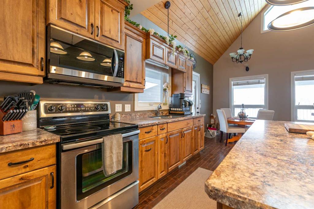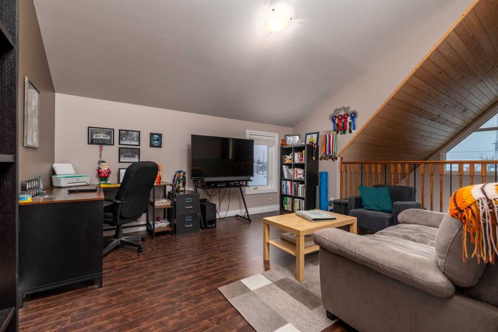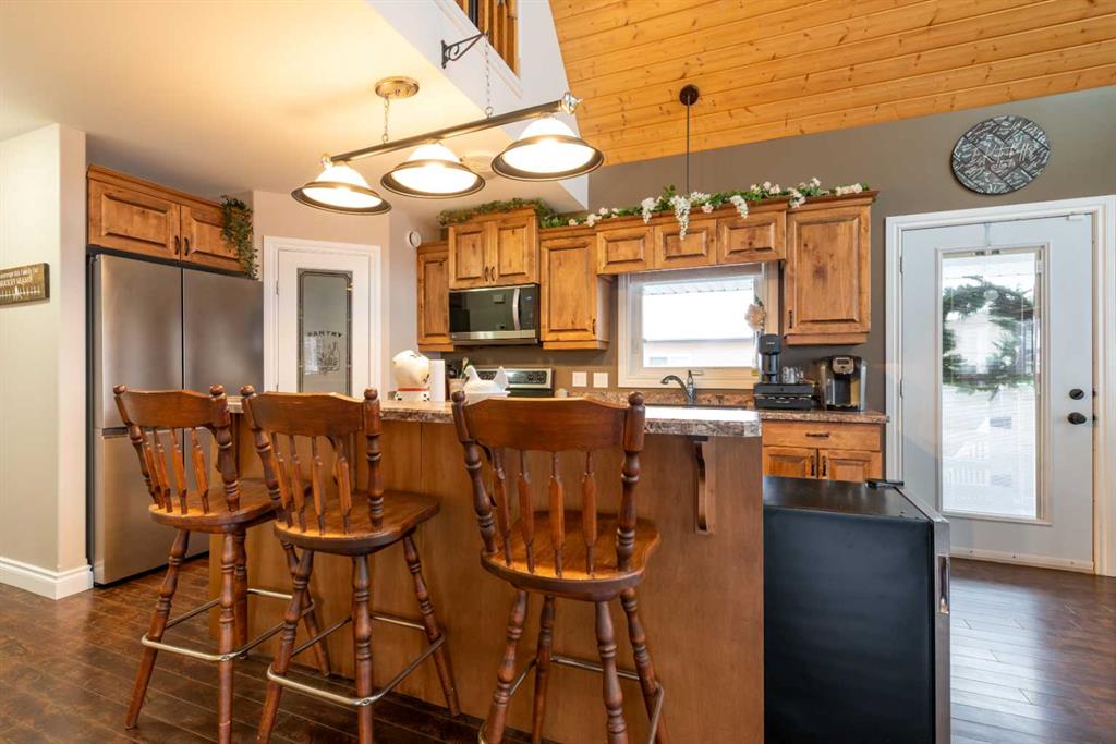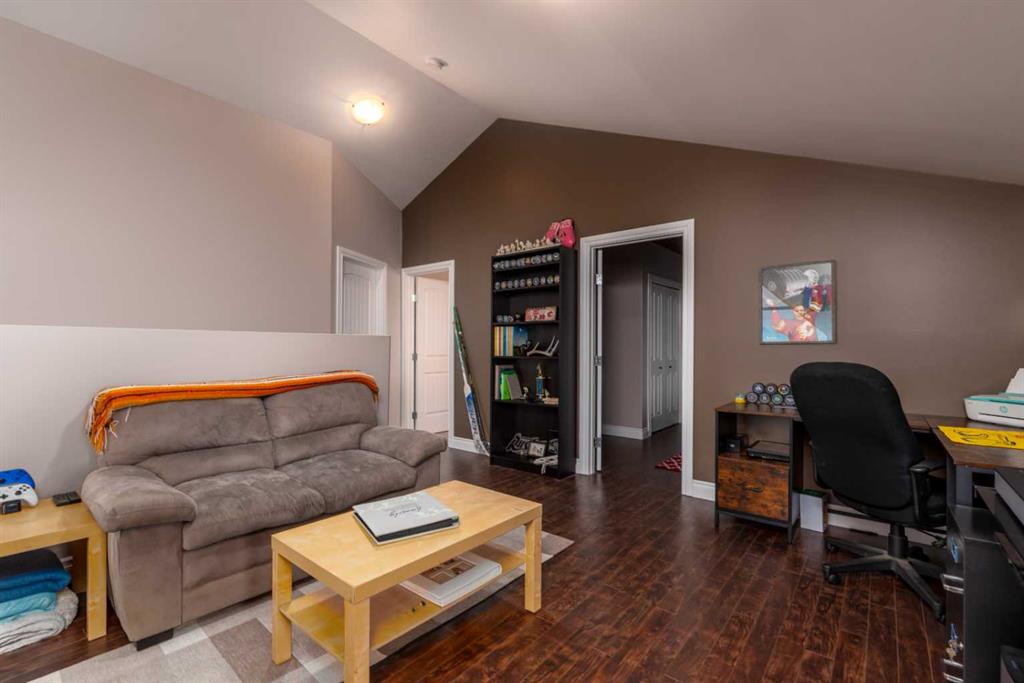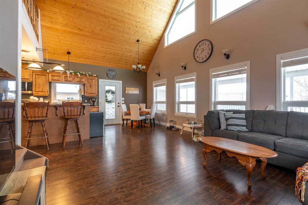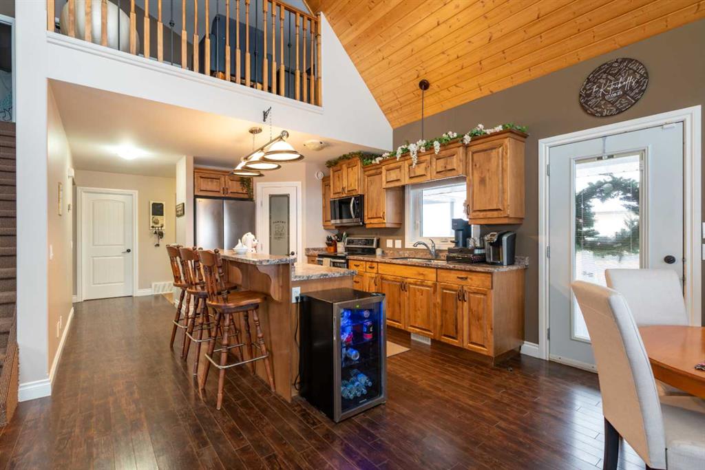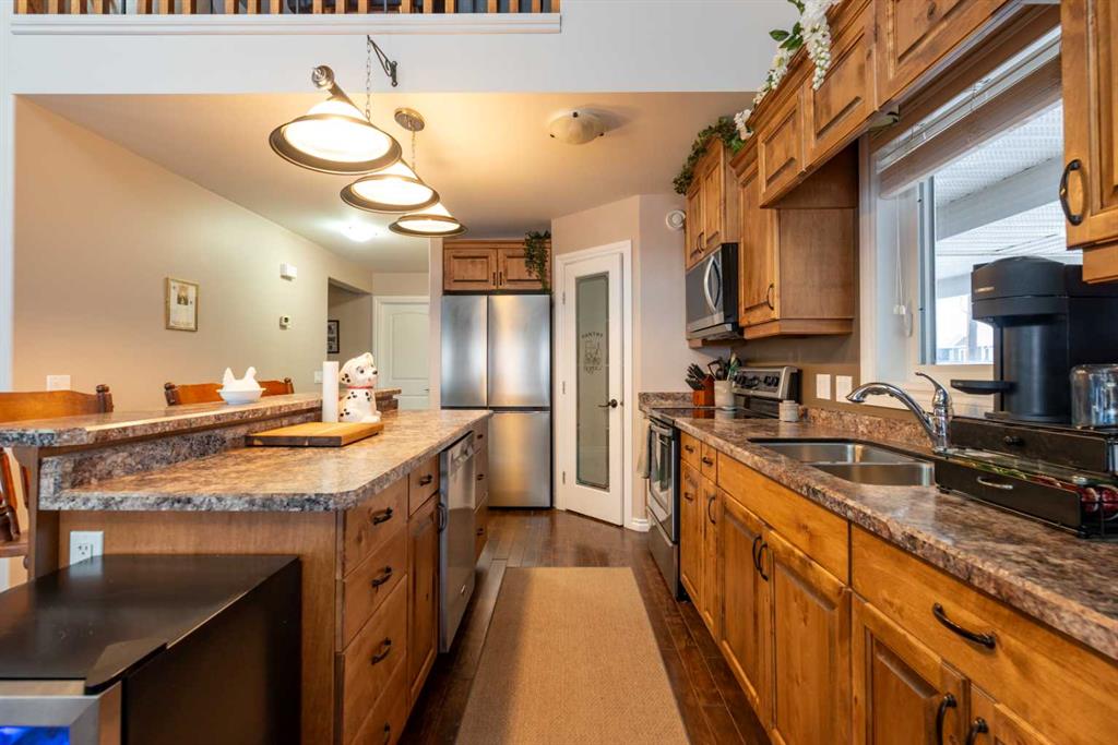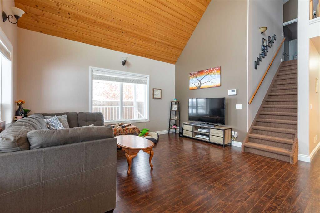 Showcasing exceptional pride of ownership, this beautiful 1,768 sq ft home welcomes you with an airy, light-filled main floor thanks to its generous windows and striking vaulted pine ceilings. The kitchen offers a functional layout with an eat-up island, corner pantry, and a full appliance package. Just off the back entry, you’ll find a spacious laundry area, ample closet space, a 3-piece bathroom, and convenient access to the main-floor primary bedroom—complete with a walk-in closet and its own 3-piece ensuite. The upper level offers a versatile open loft that’s perfect for a home office, reading nook, or cozy den, along with two additional bedrooms and a full bathroom. Storage is thoughtfully integrated throughout the home. The unfinished basement provides a blank canvas for future development, allowing you to design the space to suit your needs. A two-sided wraparound covered deck allows for year-round enjoyment and leads to a private yard and double detached garage. Additional features include central air conditioning, Hardie-board siding on both the home and garage, and a new furnace and water heater installed in 2019. Make this home yours, today! Check out the 3D virtual tour.