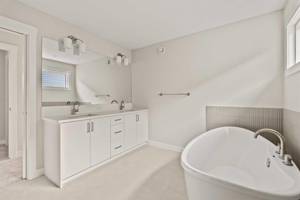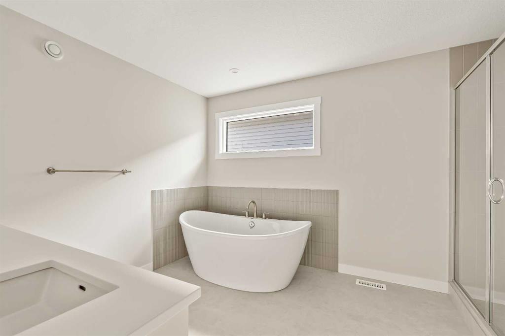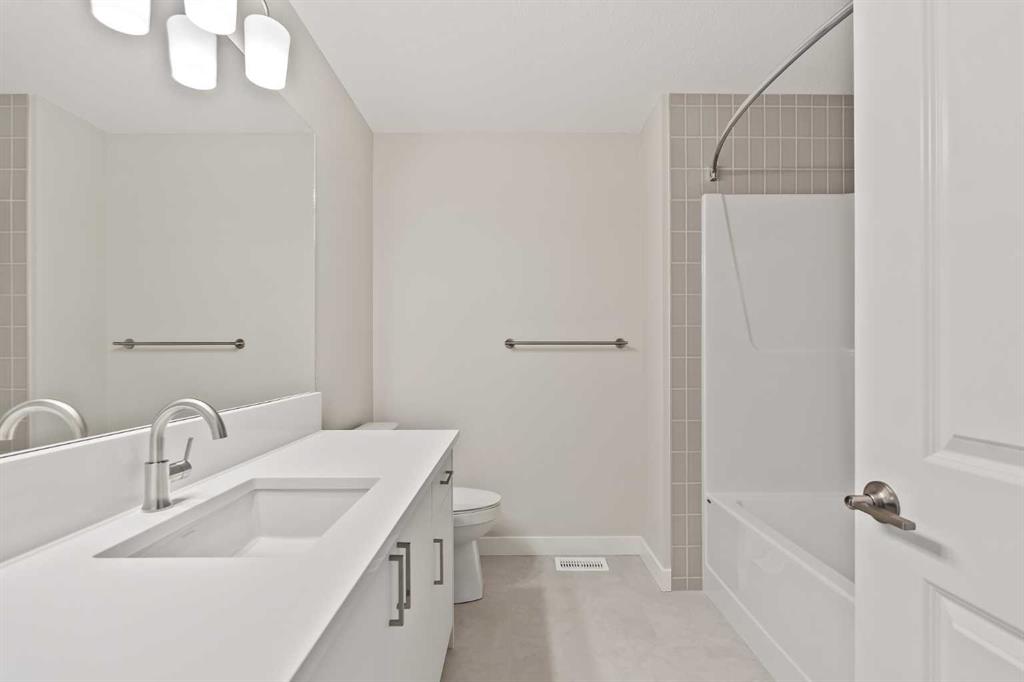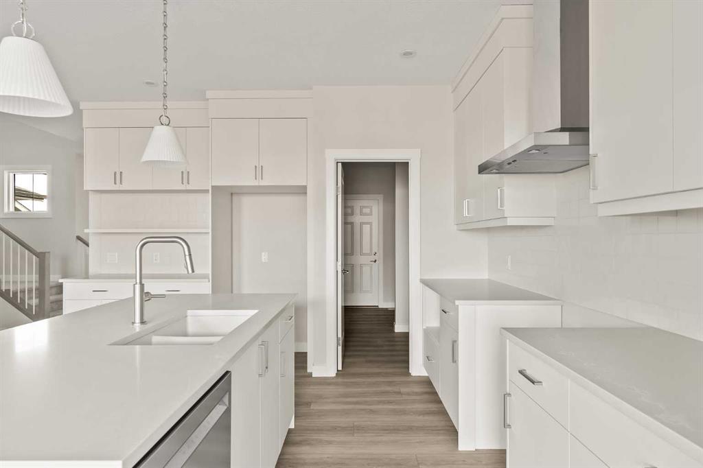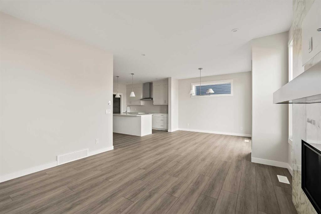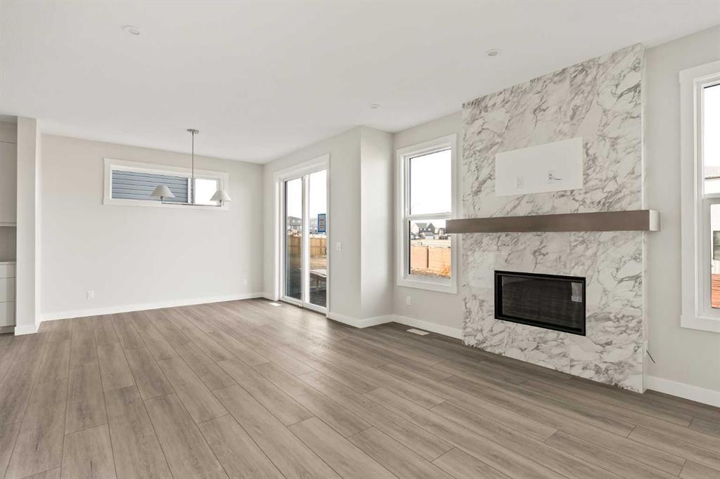 Introducing the Purcell 26 in Livingston - a beautifully curated, move-in-ready home that blends thoughtful design with everyday functionality. Professionally styled with timeless finishes and elevated details, this residence offers versatility for growing families, multigenerational households or investors seeking a polished, turnkey property. With 2,425 sq. ft. of developed living space, the layout provides a flex room, two distinct living areas, three bedrooms, 2.5 bathrooms and an undeveloped basement awaiting your vision. Luxury Vinyl Plank flooring stretches across the main level, setting the tone for a durable yet refined interior. At the heart of the home is a striking kitchen complete with a built-in range hood, island microwave, quartz island and upgraded custom lighting. A full walk-through pantry connects seamlessly to an oversized mudroom, adding everyday convenience and storage. The dining and living spaces span the rear of the home, framed by expansive windows that invite natural light throughout the day. A central gas fireplace with a tiled surround is flanked by symmetrical windows, creating a beautifully balanced focal point. A grand front foyer, dual closets and a 2-pc powder room complete the level. The staircase, finished with natural wood and iron railing, leads to an upper level designed for separation and comfort. A central bonus room sits between the secondary bedrooms and the private primary retreat. The primary suite features generous windows for plenty of natural light, along with a spa-inspired ensuite offering a tiled walk-in shower, a soaker tub, dual vanities and a private water closet. Two additional bedrooms, a 4-pc bathroom and a laundry room with counter space complete the upper floor. A separate side entrance provides direct access to the basement, making it well suited for future development. This brand-new property is move-in ready and includes Alberta New Home Warranty, giving you confidence and peace of mind as you settle into your new home. A rare opportunity to own a beautifully designed Purcell 26—crafted for comfort, style and long-term living.