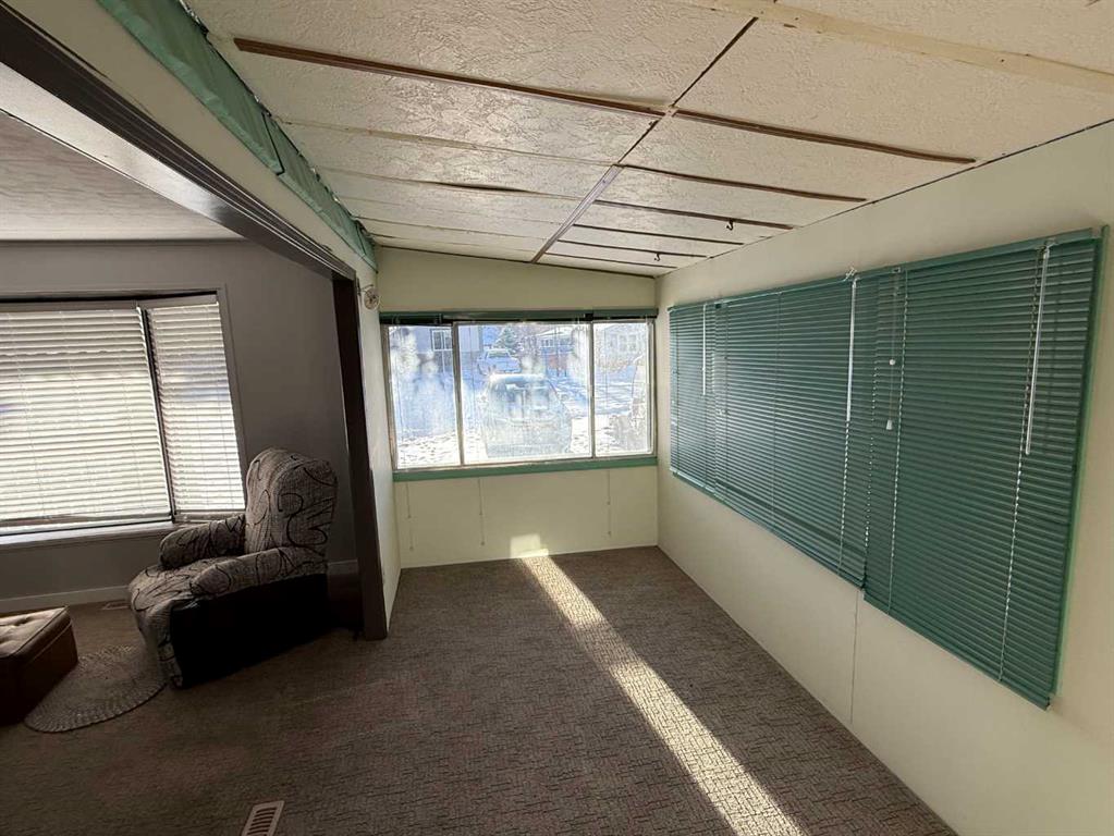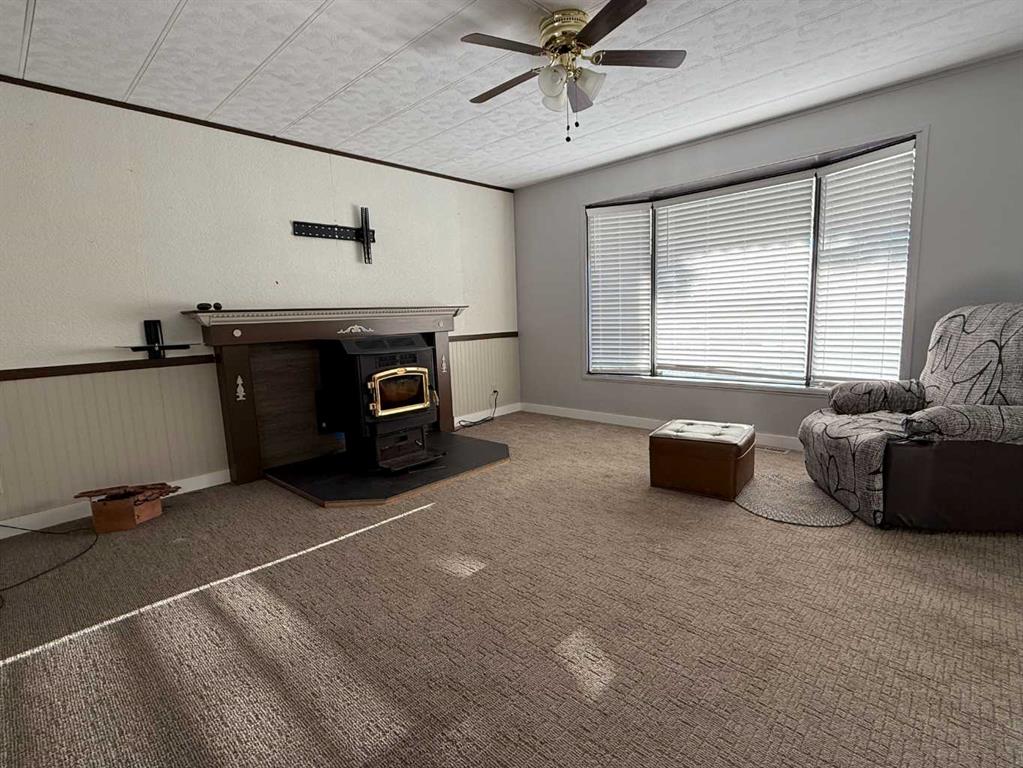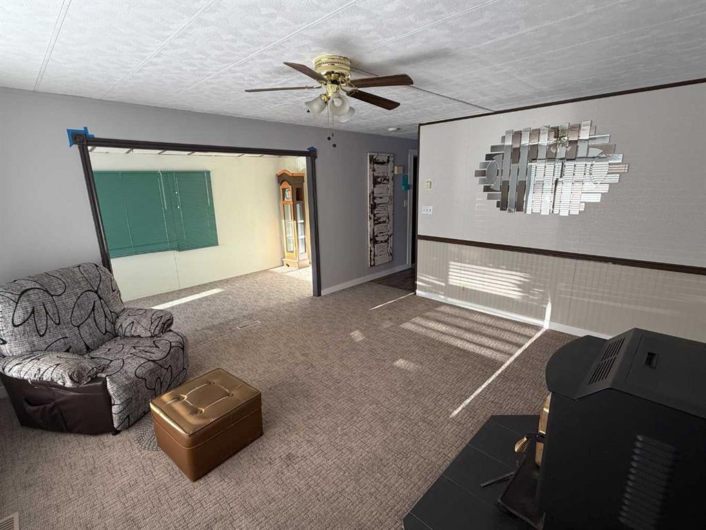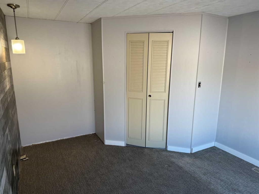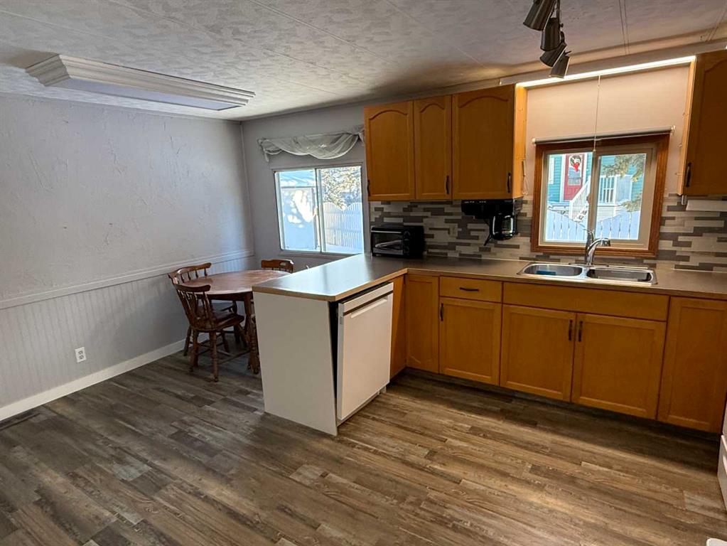 Welcome to this affordable mobile home, estimated to have been built in 1974, located on a quiet cul-de-sac in the Town of Vulcan. Offering 896 sq. ft. of living space plus a 182 sq. ft. addition, this property delivers great value for a first-time buyer or anyone looking for a solid rental opportunity. Step inside to a practical front entrance mud room, a cozy living room warmed by a pellet stove, a den, and a kitchen with an adjoining dining area. The layout also includes a bedroom, a back entrance leading to the yard, a primary bedroom, and a full bathroom. The exterior features a detached single-car garage that is insulated and heated, an 8’ x 10’ garden shed, and a covered backyard area complete with a hot tub. The hot tub hasn’t been used for a couple of years, but the owner reports it was working the last time it was in operation. Appliances included are a refrigerator, stove, dishwasher, microwave hood fan, washer, dryer, toaster oven, and an under-counter coffee maker. Recent updates include asphalt shingles (approx. 8 years old), a furnace (approx. 5 years old), and a hot water tank (approx. 10 years old). If you’re looking for an economical place to call home—or a rental property with steady potential—this one is well worth a look. And yes, it’s on a cul-de-sac, so you get that premium low-traffic, “galaxy far, far away” peace and quiet.