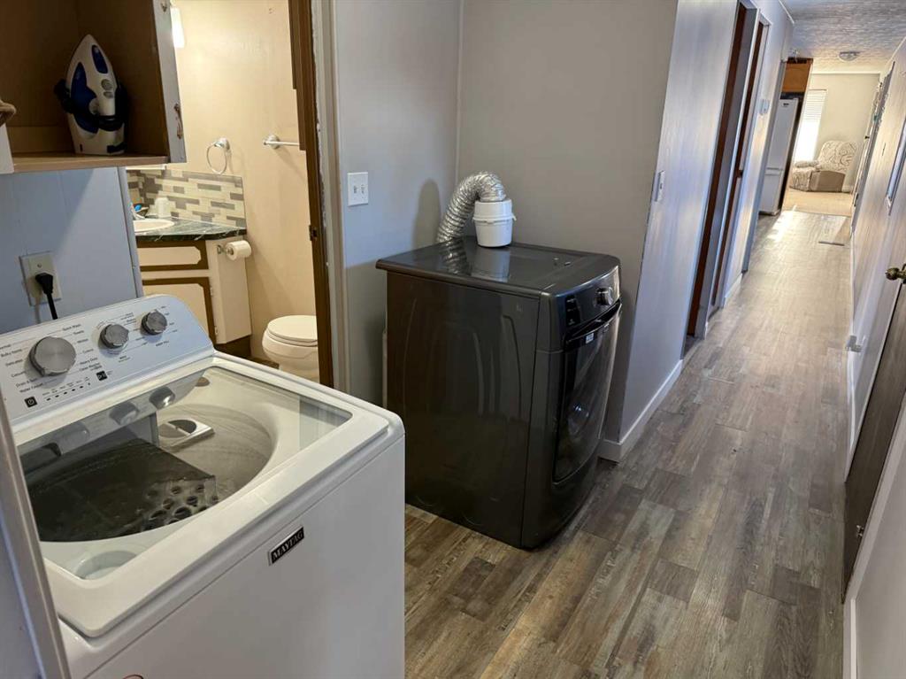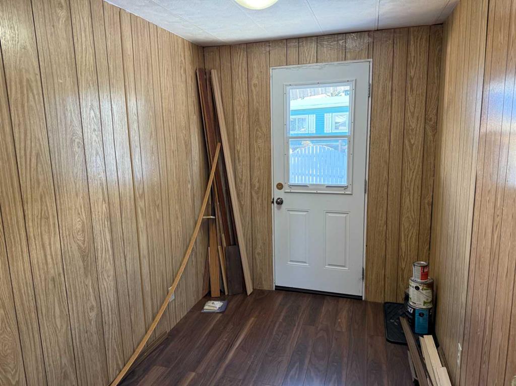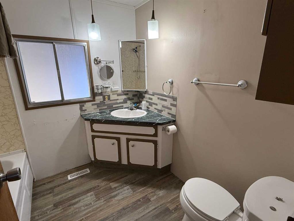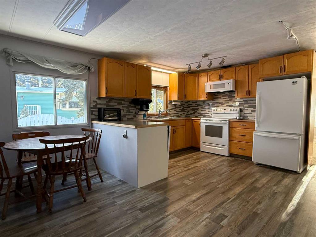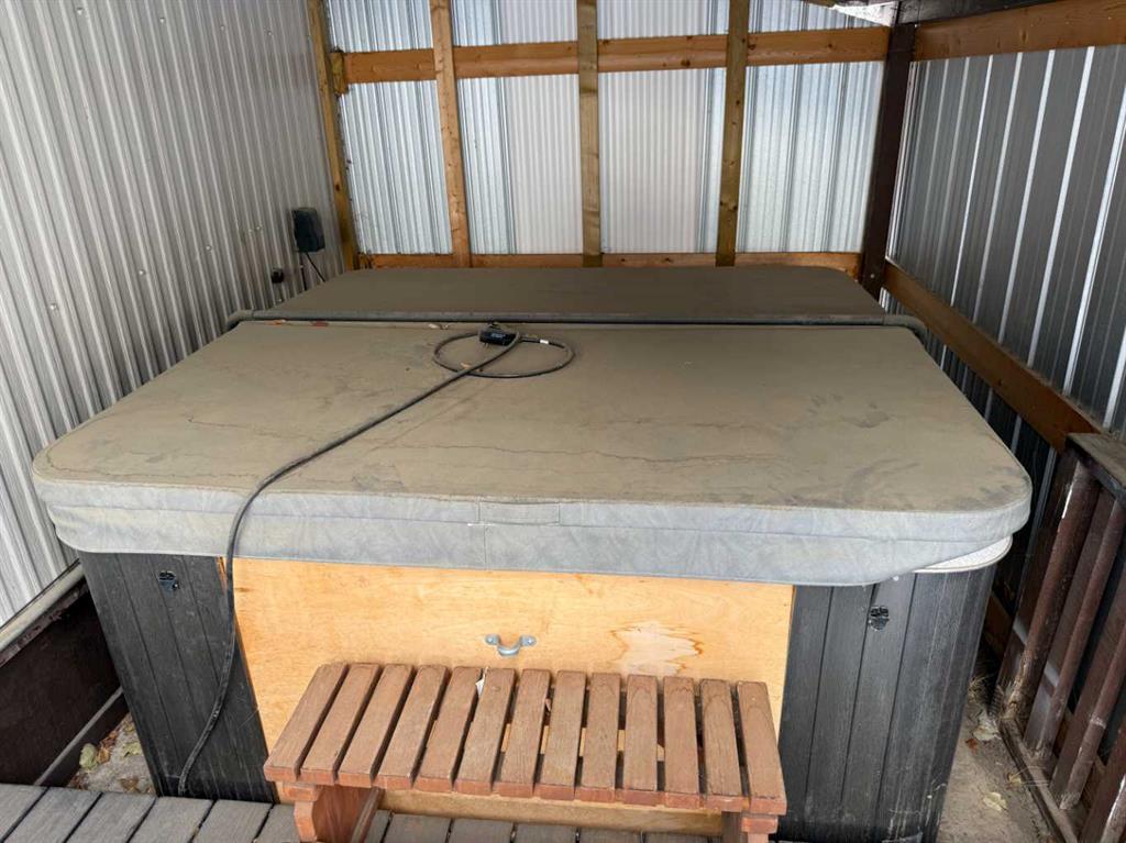 Welcome to this affordable mobile home, estimated to have been built in 1974, located on a quiet cul-de-sac in the Town of Vulcan. Offering 896 sq. ft. of living space plus a 182 sq. ft. addition, this property delivers great value for a first-time buyer or anyone looking for a solid rental opportunity. Step inside to a practical front entrance mud room, a cozy living room warmed by a pellet stove, a den, and a kitchen with an adjoining dining area. The layout also includes a bedroom, a back entrance leading to the yard, a primary bedroom, and a full bathroom. The exterior features a detached single-car garage that is insulated and heated, an 8’ x 10’ garden shed, and a covered backyard area complete with a hot tub. The hot tub hasn’t been used for a couple of years, but the owner reports it was working the last time it was in operation. Appliances included are a refrigerator, stove, dishwasher, microwave hood fan, washer, dryer, toaster oven, and an under-counter coffee maker. Recent updates include asphalt shingles (approx. 8 years old), a furnace (approx. 5 years old), and a hot water tank (approx. 10 years old). If you’re looking for an economical place to call home—or a rental property with steady potential—this one is well worth a look. And yes, it’s on a cul-de-sac, so you get that premium low-traffic, “galaxy far, far away” peace and quiet.
