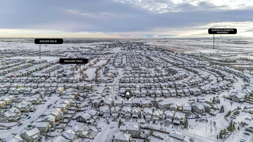 ** OPEN HOUSE - SUNDAY, DECEMBER 7TH from 2 PM to 4 PM ** Welcome to this very spacious property located in the heart of Kings Heights in Airdrie. It sits on an absolutely quiet cul-de-sac. A super safe street for children and offers a massive lot close to 5,000 sq. ft. with a large backyard. This home provides nearly 3,500 sq. ft. of living space, perfect for a large or growing family. The large foyer opens to the main floor with ceramic tile flooring and leads to a generous office with hardwood flooring. This space is versatile , perfect as a home office or easily used as a bedroom, large enough to fit a queen bed and dresser. The main floor also features a 2-piece bathroom and a spacious living room with a cozy corner fireplace. The 9-ft ceilings and large windows make the entire main floor bright, open, and full of natural light. The dining room is sizeable enough to accommodate an 8-chair dining set, ideal for gatherings and family dinners. The kitchen is impressive and massive, with plenty of cabinetry, granite countertops, a double sink with an eating bar, and a large walk-through pantry with built-in shelving that connects to the mudroom with a great-sized closet. Upstairs, you’ll find a huge bonus room with a built-in office space, desk, shelving, and TV setup a perfect multi-use area. The master bedroom is extremely spacious, easily fitting a king bed and full furniture set. It includes a 5-piece ensuite with granite countertop and a very large walk-in closet. Two additional large bedrooms, a 4-piece bathroom, and a convenient laundry room complete the upper floor. The entire upper level is carpeted for comfort. The finished basement offers two large bedrooms with big windows that bring in plenty of natural light, a 3-piece bathroom, and a comfortable family room, a great setup for extended family or teenagers. An additional bonus is the abundant storage space throughout the basement. Kings Heights is a wonderful, safe community with all amenities nearby, close to shopping centers, playgrounds, and just minutes from Highway 2 (Deerfoot Trail). Don’t miss this amazing property! A perfect opportunity to own a spacious home in a fantastic location!