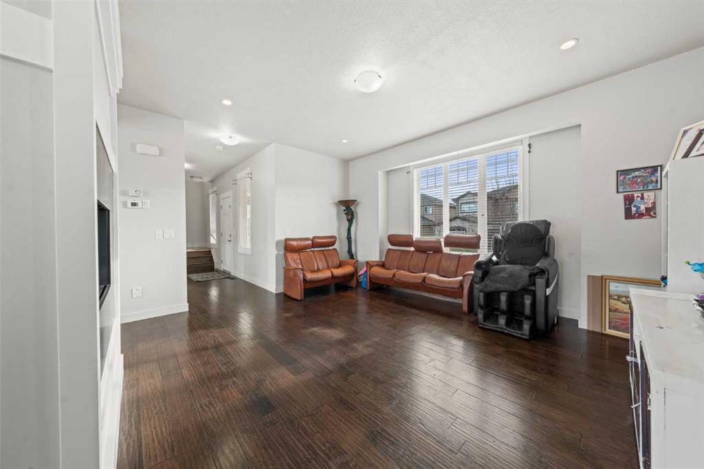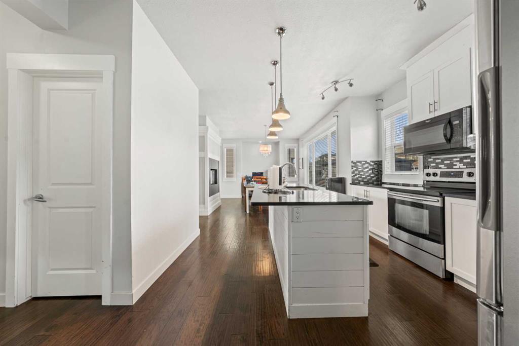 Welcome to this beautifully designed 5-bedroom, 3.5-bathroom detached home located in the heart of Chestermere, Alberta — a vibrant lake community just minutes from Calgary! Offering over 2,500 sq. ft. of developed living space, this home blends modern finishes with a functional layout perfect for families. Step into a bright and open main floor featuring wide plank engineered hardwood, large windows that flood the space with natural light, and a sleek three-sided gas fireplace separating the living and dining areas — creating the perfect ambiance for entertaining or cozy family nights. The modern kitchen showcases quartz countertops, stainless steel appliances, shaker-style cabinetry, a stylish tile backsplash, and an island with pendant lighting — ideal for casual dining or meal prep. Upstairs, enjoy a spacious bonus room perfect for a play area or media lounge, along with three comfortable bedrooms including a private primary suite with a walk-in closet and ensuite bath. The fully finished basement adds even more versatility, offering two additional bedrooms, a full bathroom, and a large recreation area — great for guests, a home office, or a hobby space. Outside, you’ll find a two-car detached garage and a landscaped yard ready for your summer gatherings. Located in a quiet, family-friendly neighborhood close to parks, schools, Chestermere Lake, and shopping, this home combines comfort, convenience, and value.